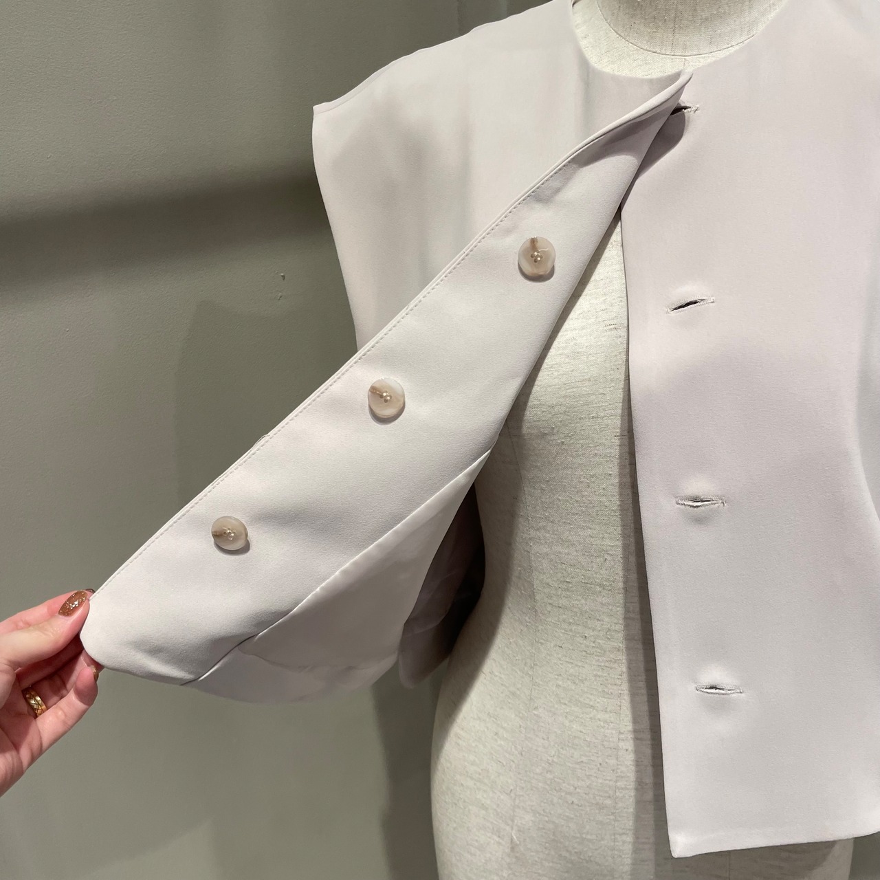 程よいショート丈とサイドに施したスリットでバランスがとりやすく、ワイドパンツやタックパンツ、スカートとも好相性。スタイルアップ効果も狙えます。