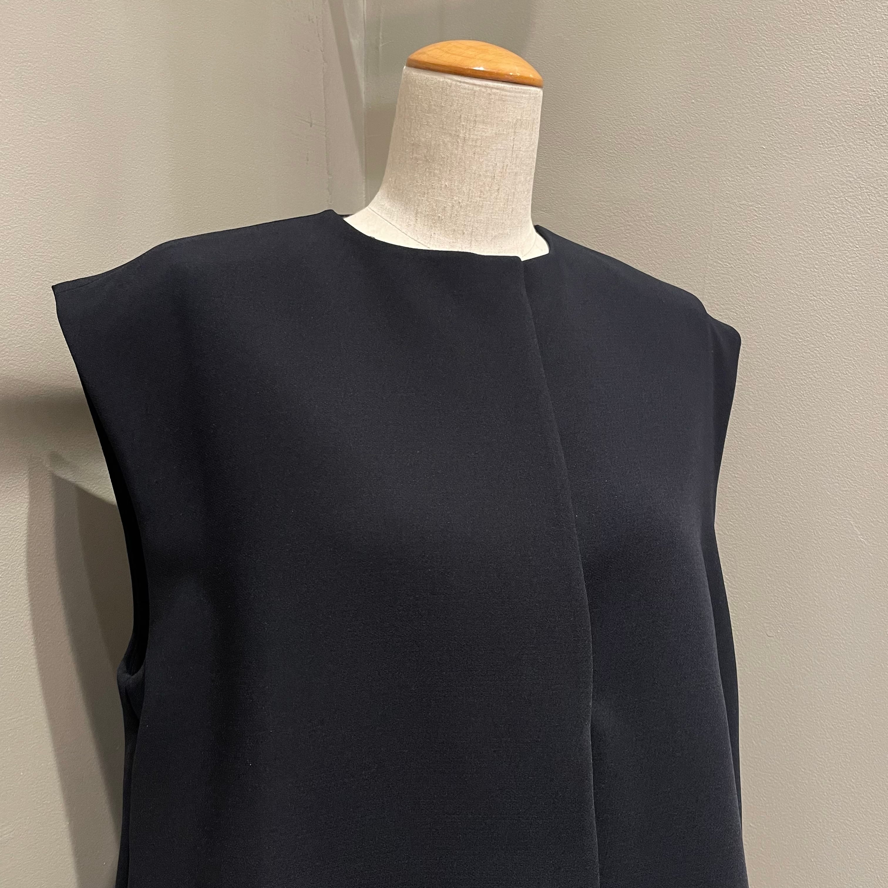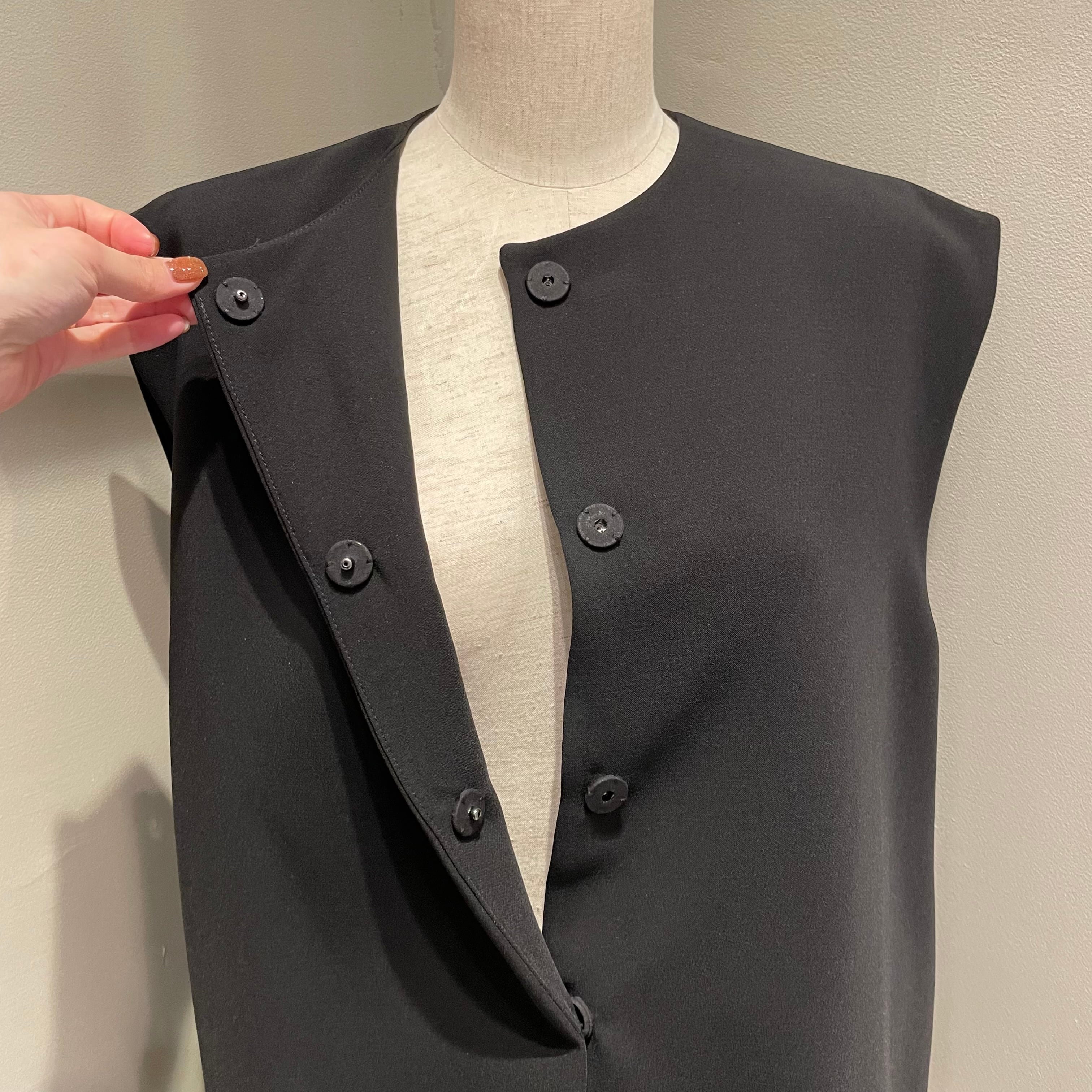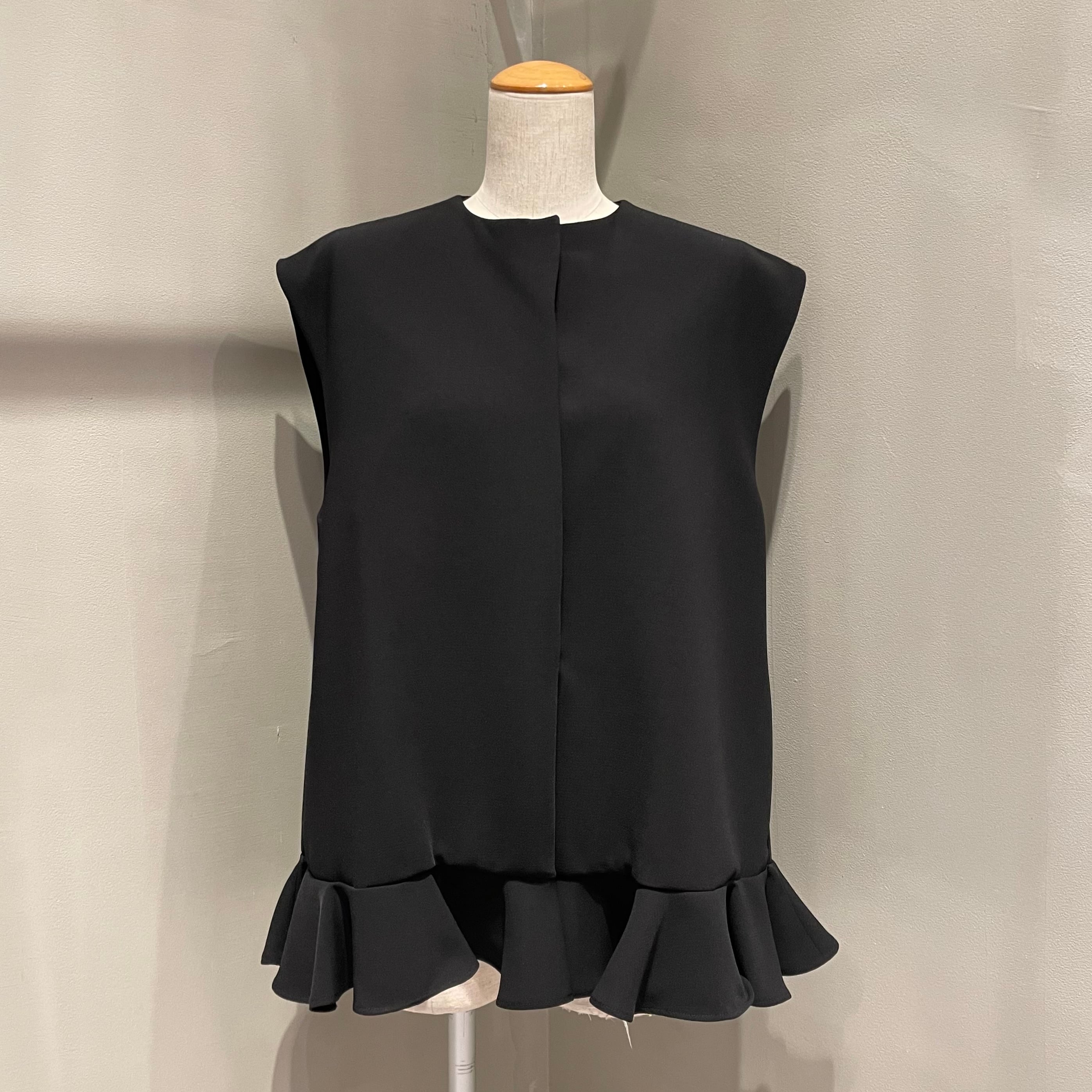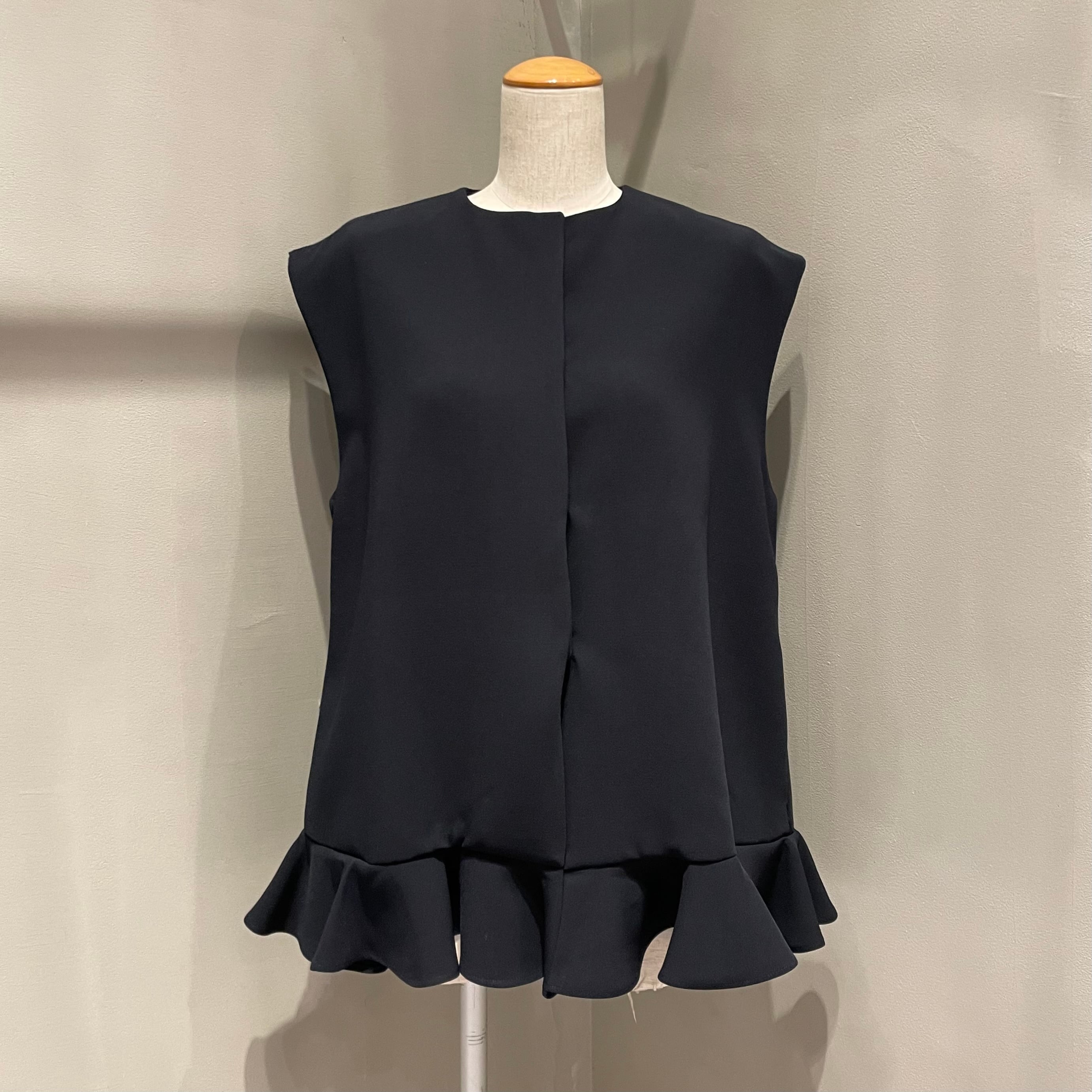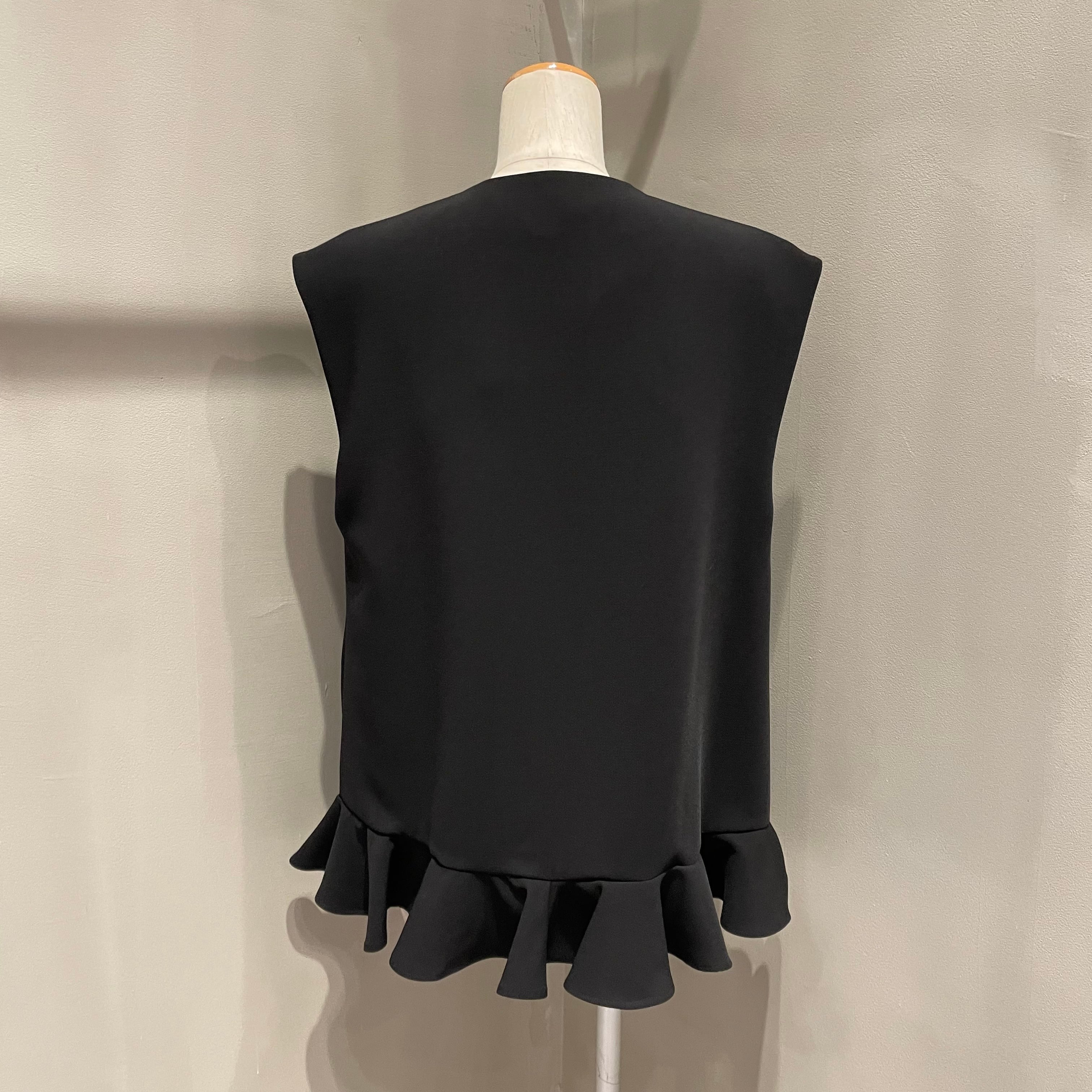 裾にあしらった立体的なフリルが、装いにさりげない華やかさを添えるデザインベスト。