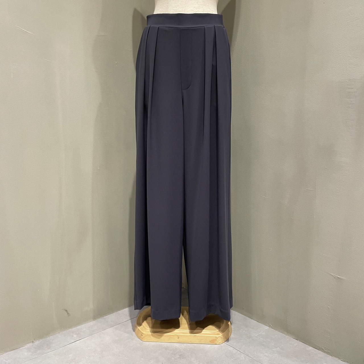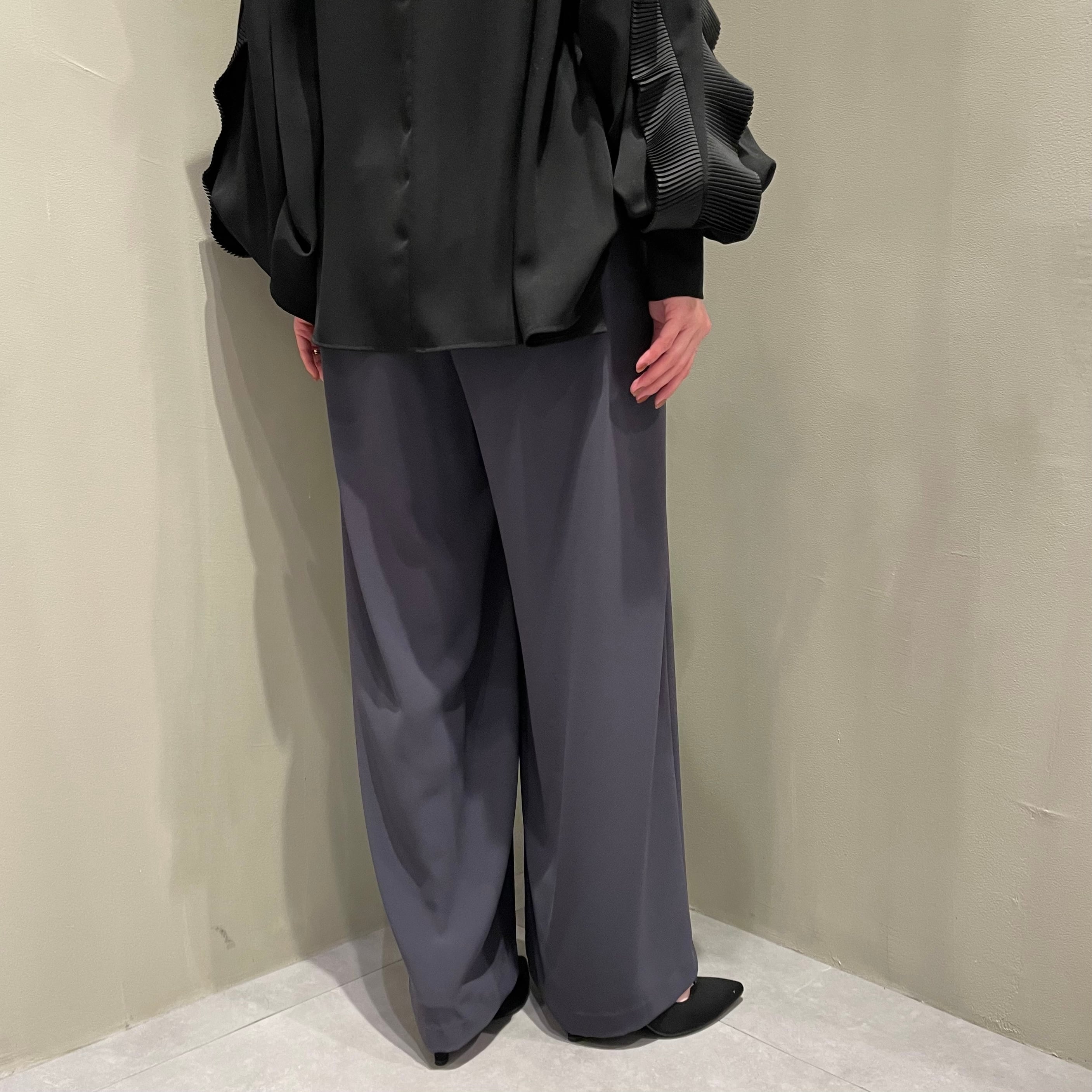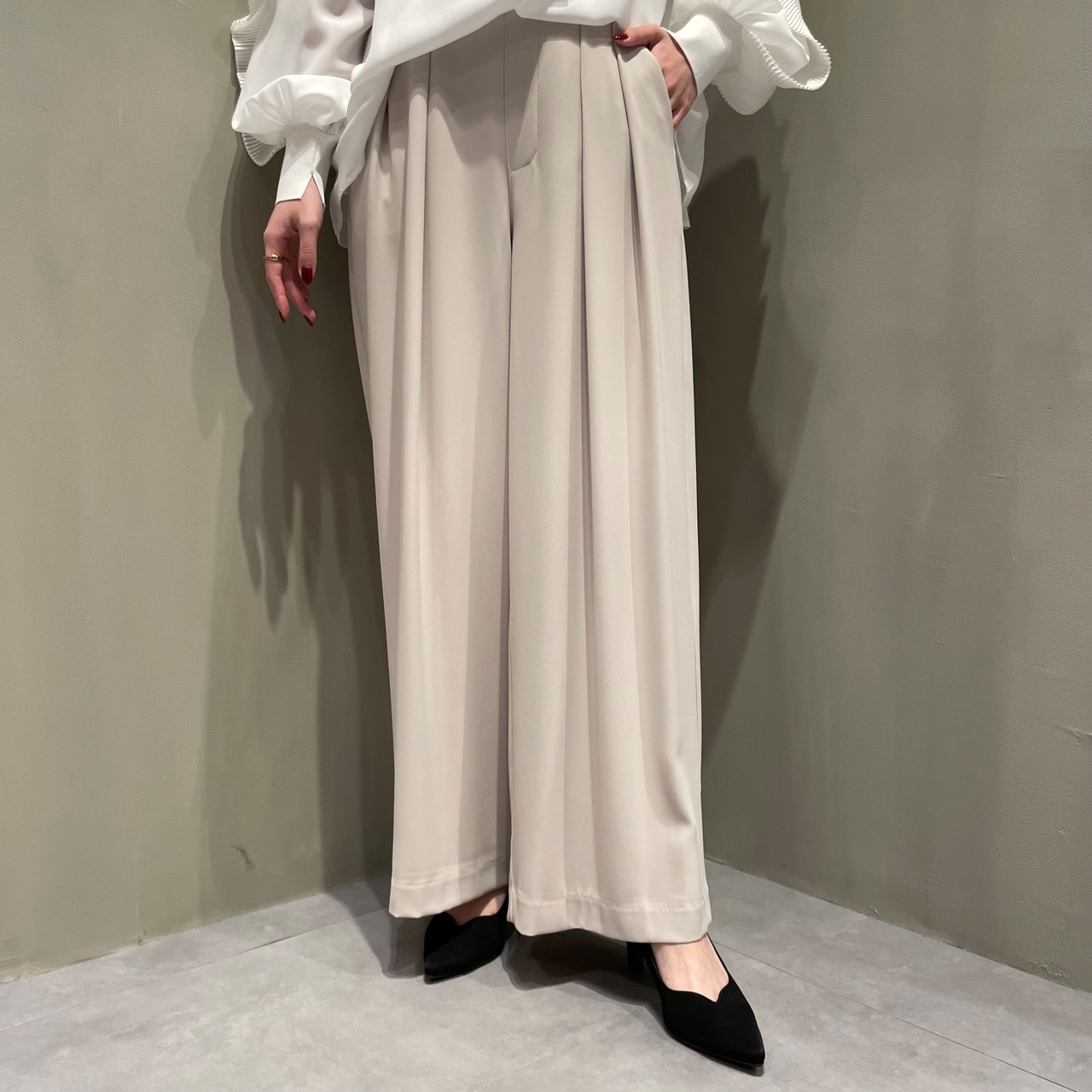 股上深めで脚長効果◎なハイウエストタックパンツです。