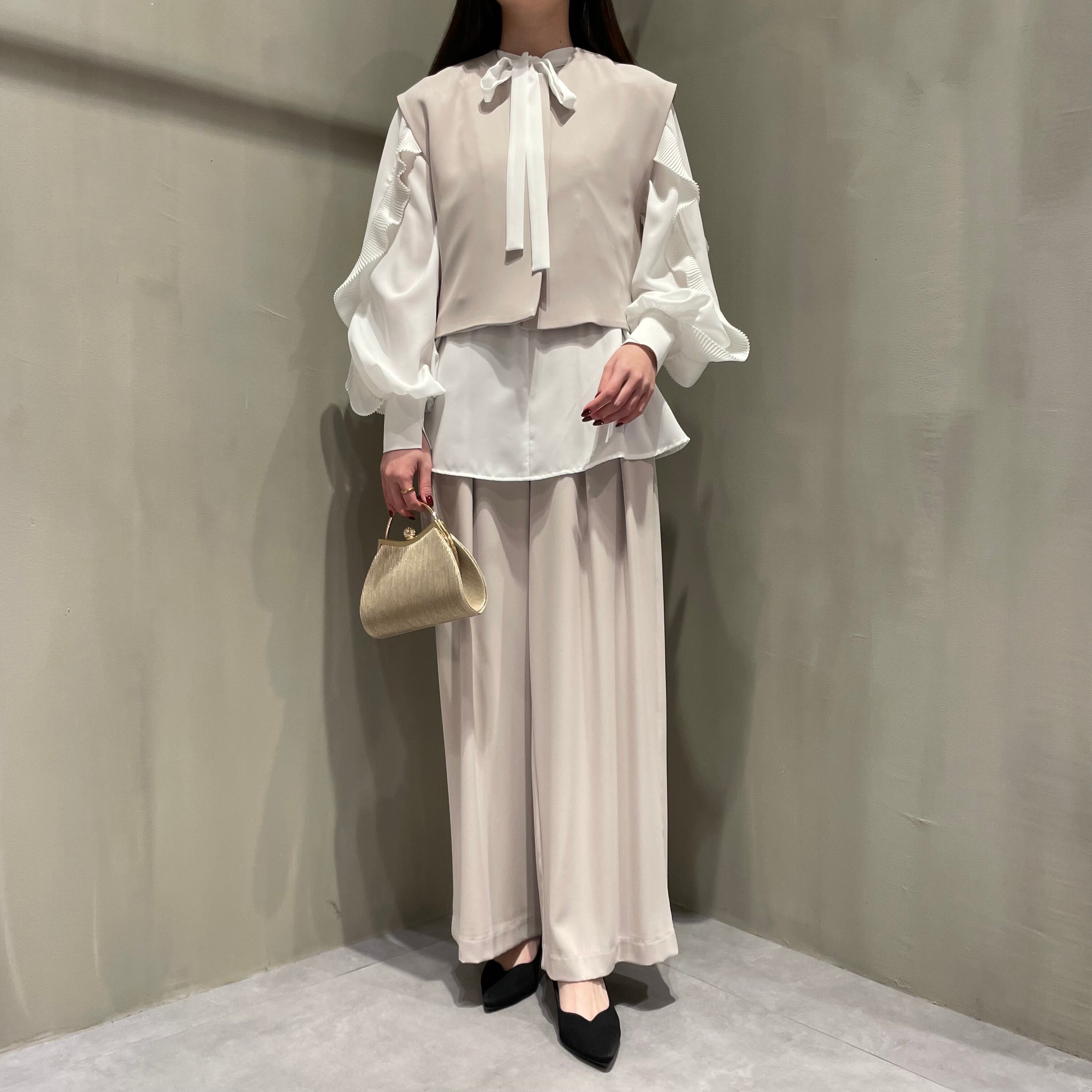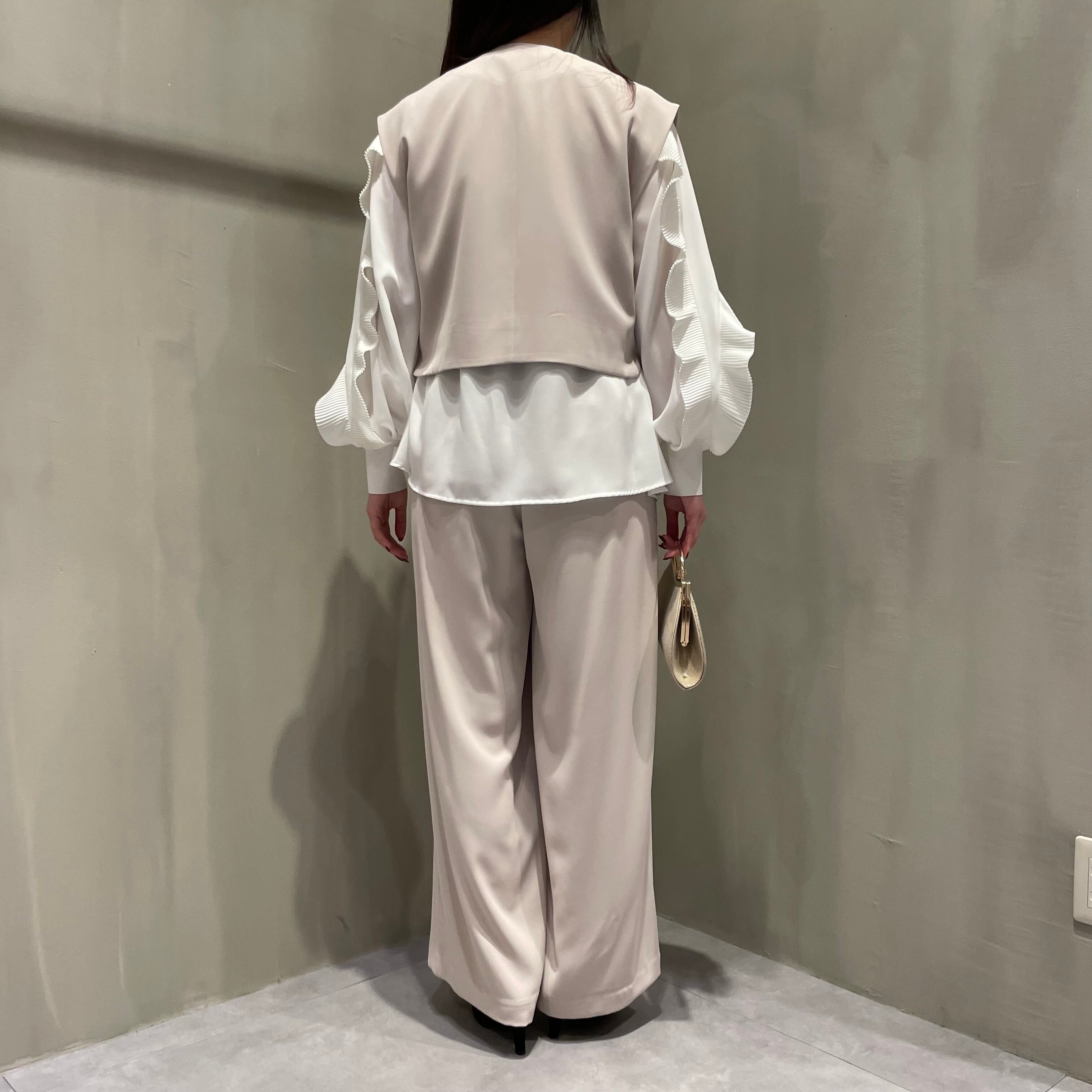 伸縮性のあるさらり落ち感のある素材を使用しており、広がりすぎずキレイなシルエットに。