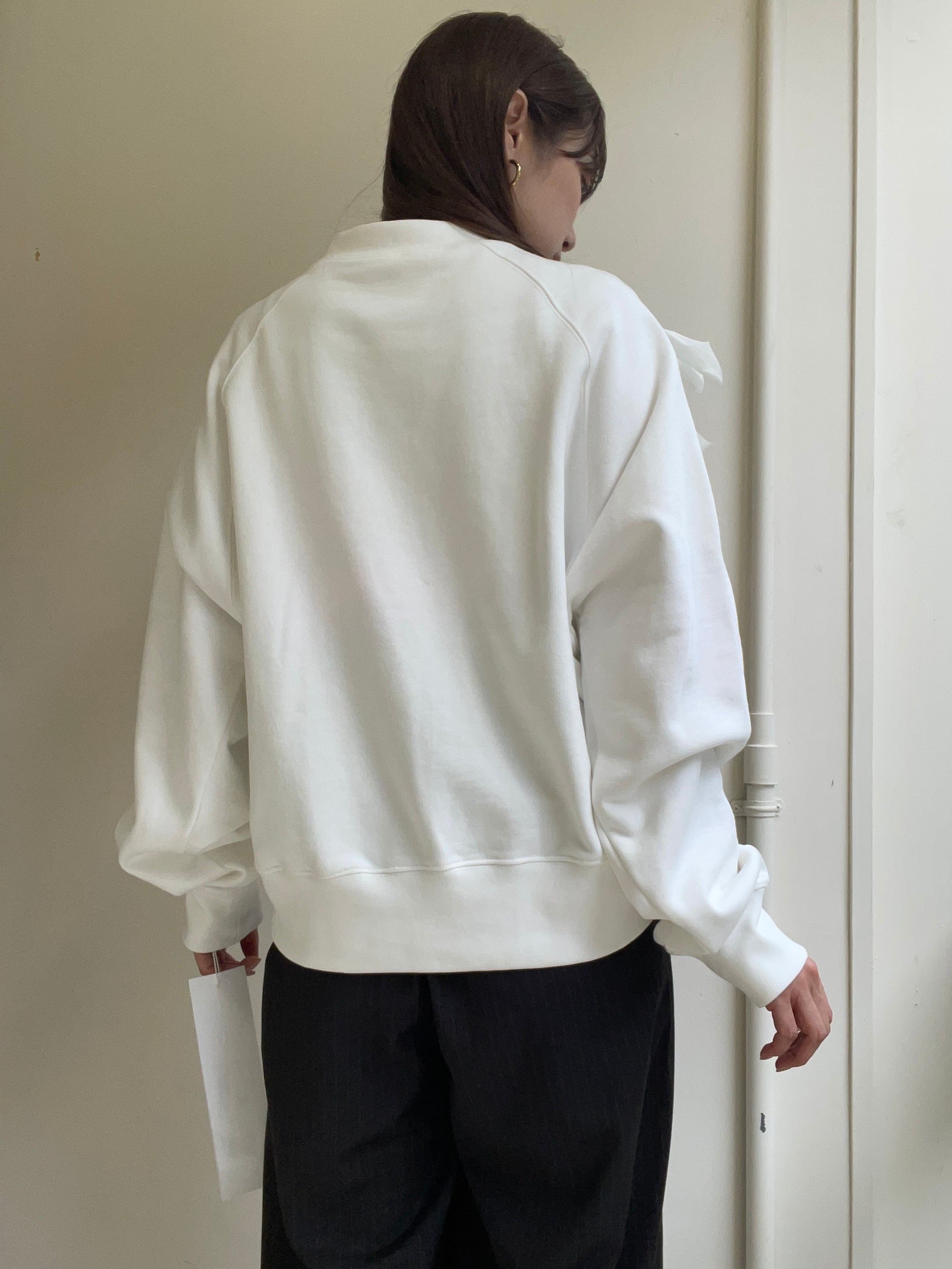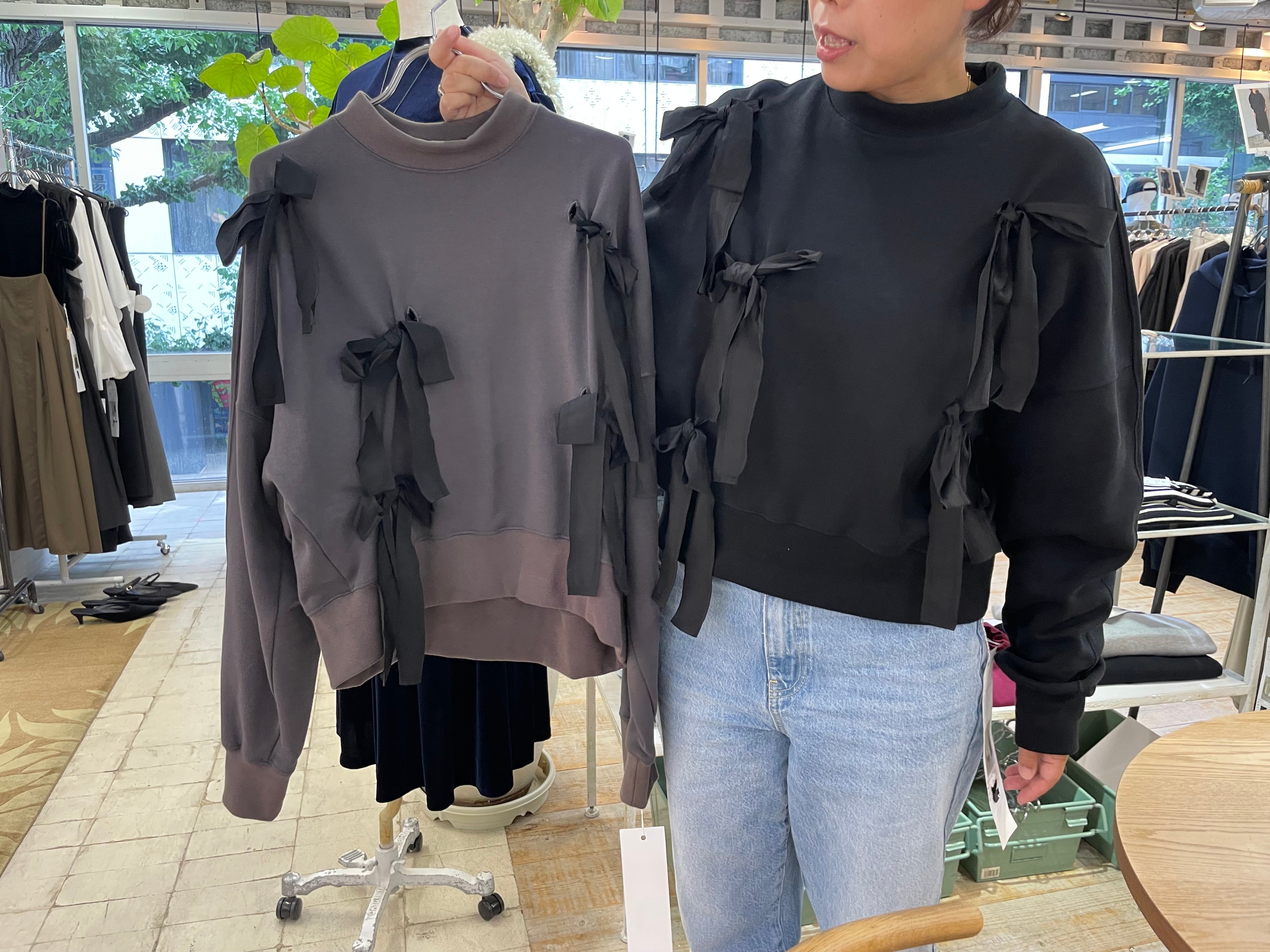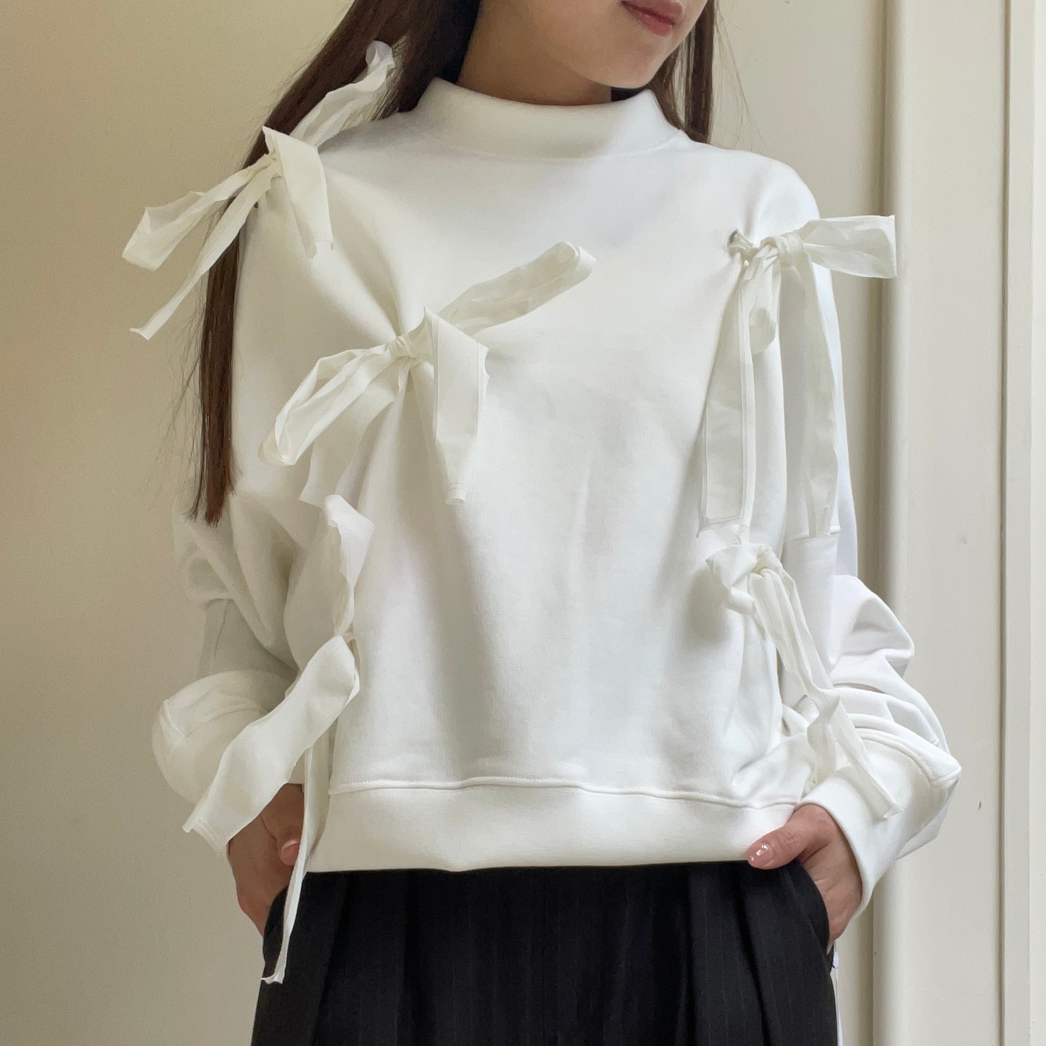 ランダムに散りばめられたリボンが特徴のスウェットプルオーバー。
