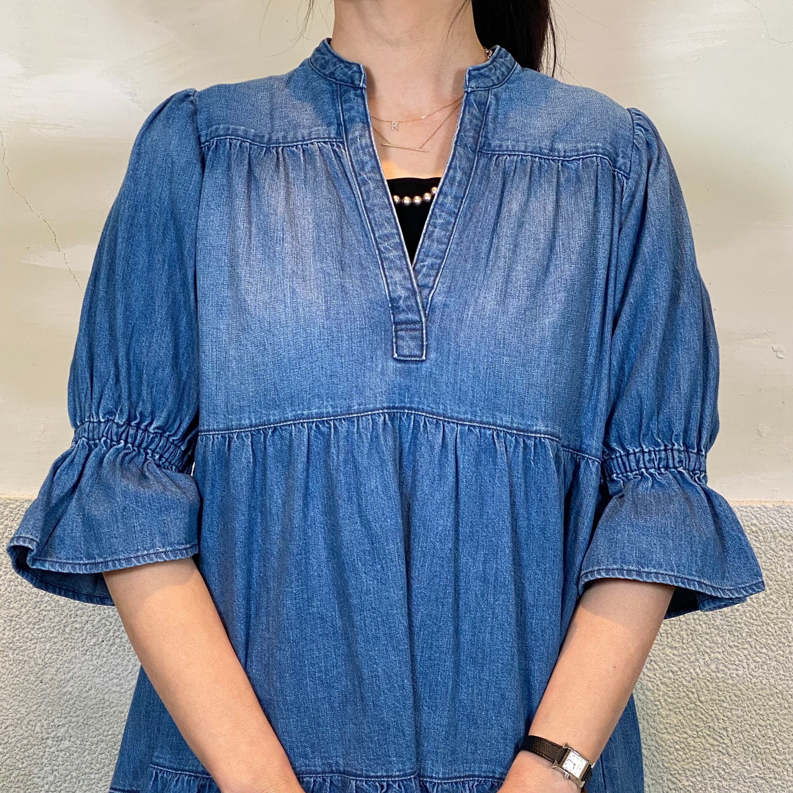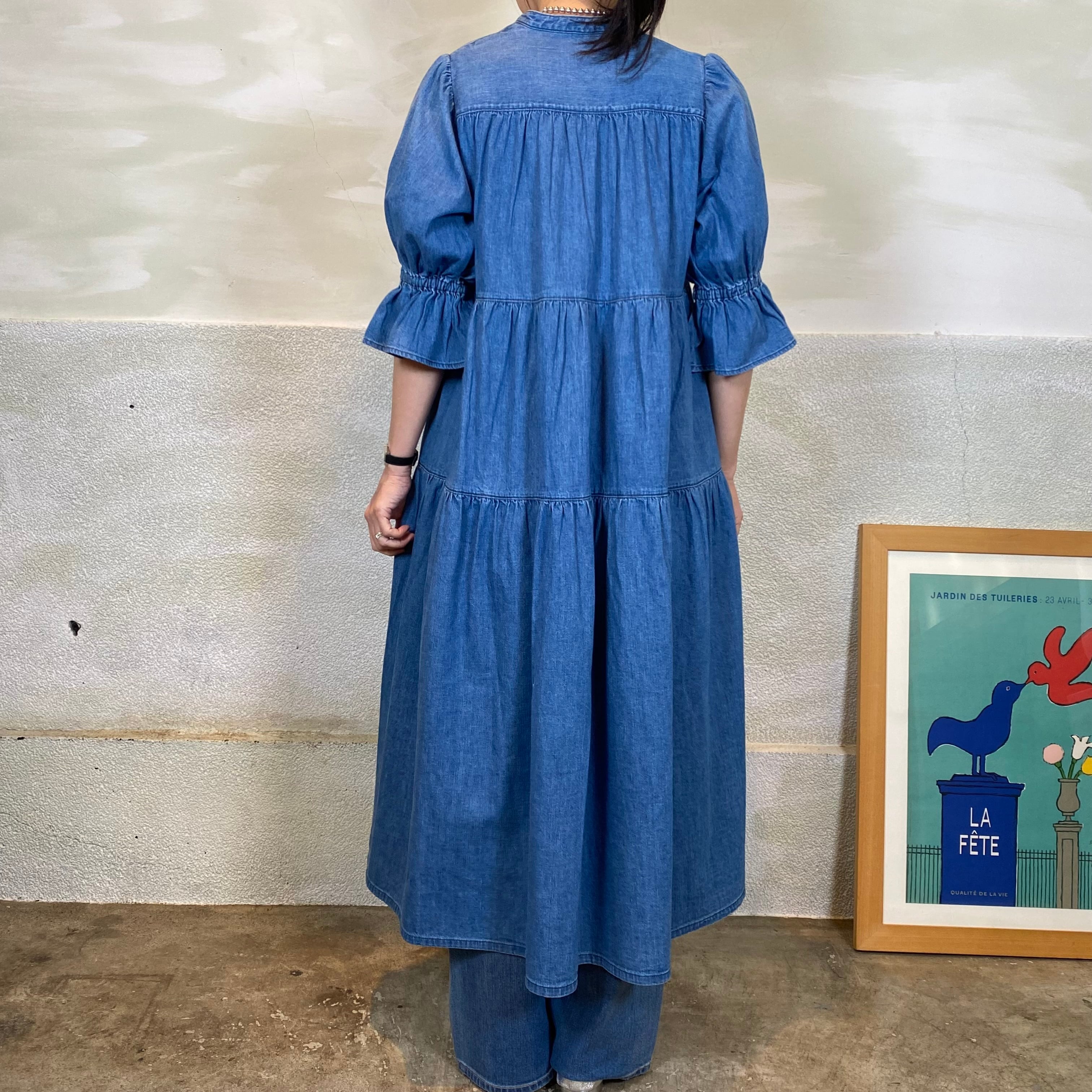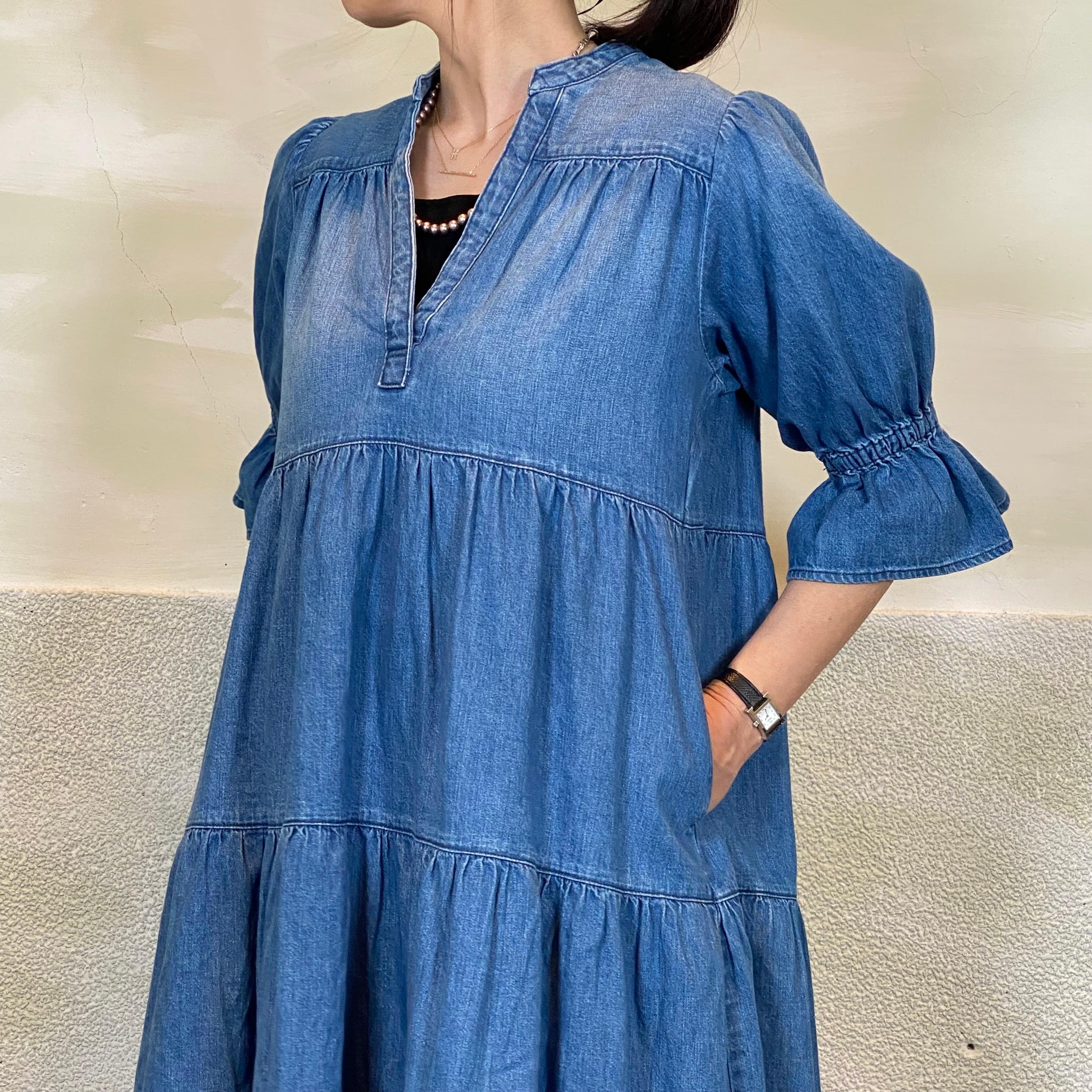 カジュアルなデニムコーデをキュートに彩ってくれるワンピース。ふわっと広がる優雅なティアードシルエットと袖口をキュッと絞ったスリーブが女度を急上昇。すっきり開いたネックラインがお顔まわりに抜け感を添えて。休日のデートからリゾートまで主役としてクローゼットに迎え入れたい