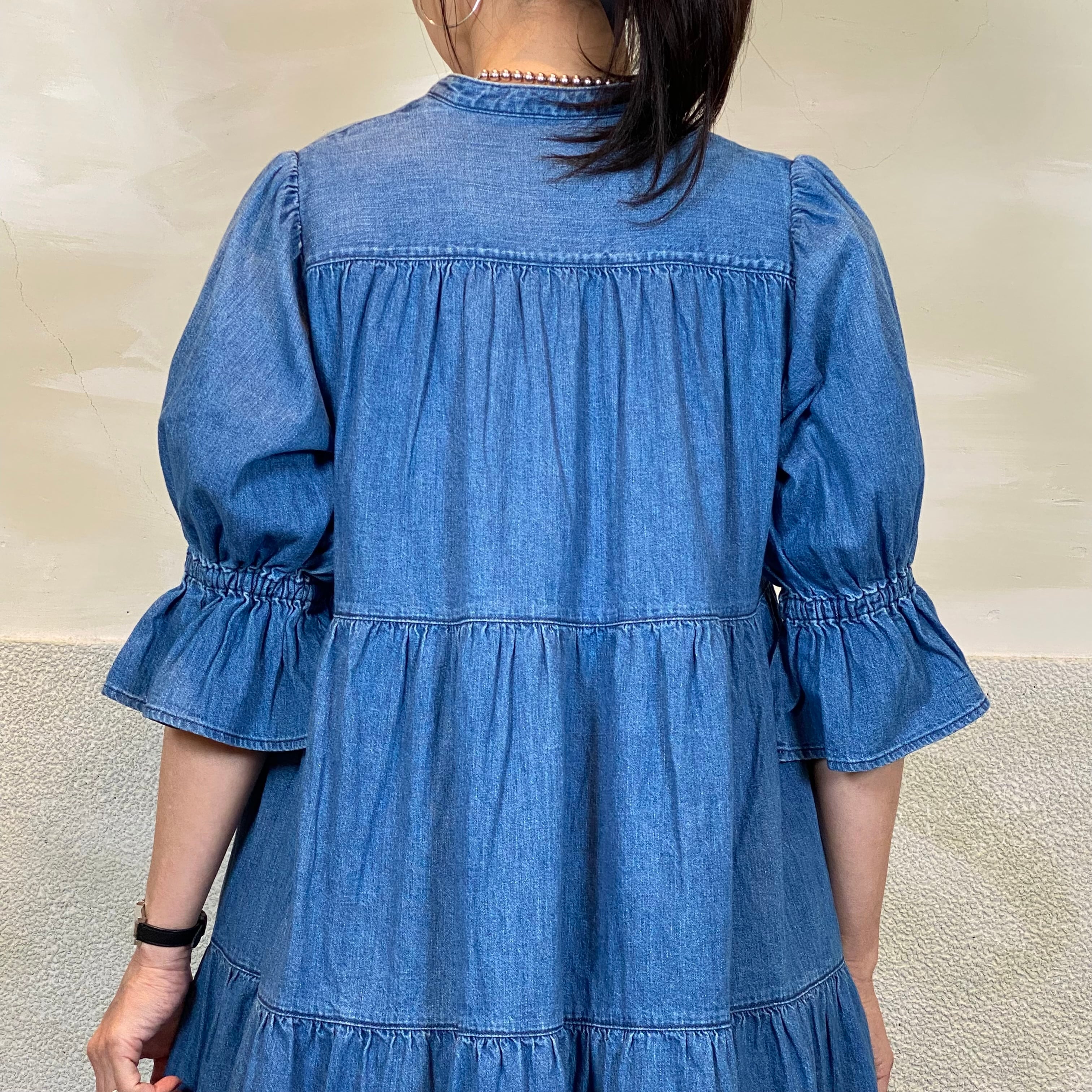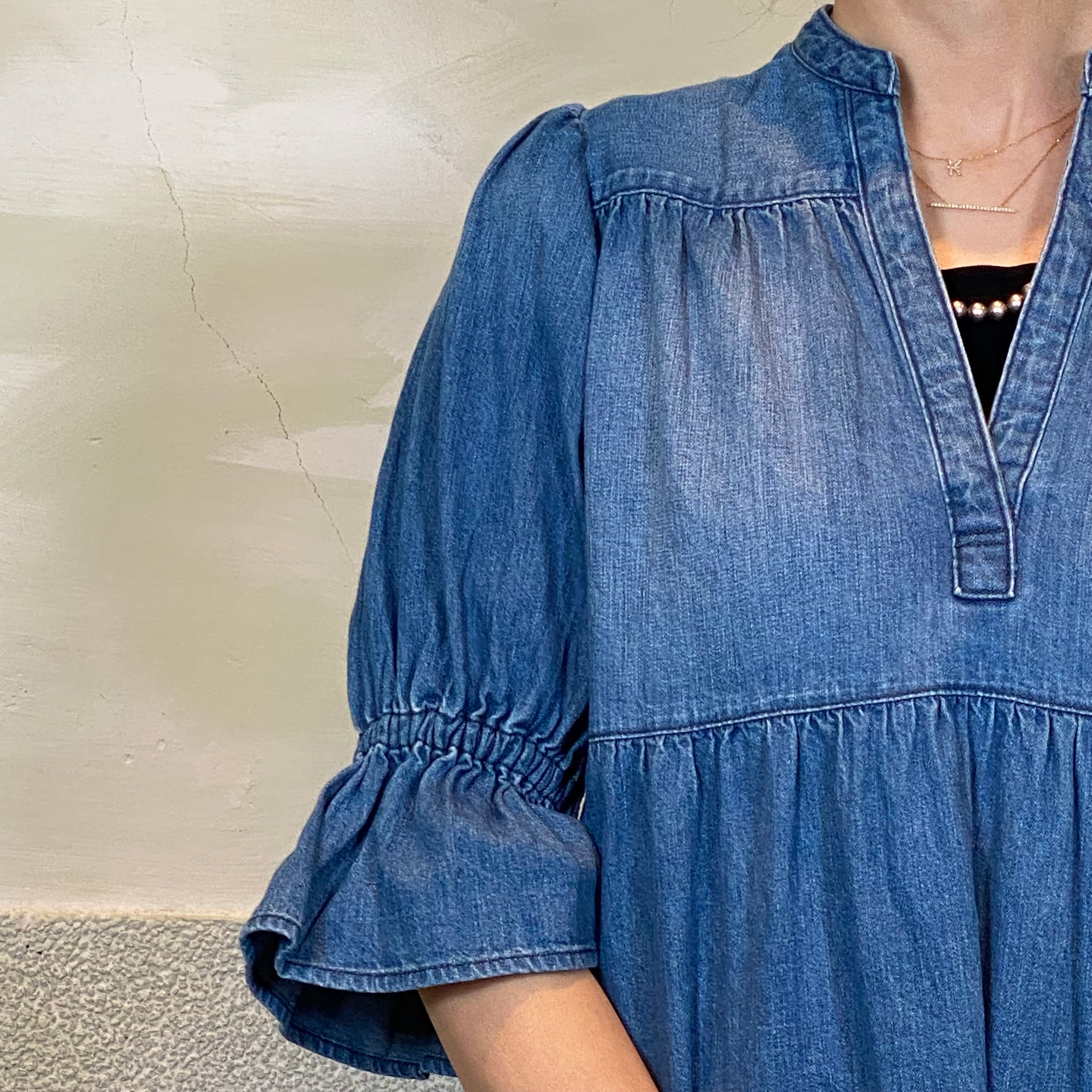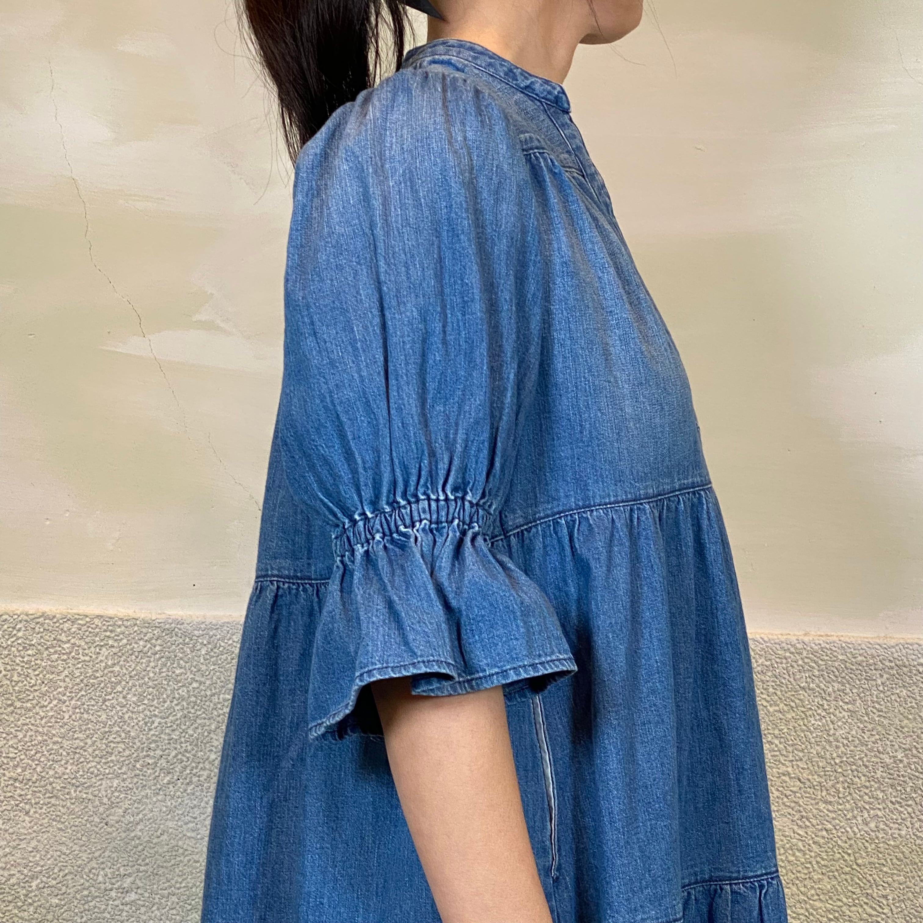 カジュアルなデニムコーデをキュートに彩ってくれるワンピース。ふわっと広がる優雅なティアードシルエットと袖口をキュッと絞ったスリーブが女度を急上昇。すっきり開いたネックラインがお顔まわりに抜け感を添えて。休日のデートからリゾートまで主役としてクローゼットに迎え入れたい