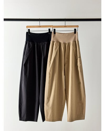 夏の定番、ウエストリブパンツを素材を変えてアップデートしました。