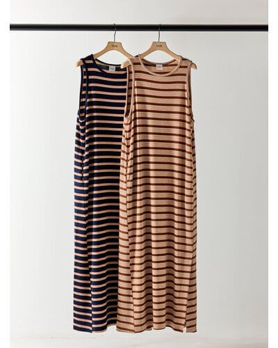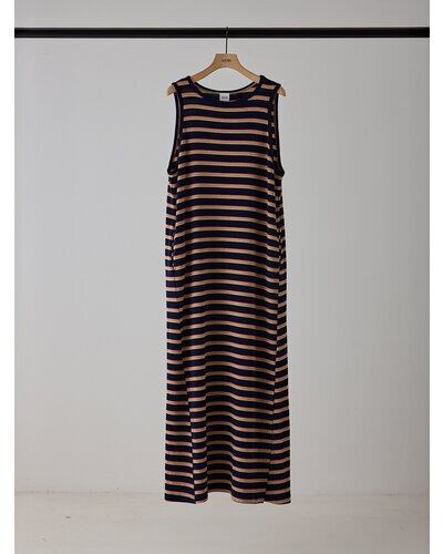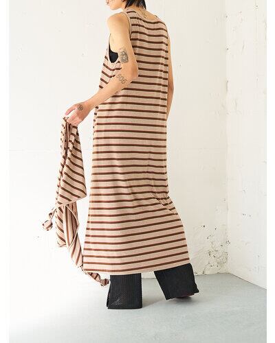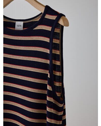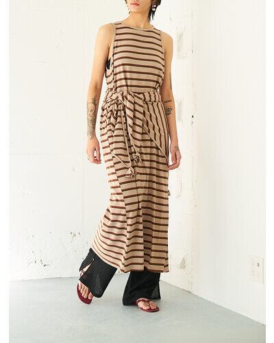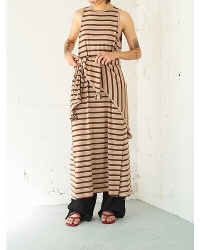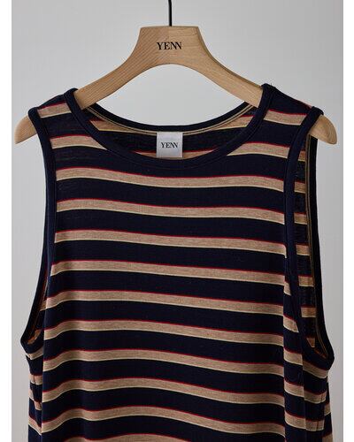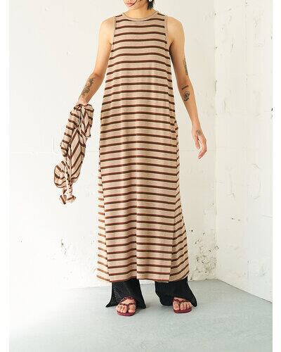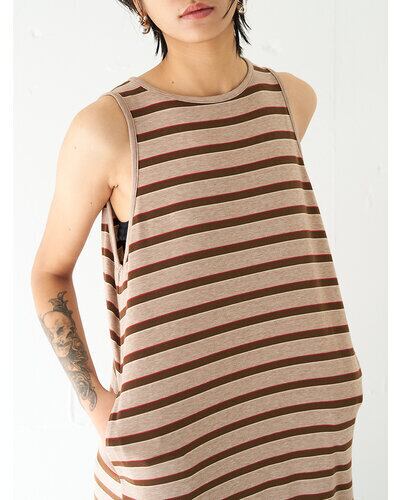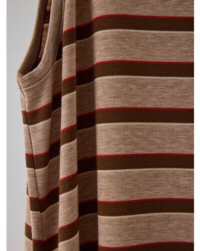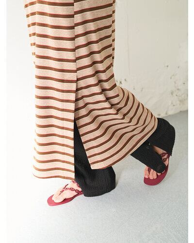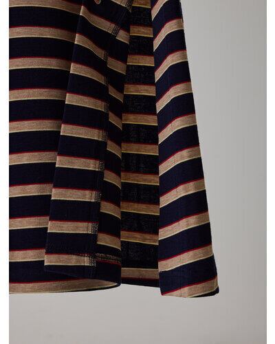 ビンテージ風の色合いのマルチボーダー柄のカットソー素材はトレンド感をプラス。