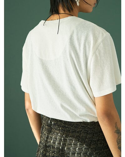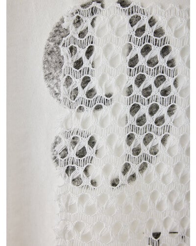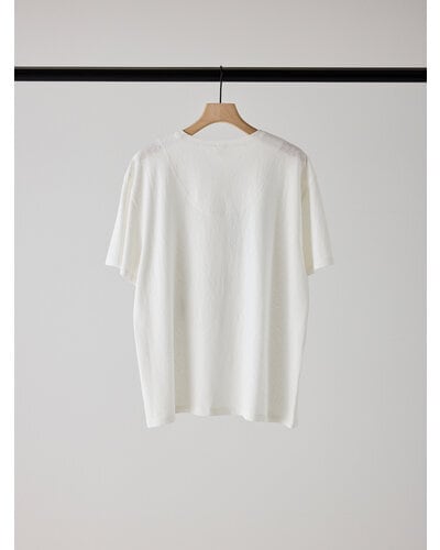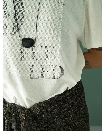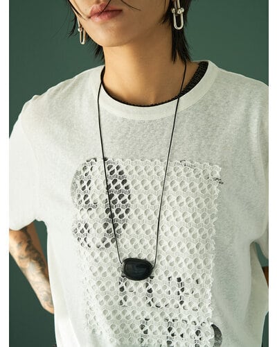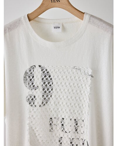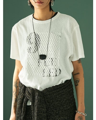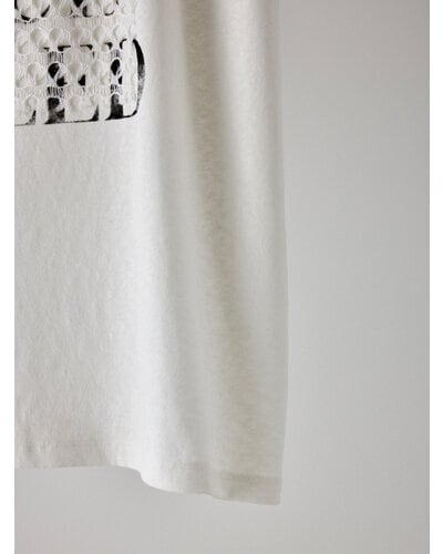 USED感のあるかすれプリントに、スクエア状に切り取ったレースを叩きつけたアイキャッチなプリントTシャツ。クラフト感のあるディテールが、シンプルなTシャツスタイルをさりげなく格上げします。大人の遊び心を感じさせるデザインでありながら取り入れやすく、一枚でスタイリングが完成。どんなボトムとも相性良く、着こなしの幅を広げてくれる一着です。