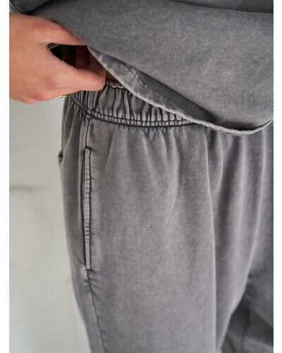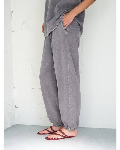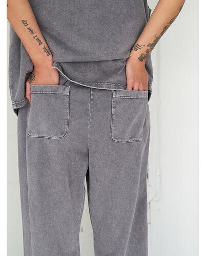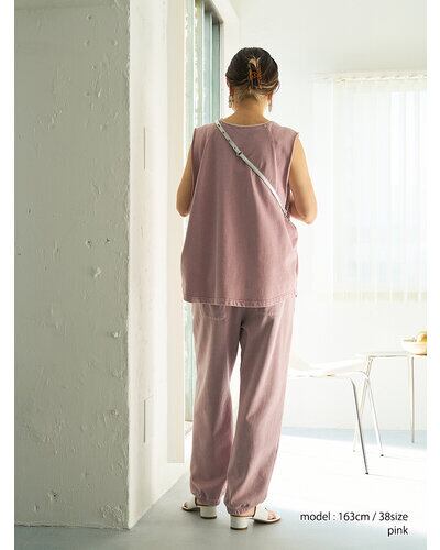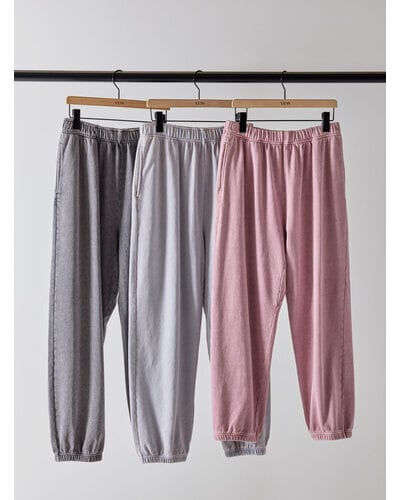綿100%のミニ裏毛にケミカル+オーバーダイ加工を施したスウェットパンツです。