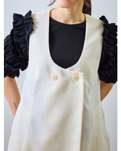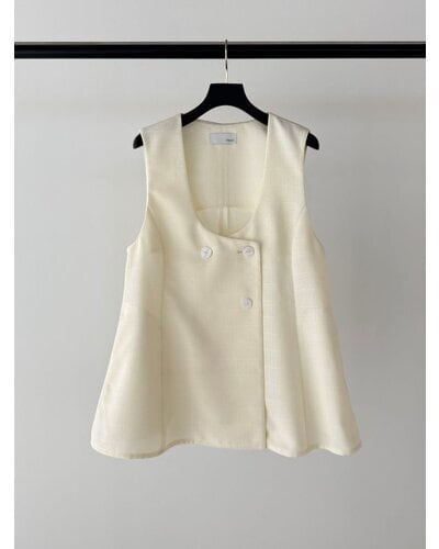 ワントーンで織り上げた、表情豊かなスクエア調サマーツイード素材のジレ。