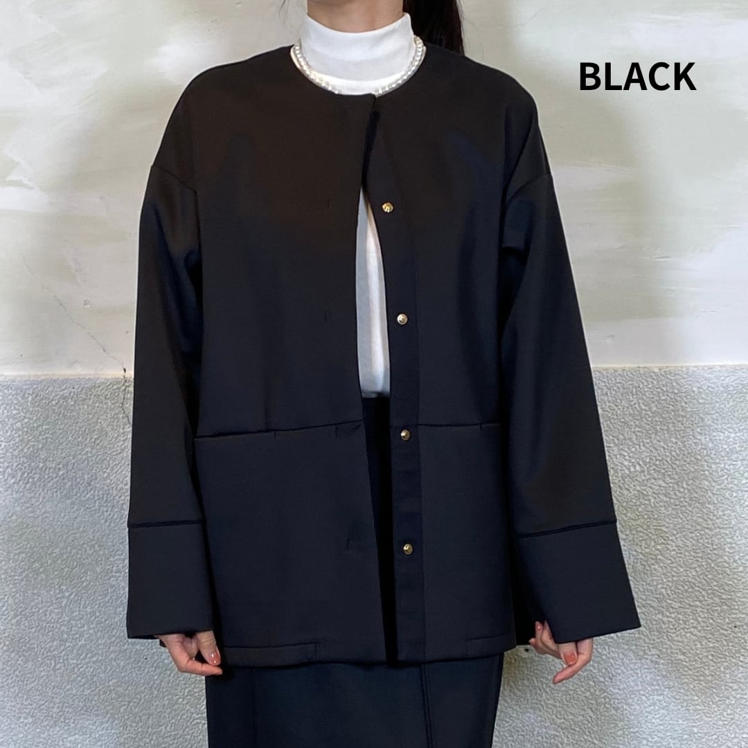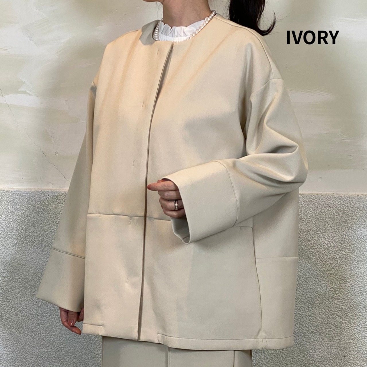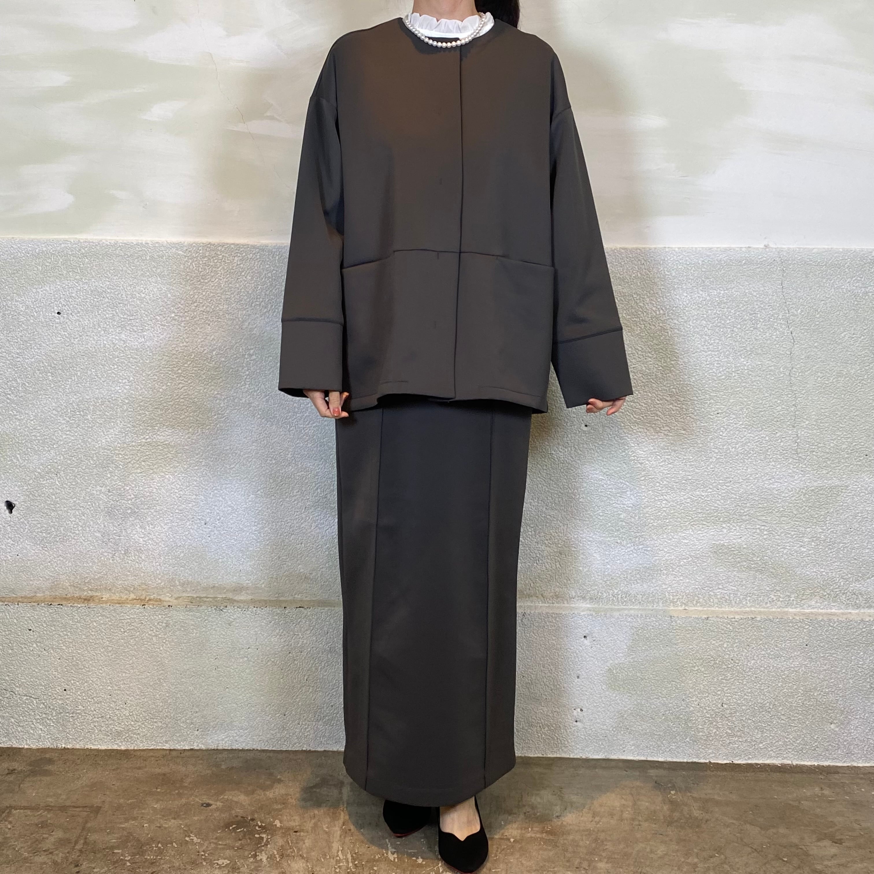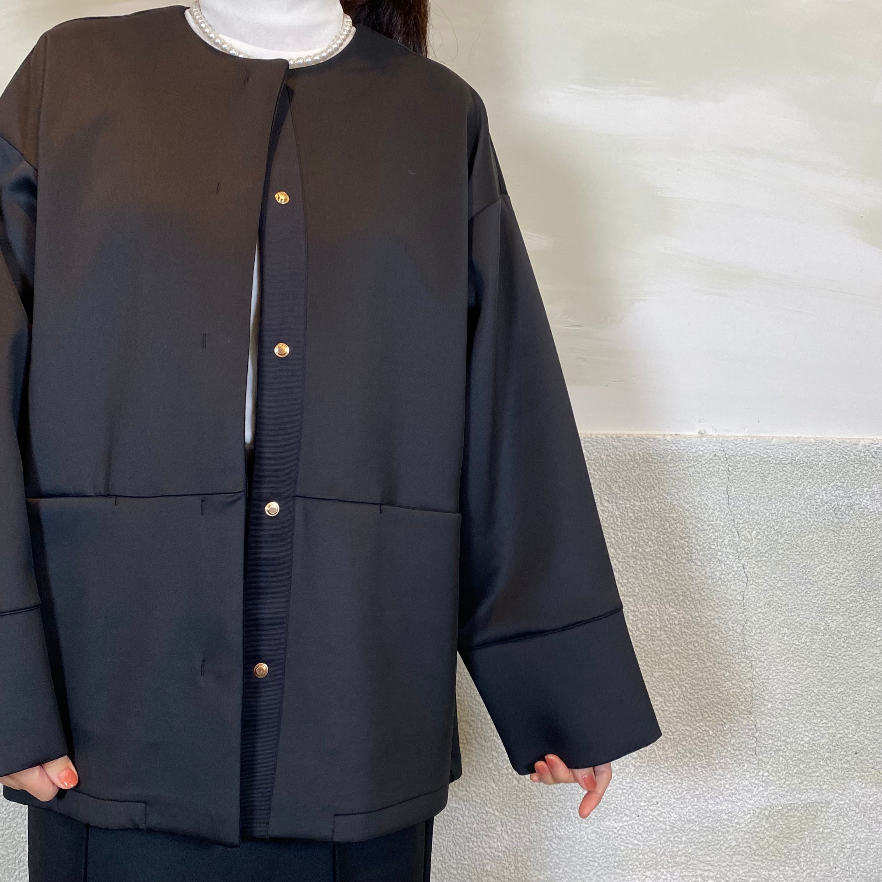 後身頃はタックデザインで、立体的なコクーンシルエットがポイントです。ゆとりのあるサイジングで、重ね着してもごわつかず着心地も◎