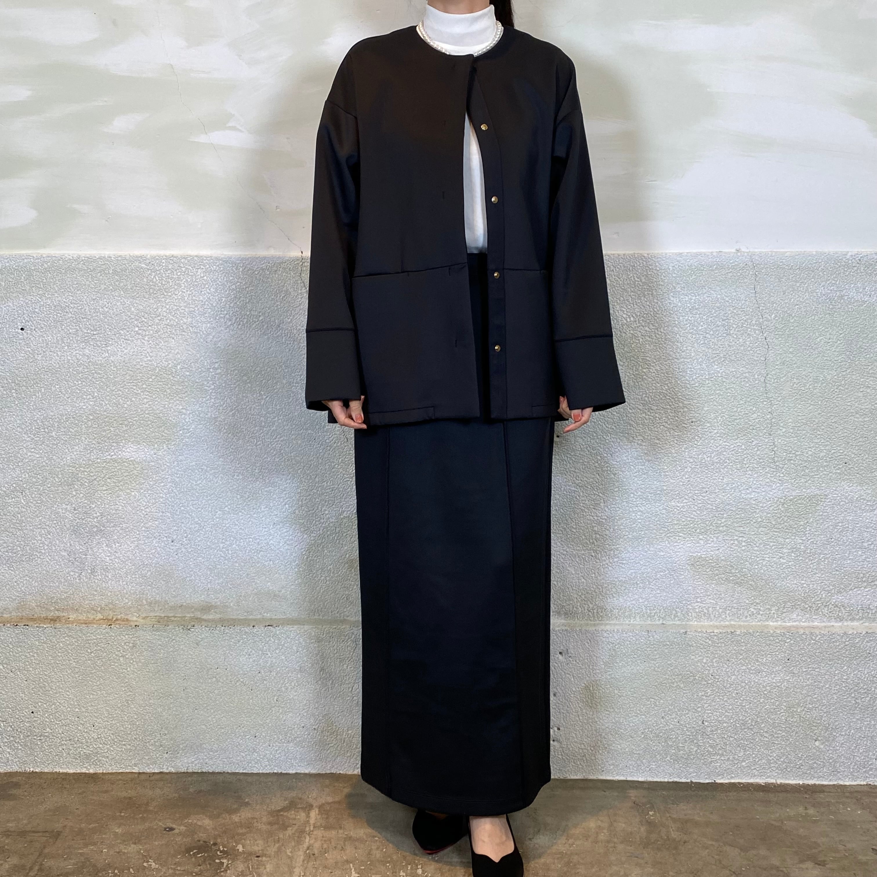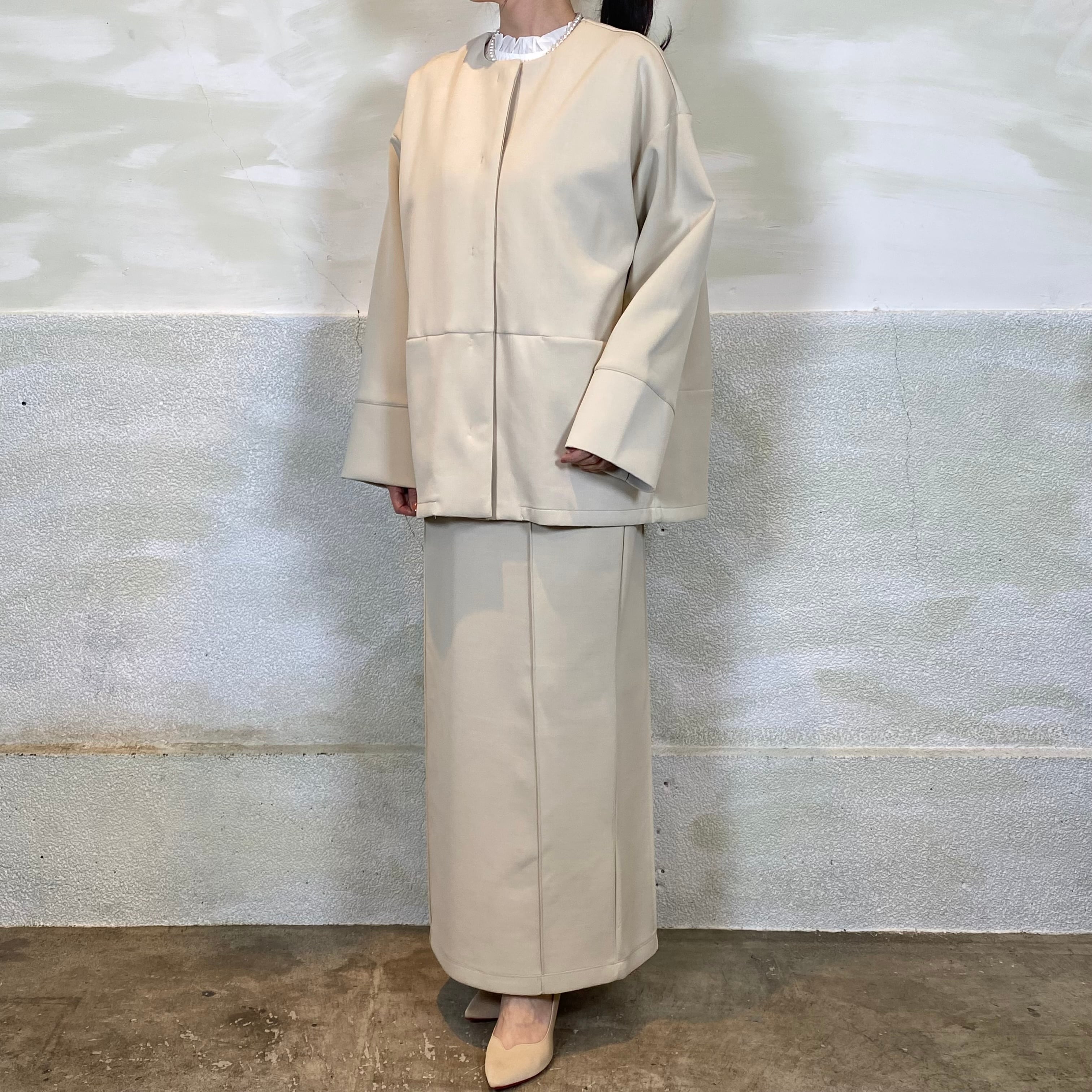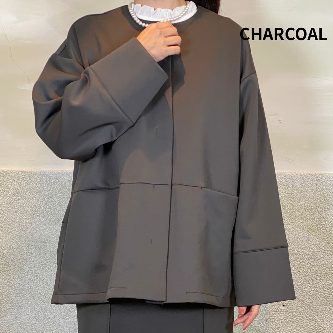 細番手の糸を使用し、なめらかでキレイな見え方の素材です。ハリ感があり立体的なシルエットに。ストレッチ性あり。
