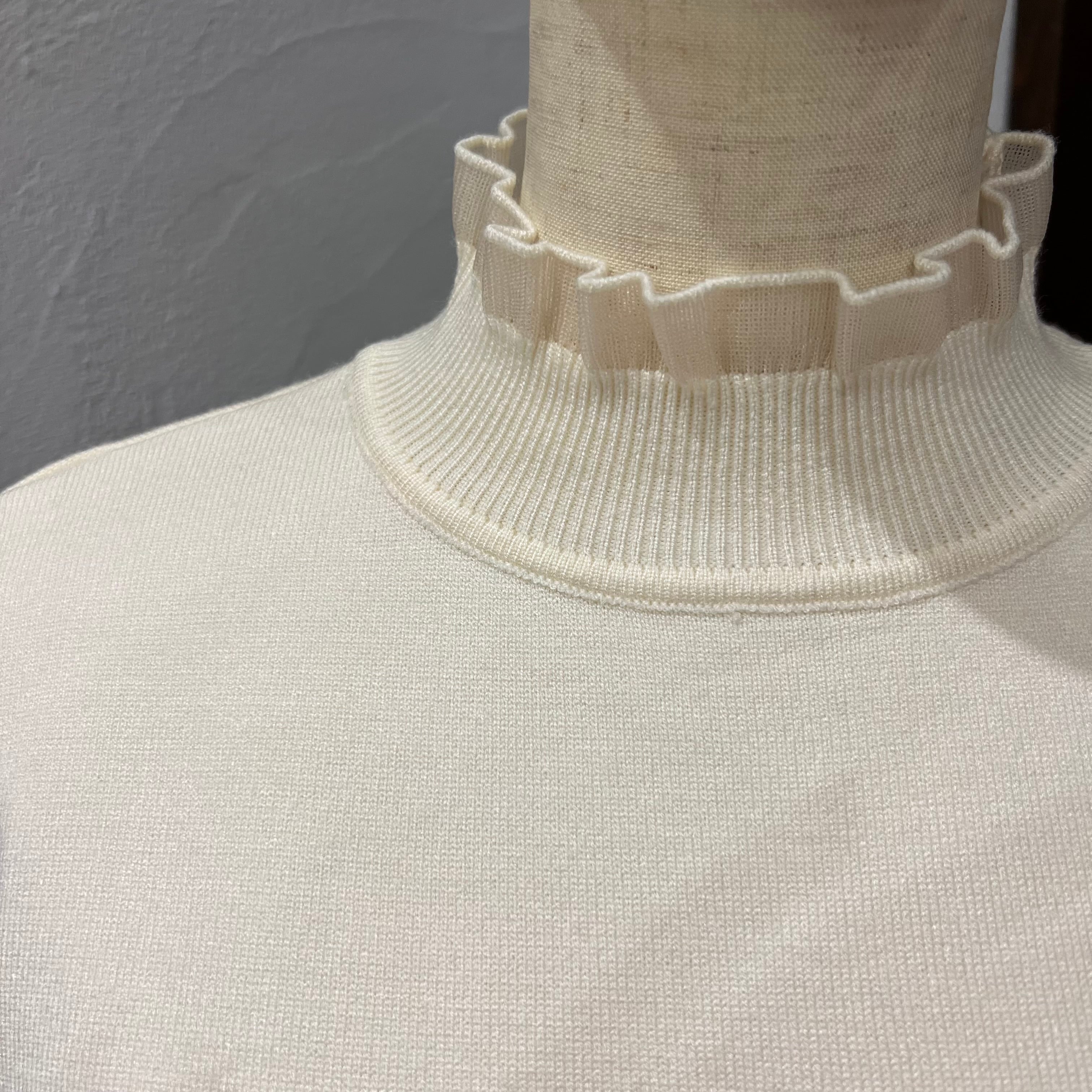 お袖と首周りにあしらわれたチュールフリルがポイント。