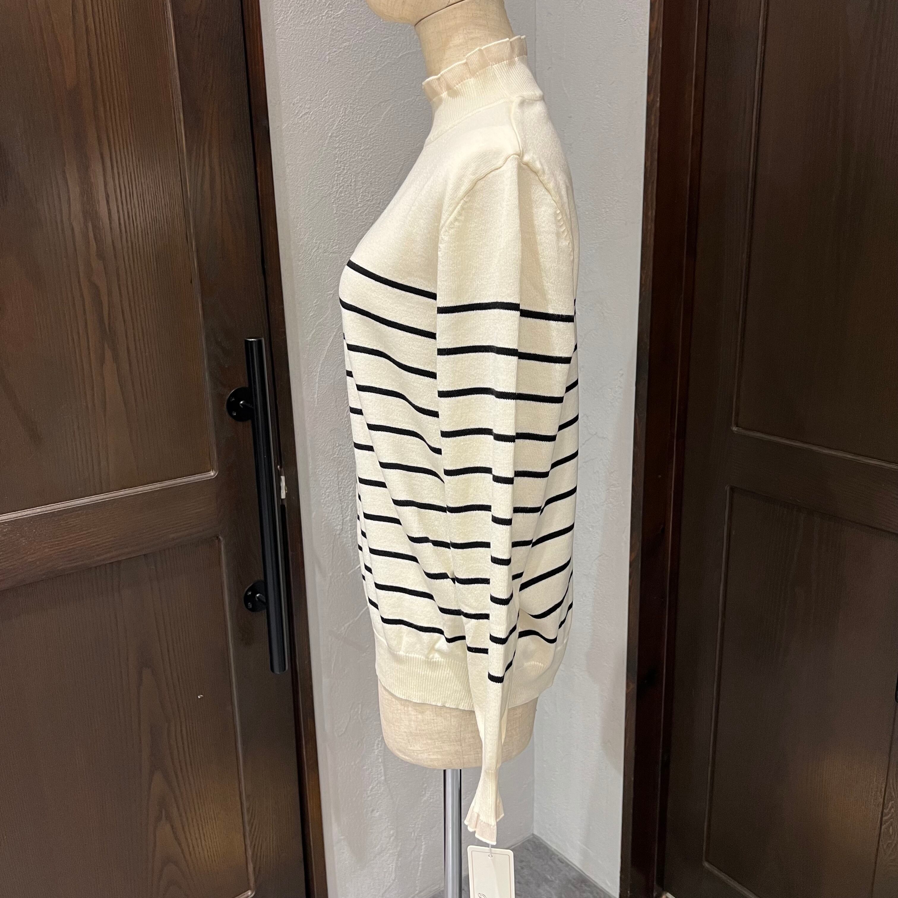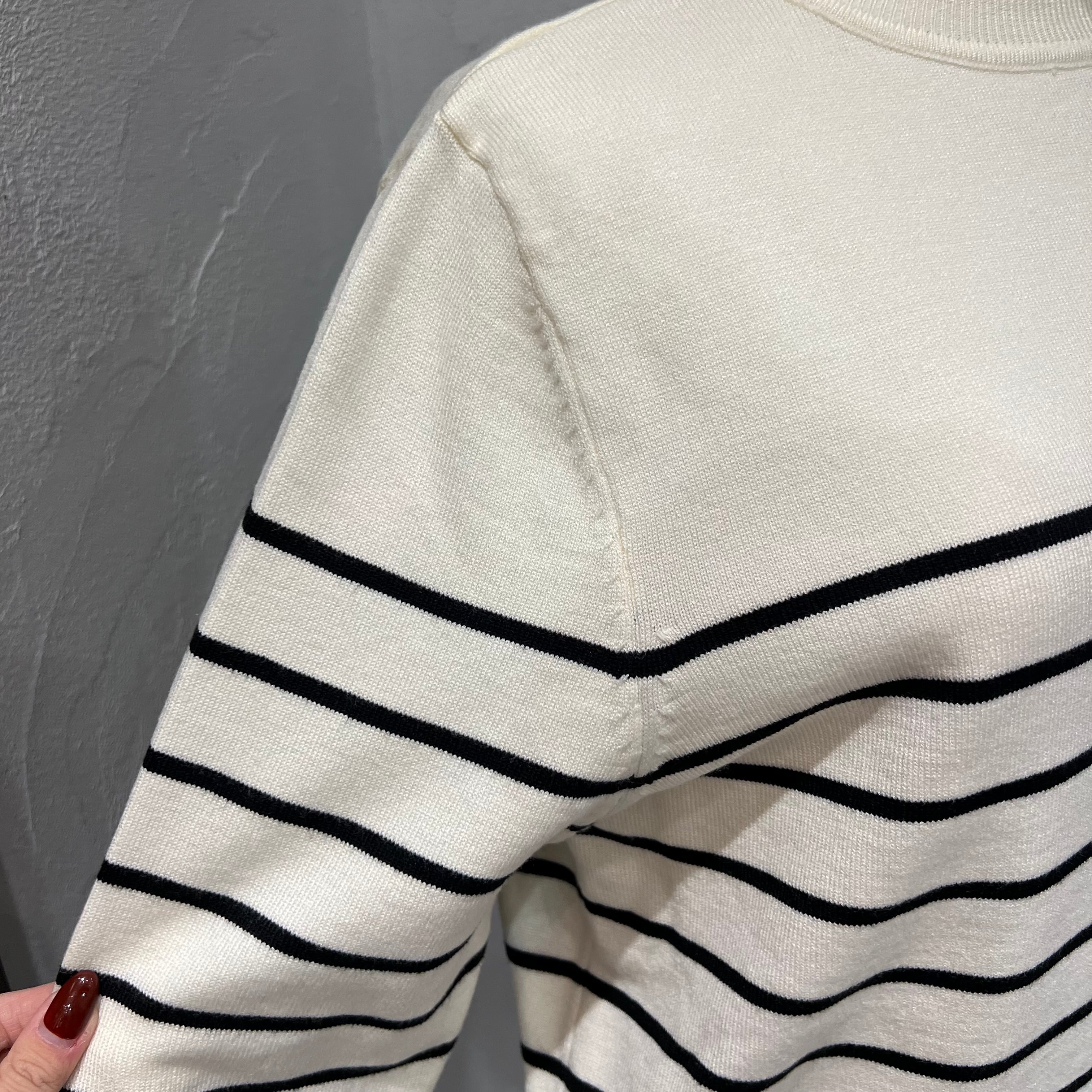 滑らかな肌触りのボーダーニットがボーダーのデザインを少し変えて