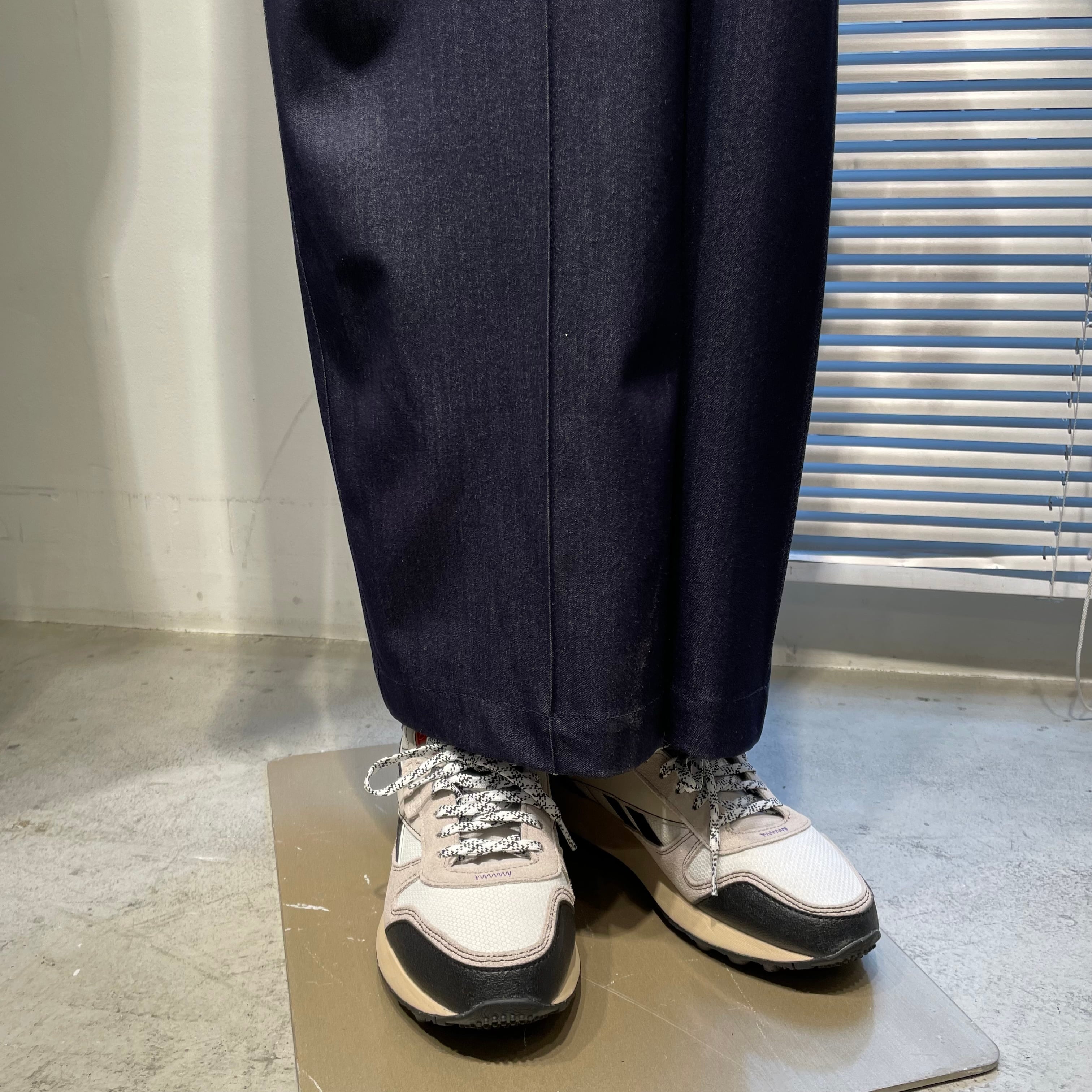 ベージュ:ポリエステル97% ポリウレタン3%インディゴ:ポリエステル57% レーヨン40% ポリウレタン3%