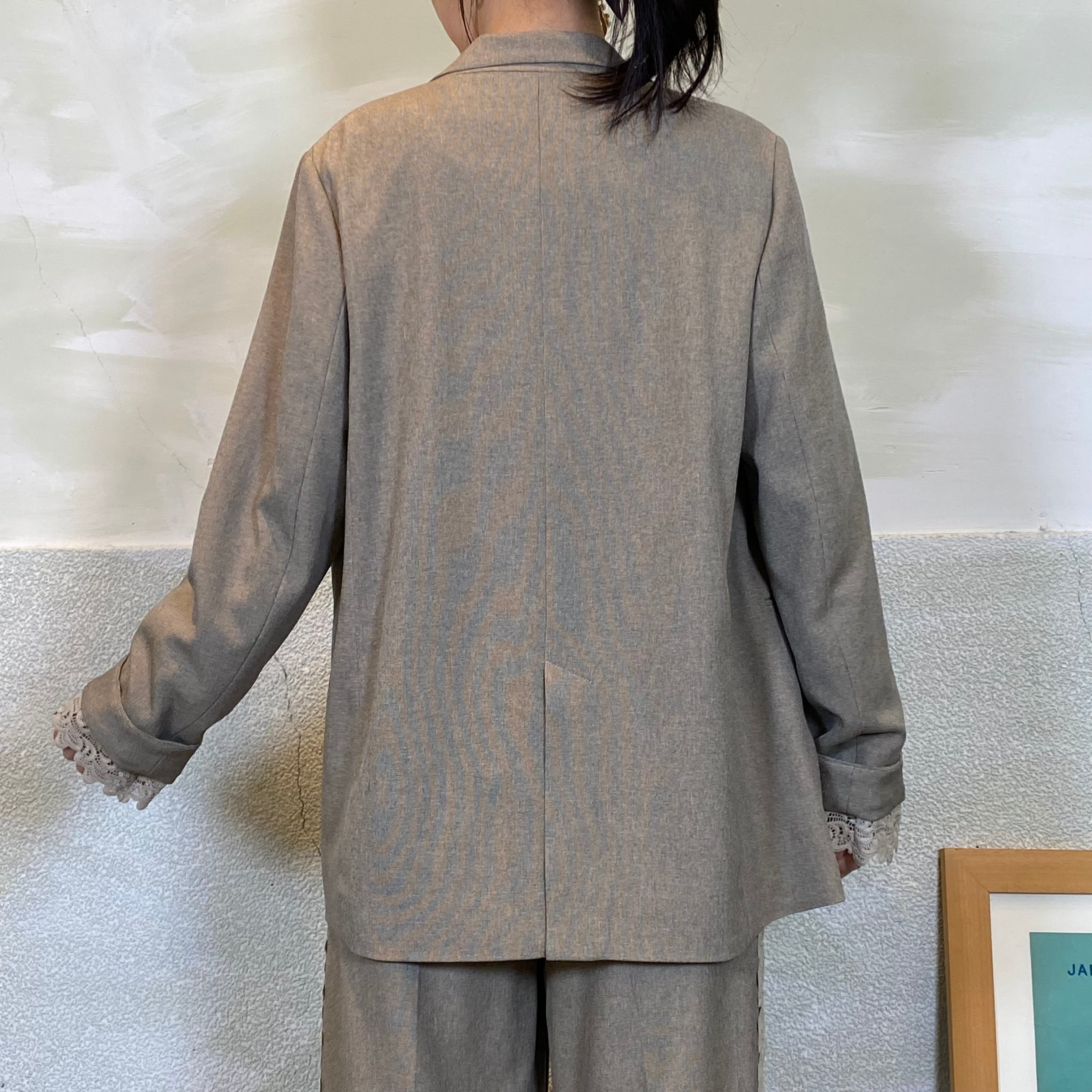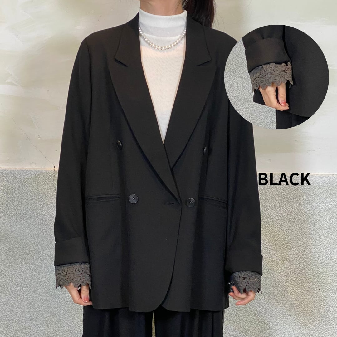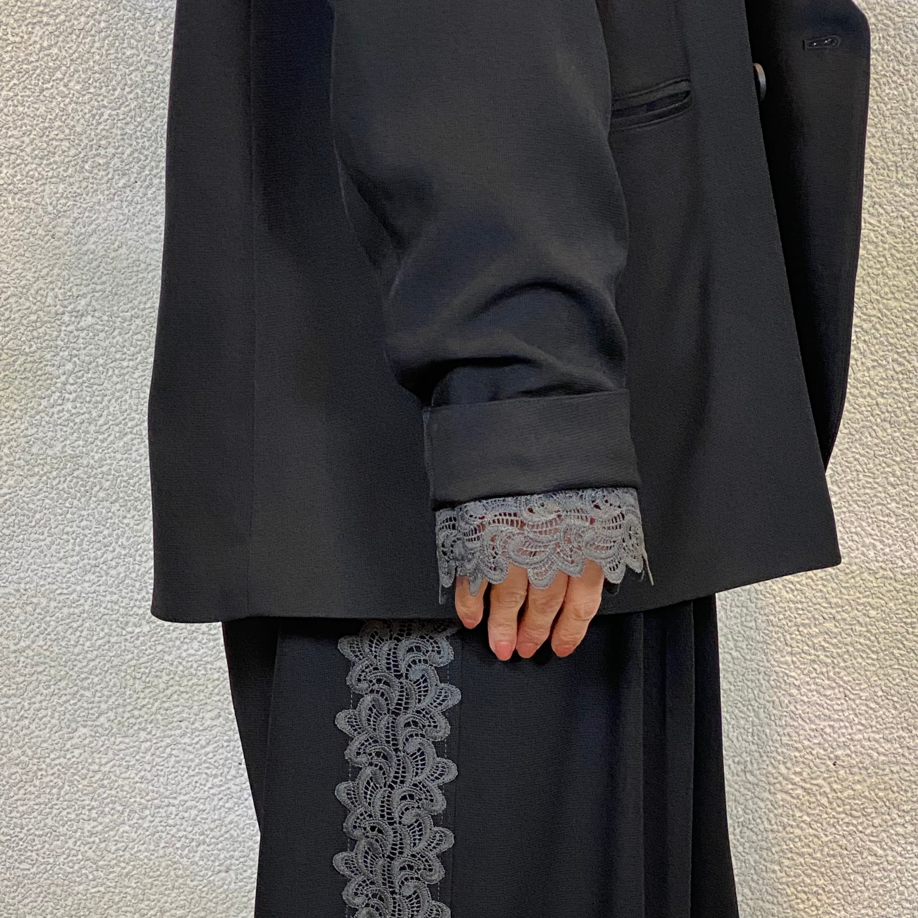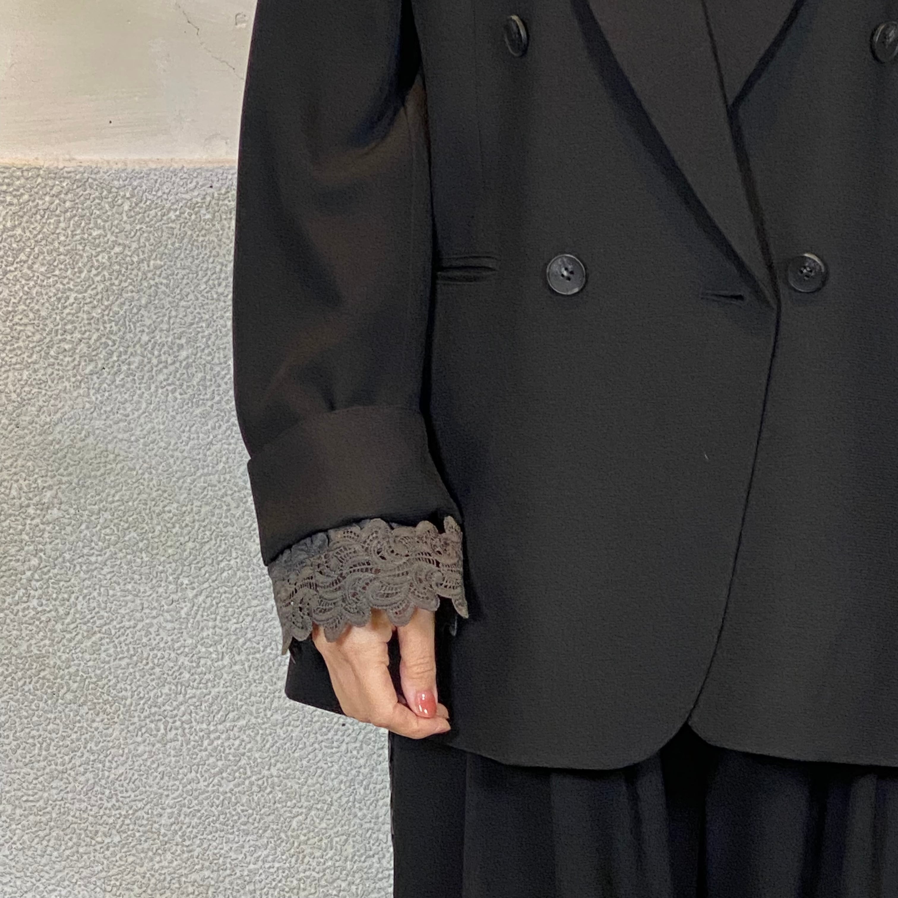 袖口に挟み込んだレースがポイントです。