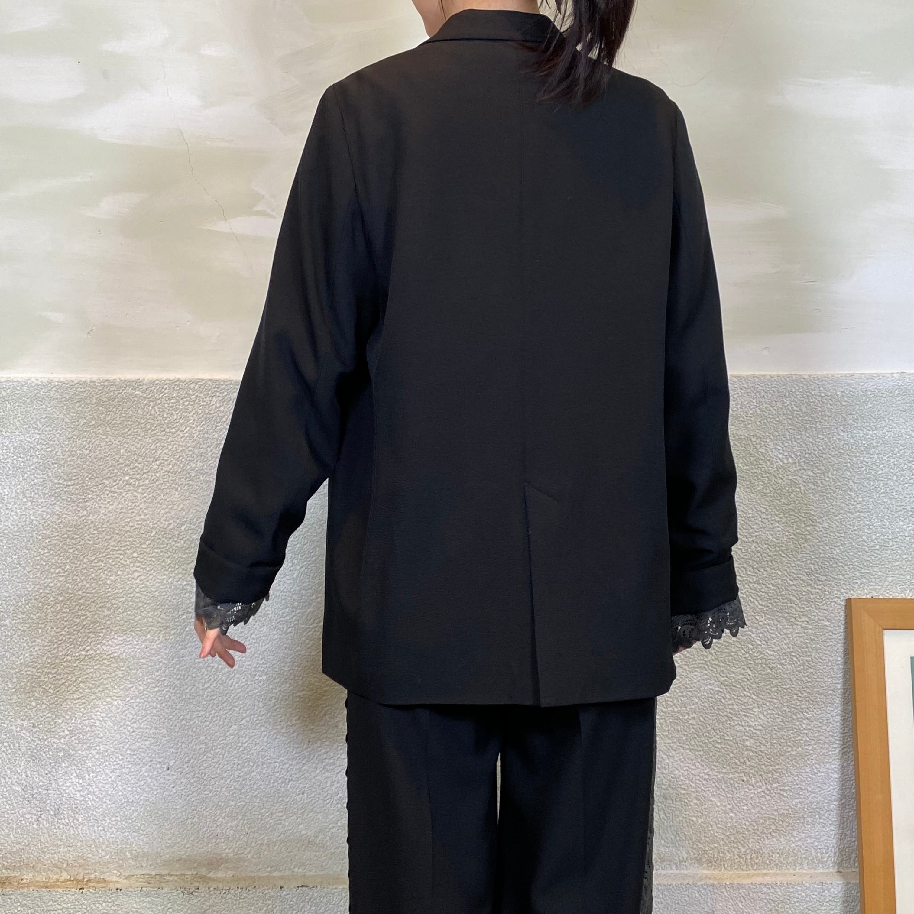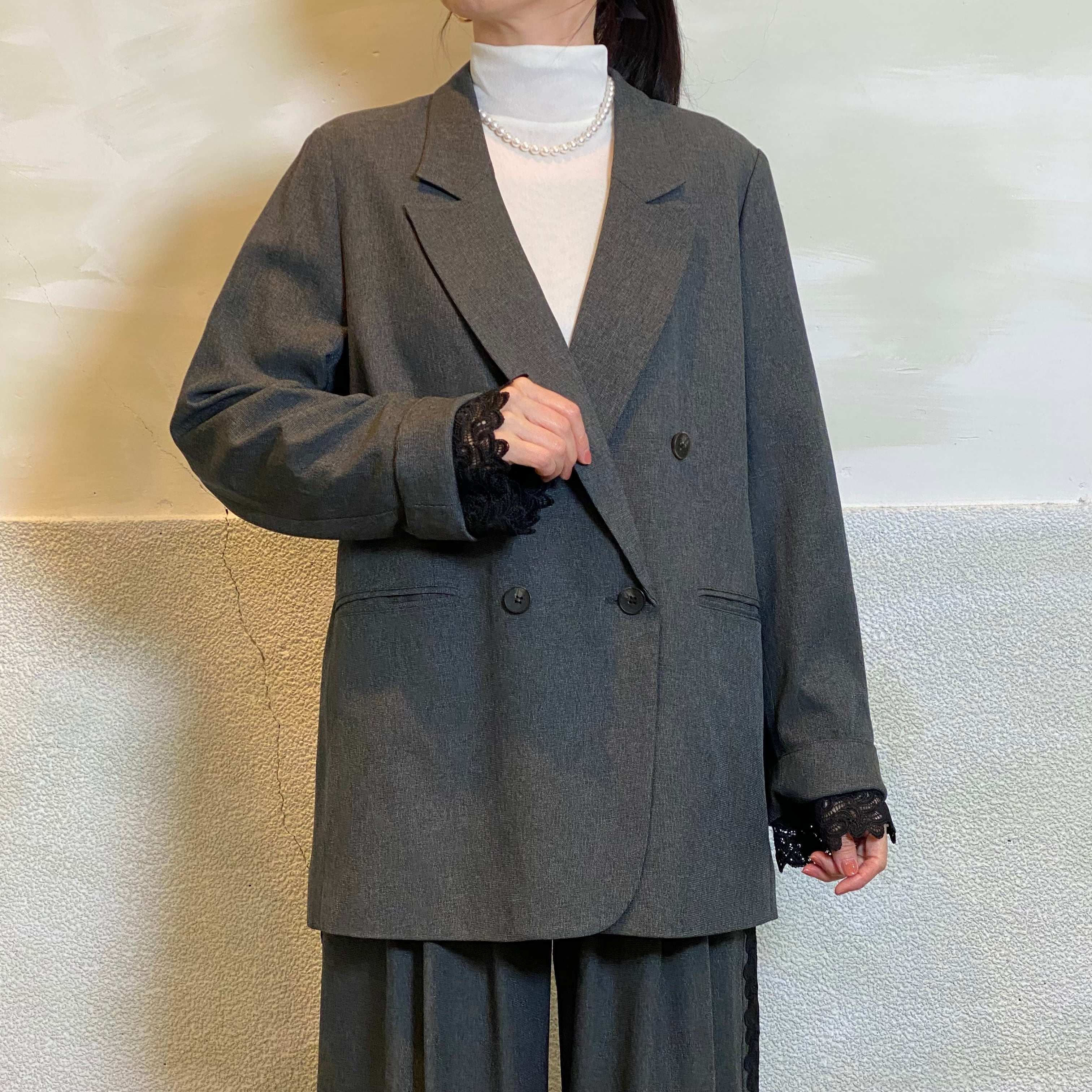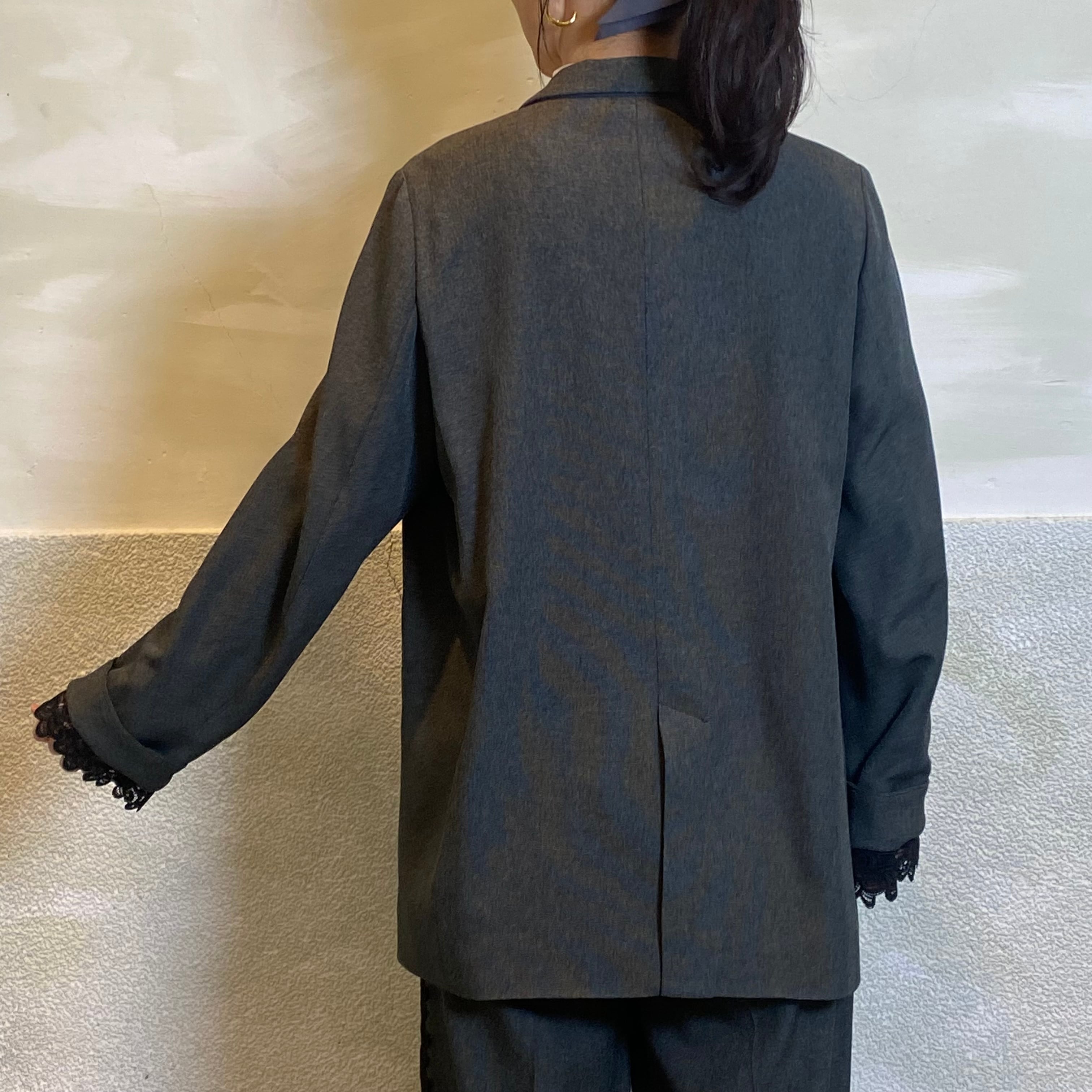 袖口に挟み込んだレースがポイントです。