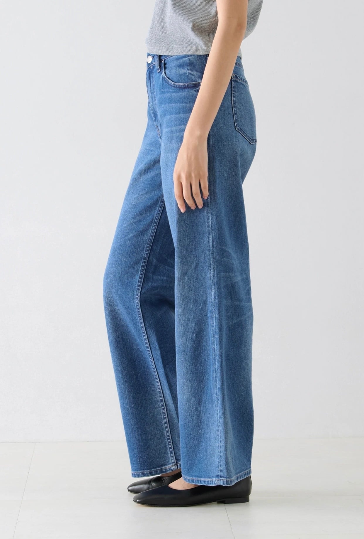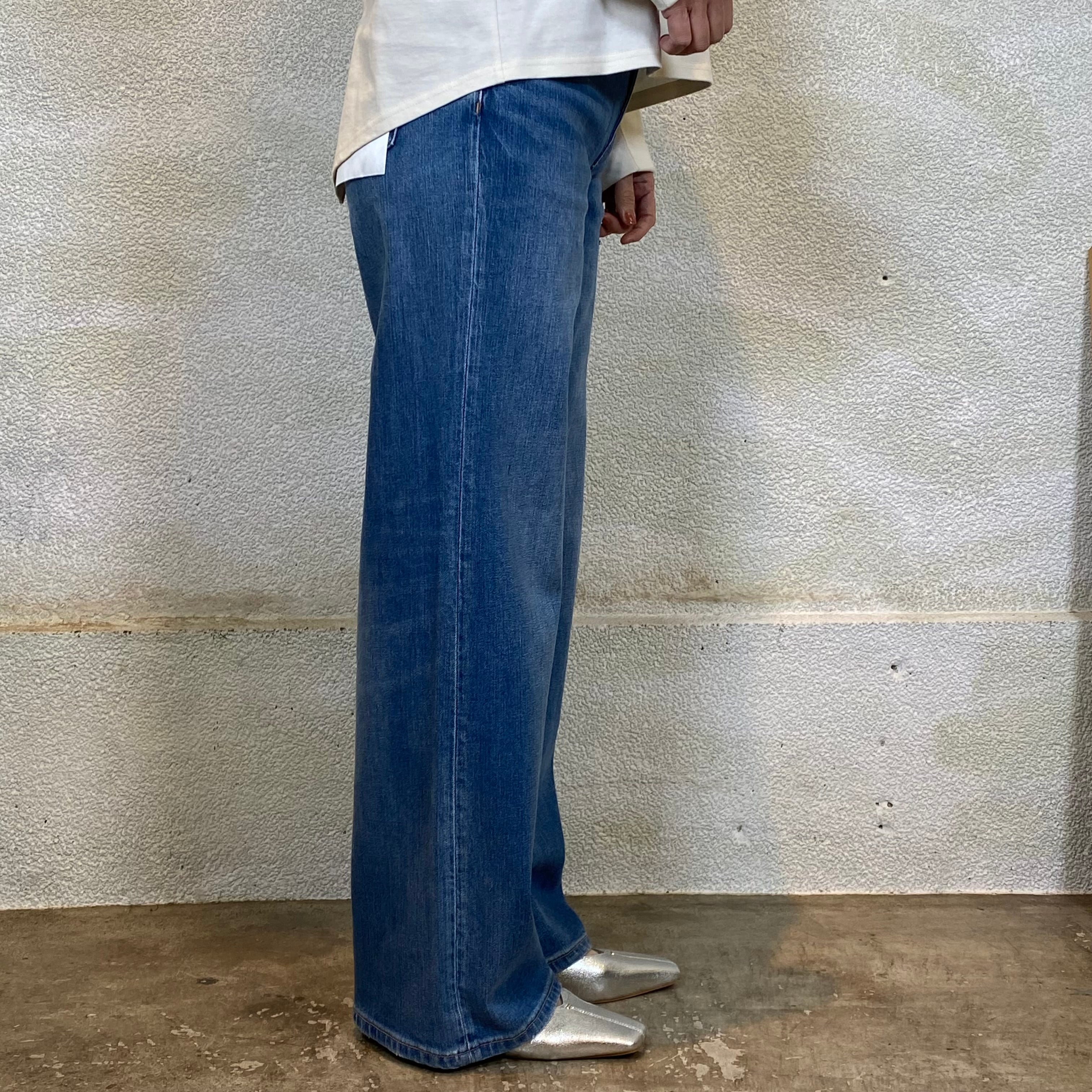 どんなトップスを合わせても瞬時に今季顔へアップデートしてくれるデニムが入荷。脚を長く美しく見せるほんのりフレアラインとあえて長めに設定された股下丈が、ハンサムで都会的なムードに。コットンリヨセルを使用した柔らかな肌触りは、いつでも快適に過ごせるのが魅力。ワードローブの新たな定番として手もとにマストハブ。