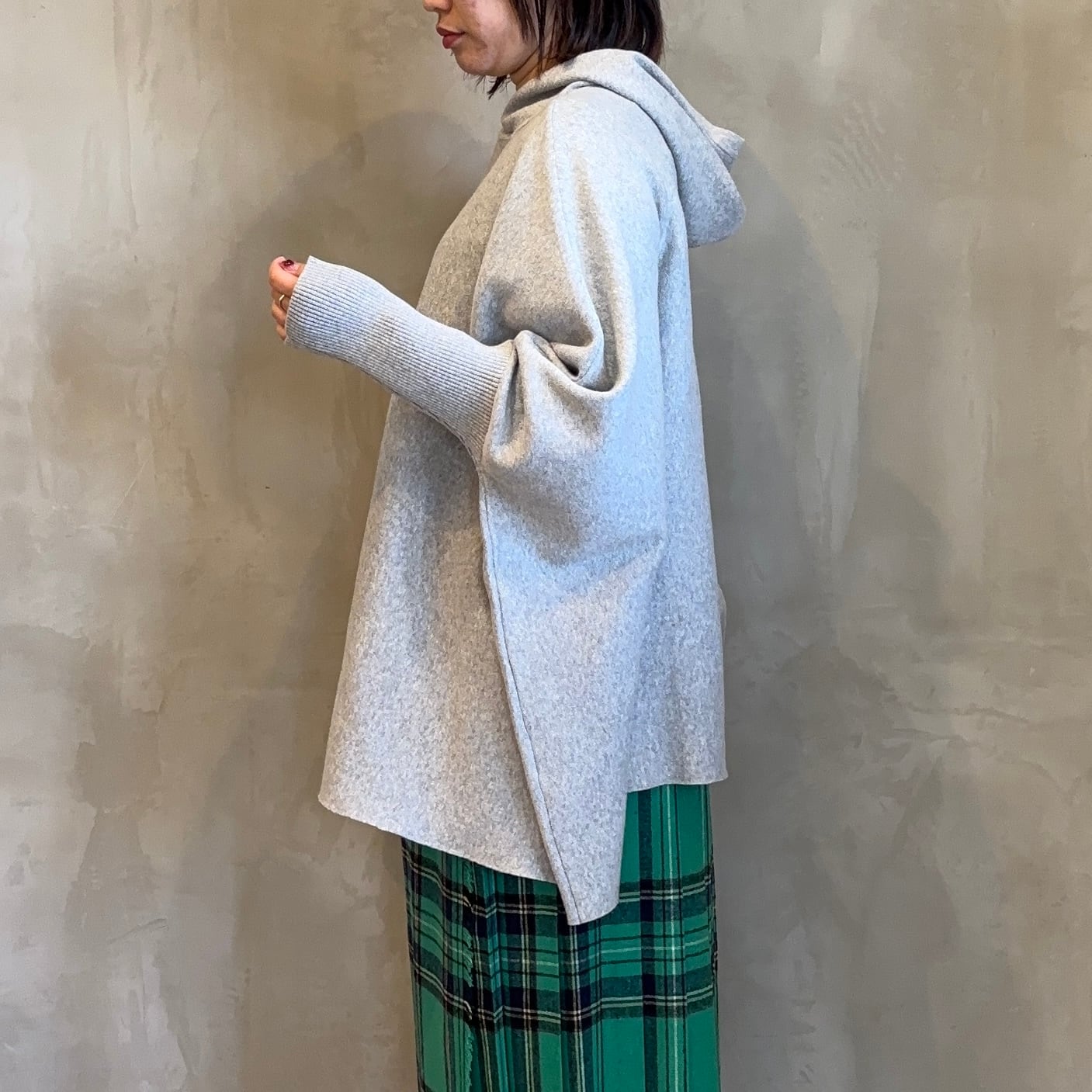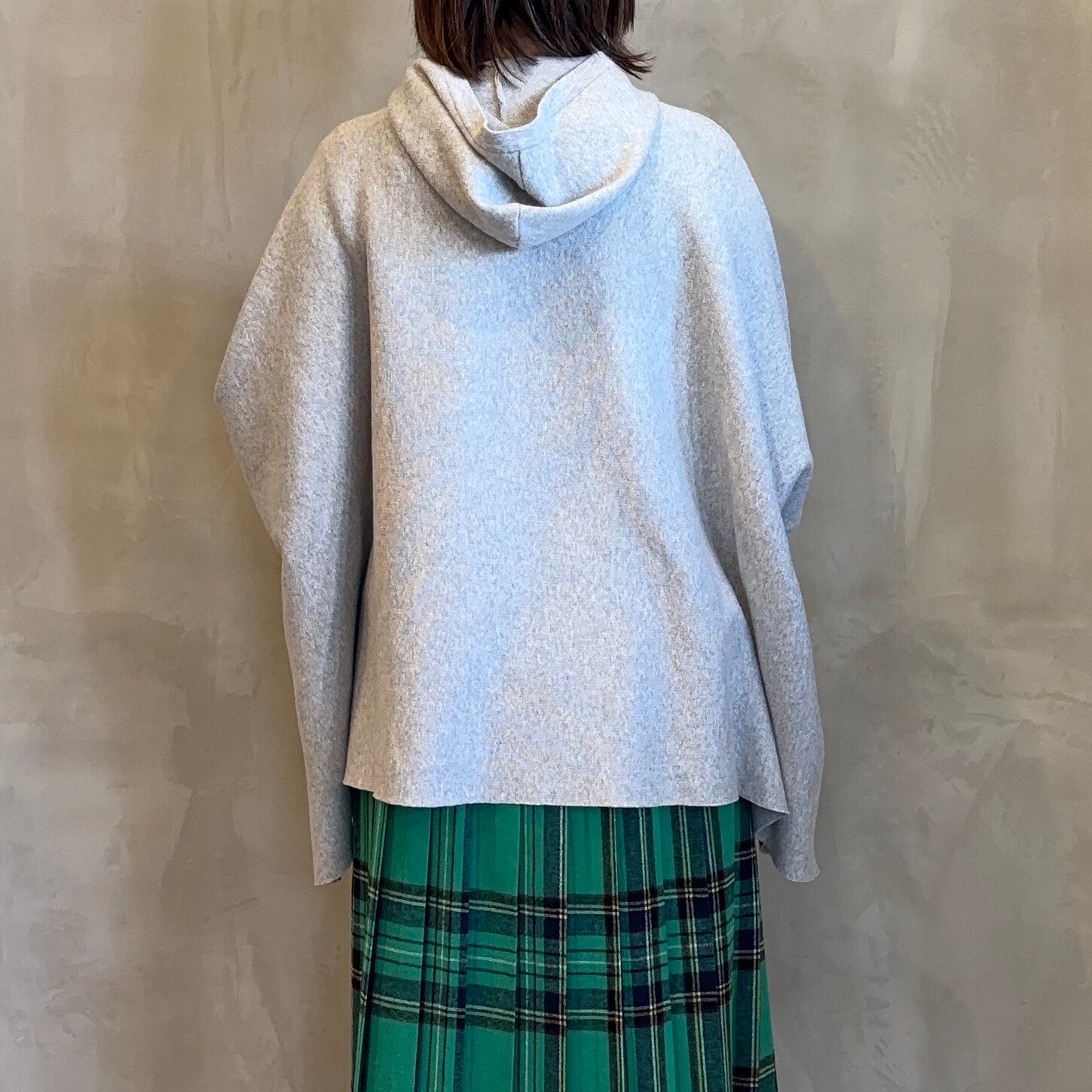 フード付きのポンチョニット