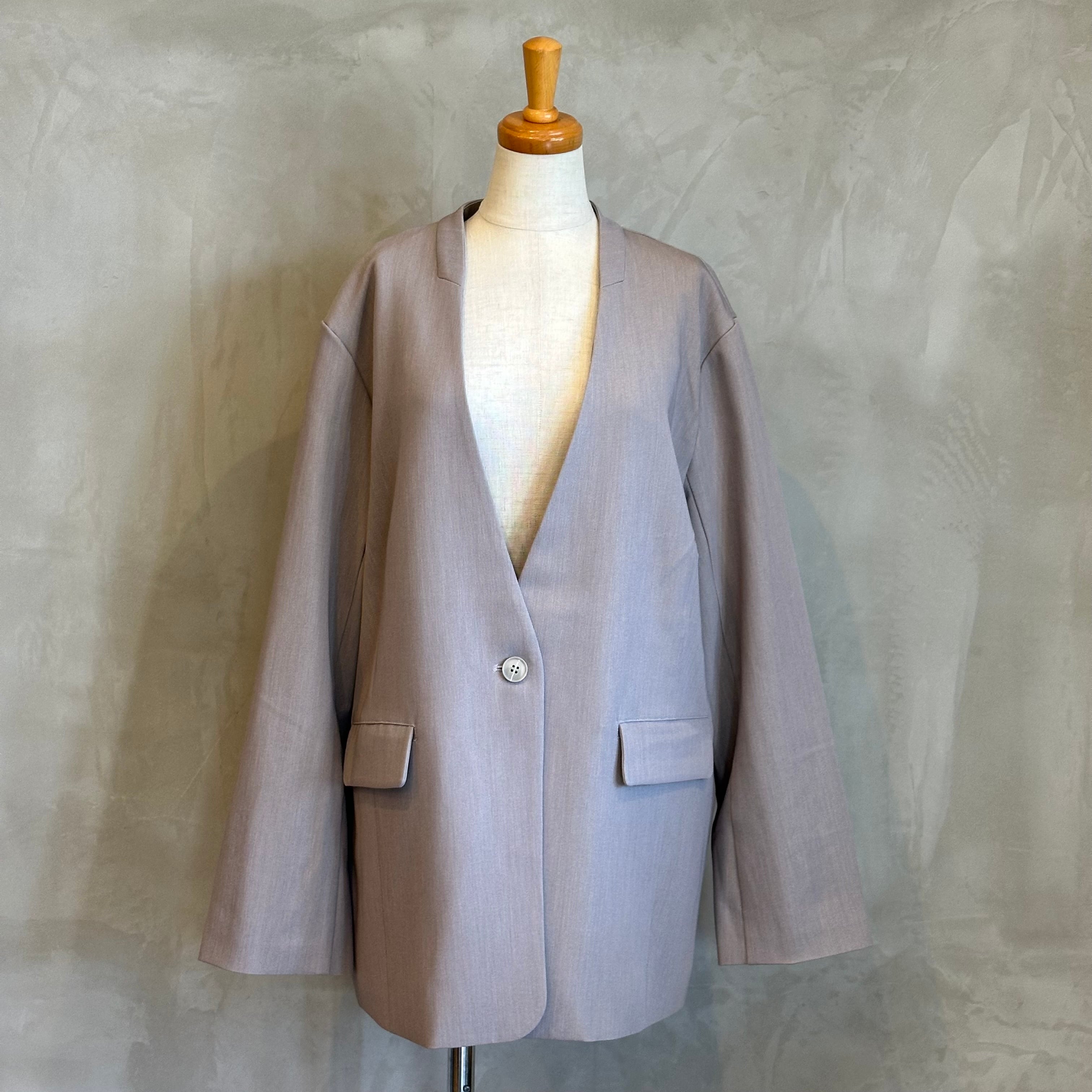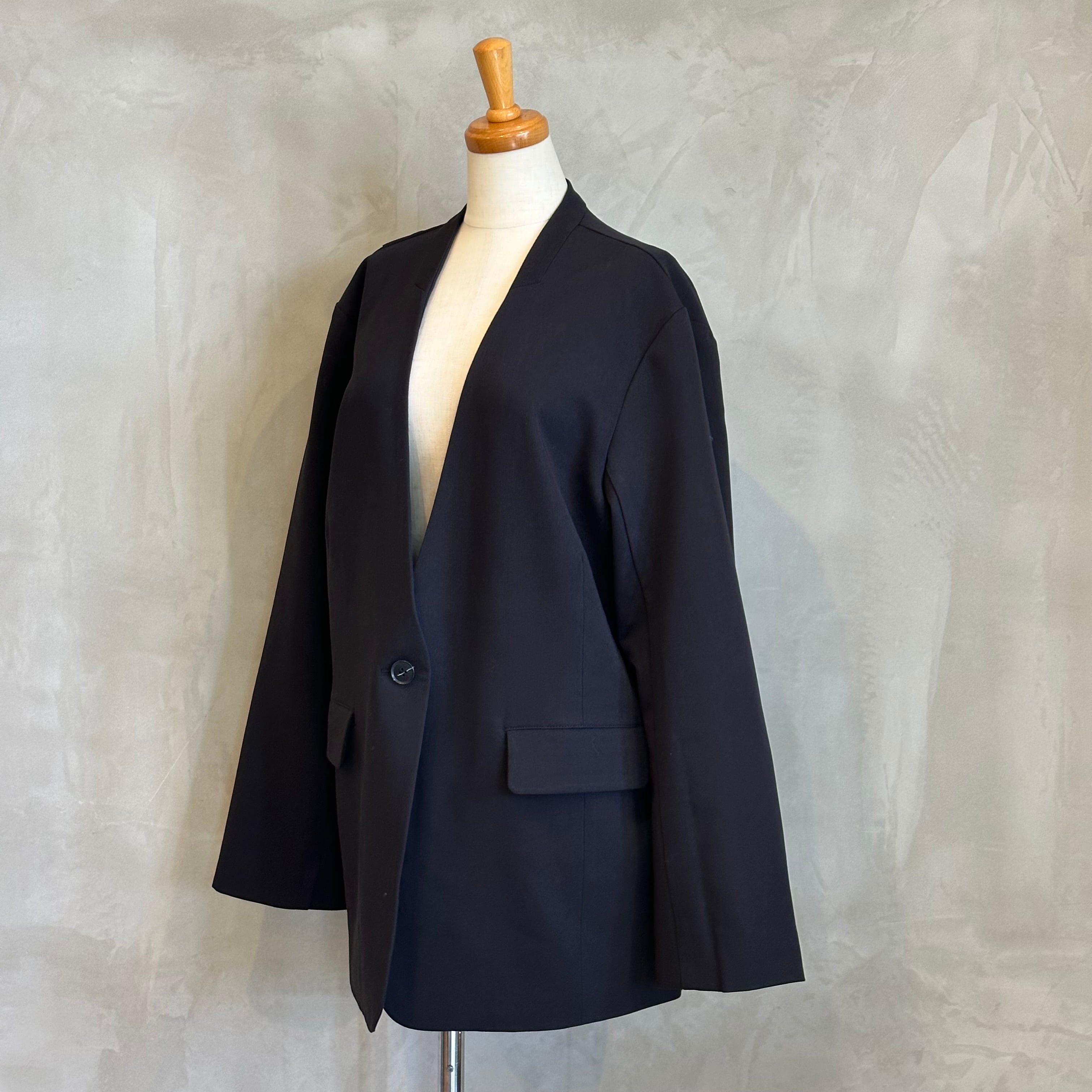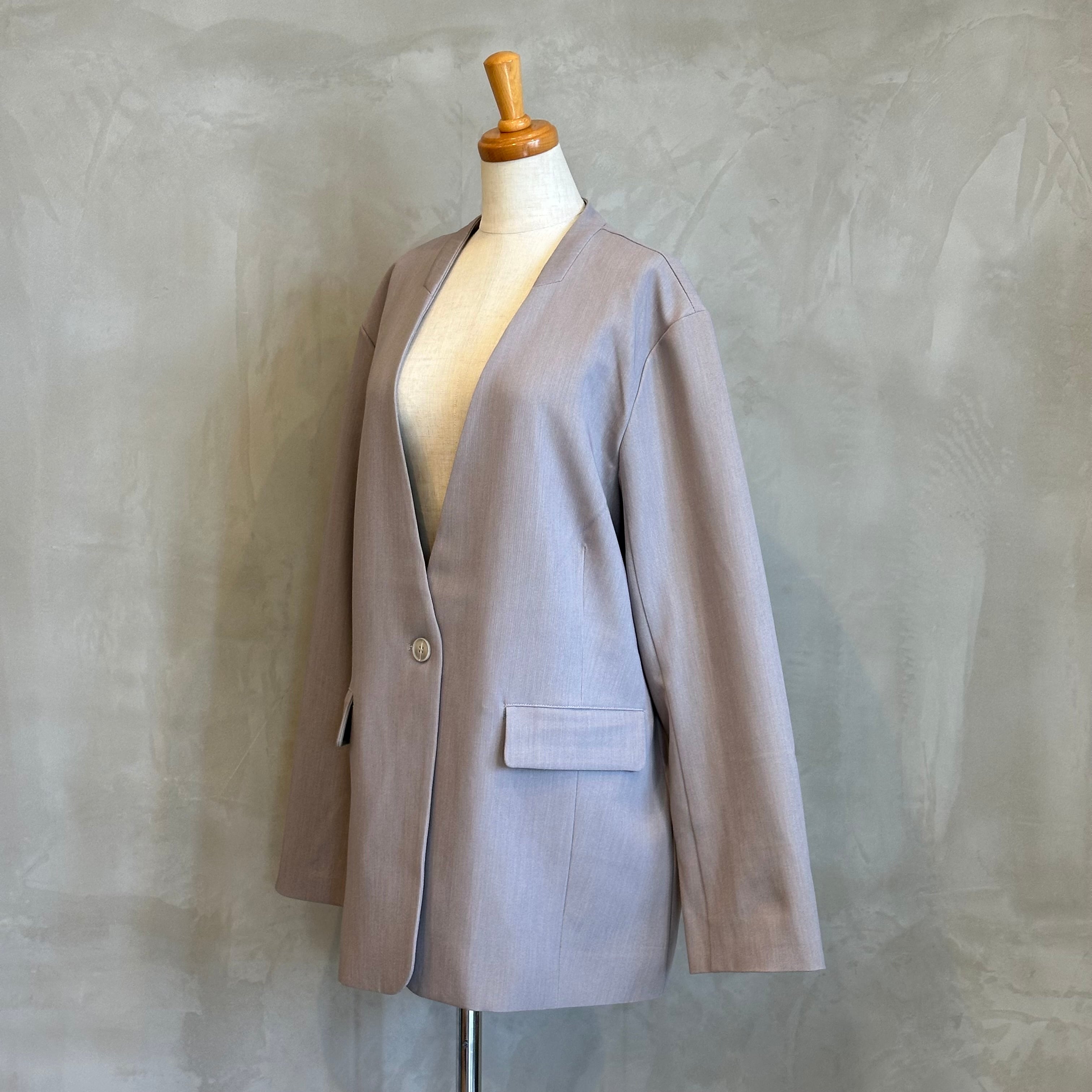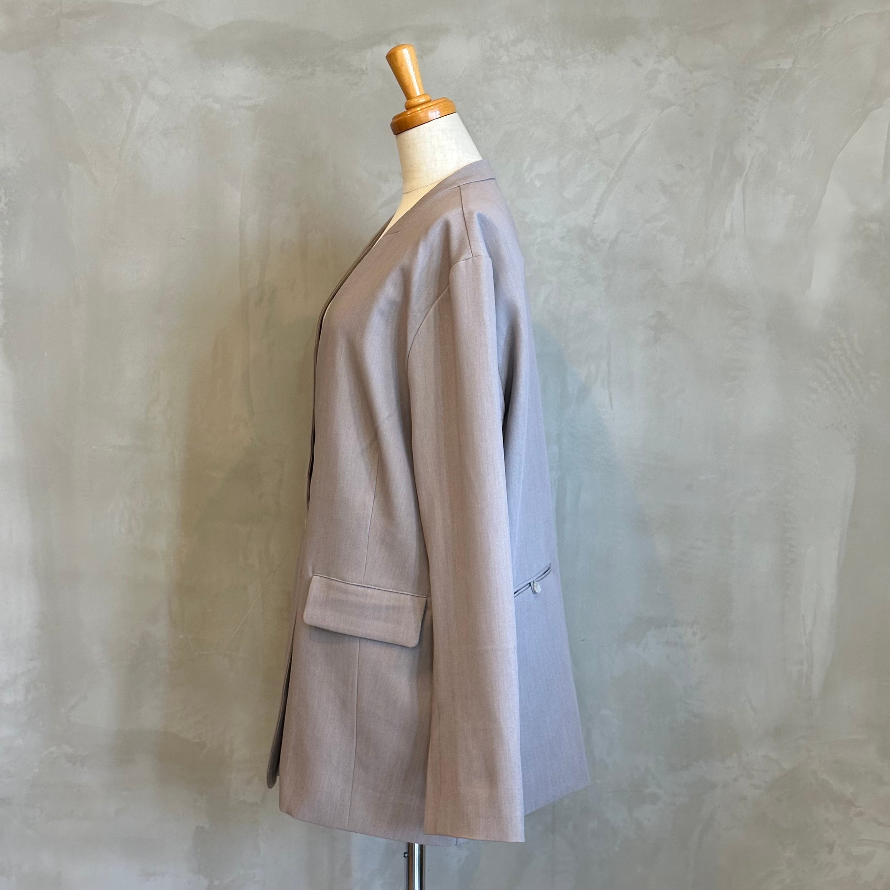 バックスリットとポケットがポイントのモード感あるノーカラージャケット。