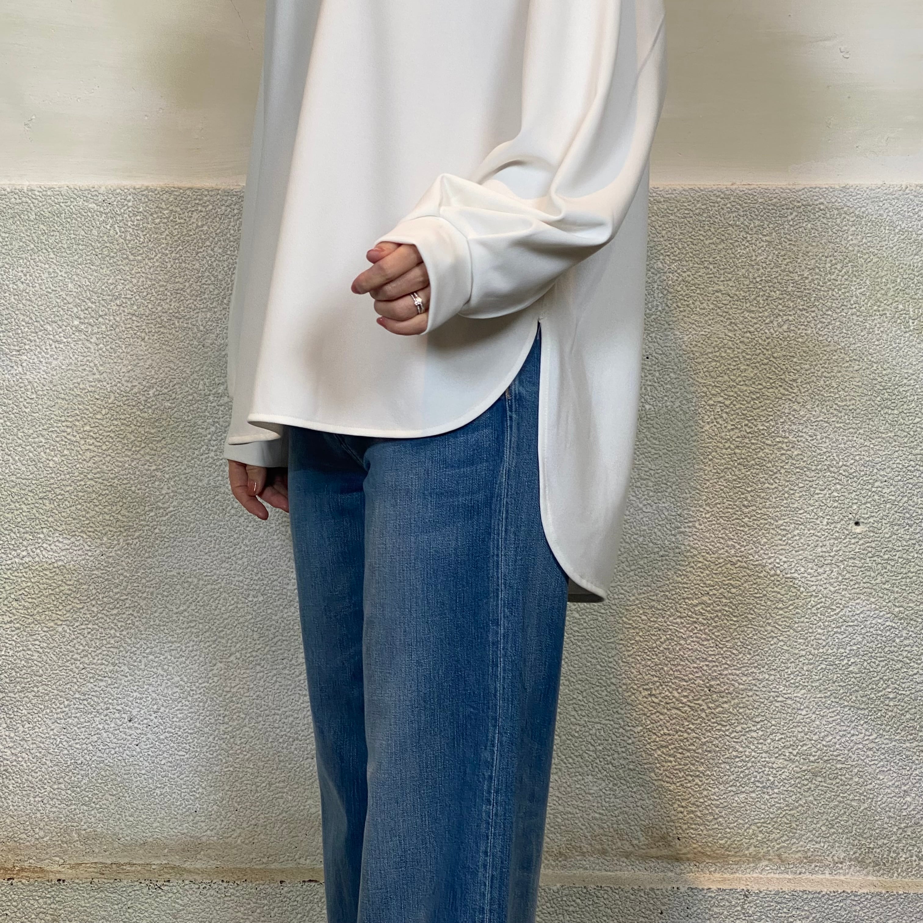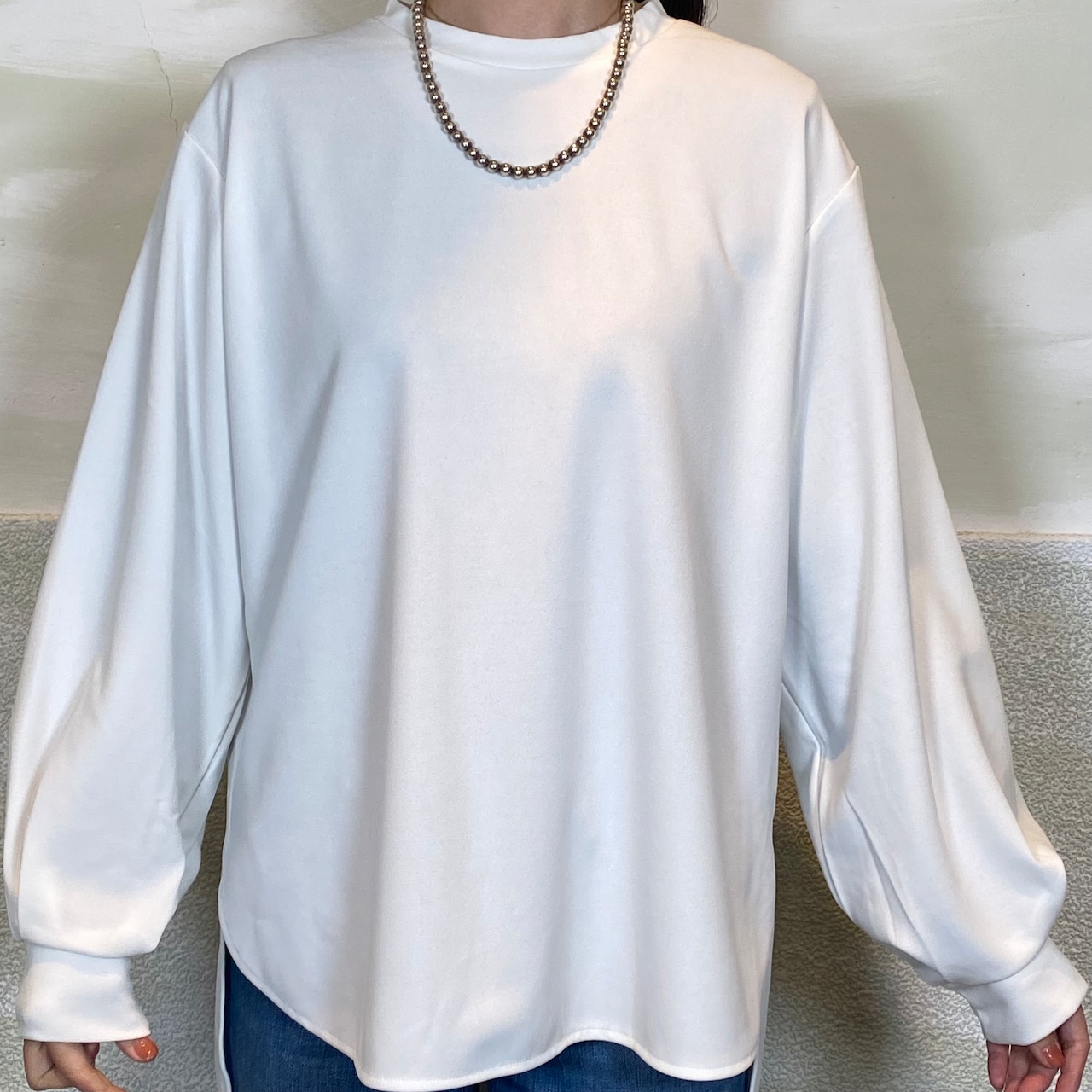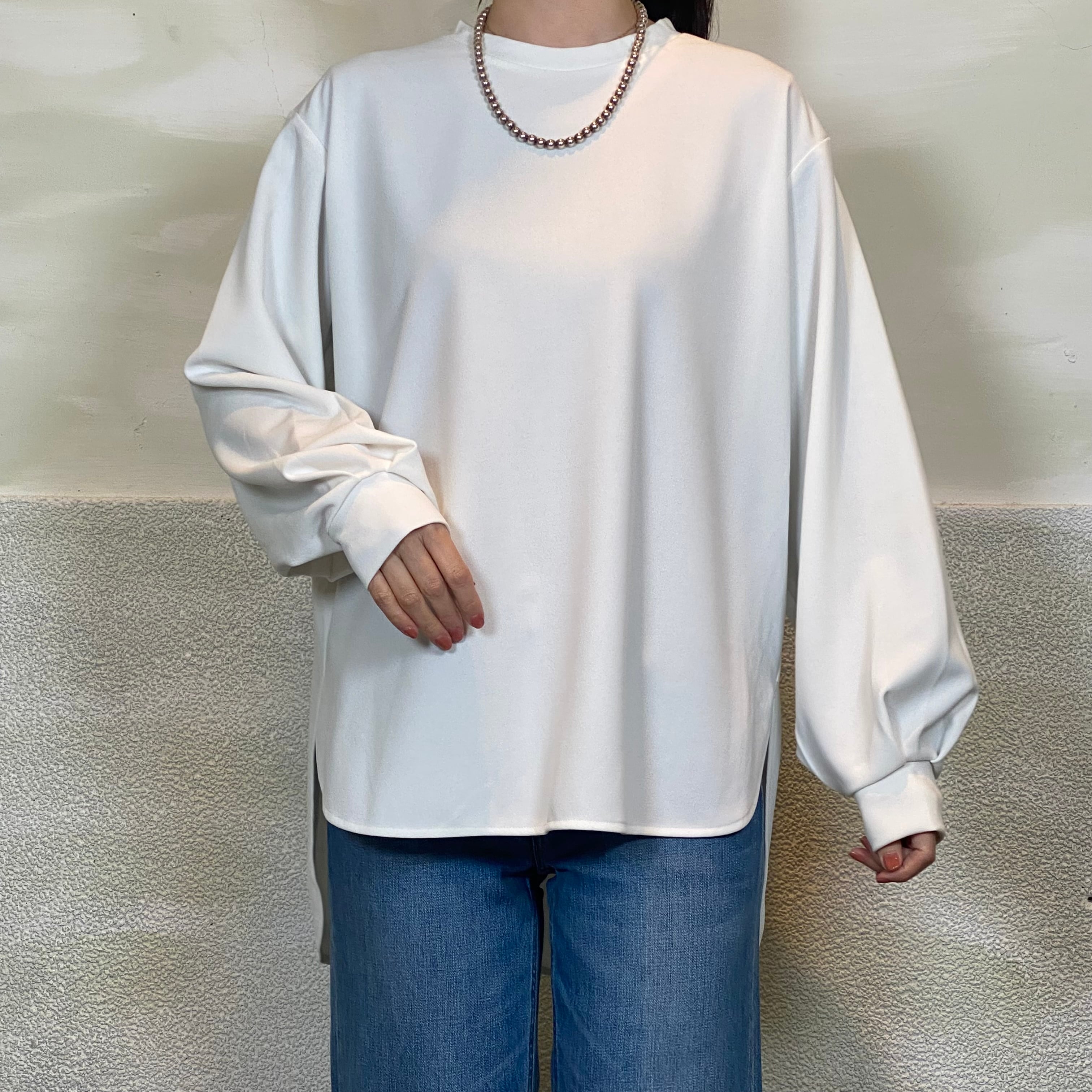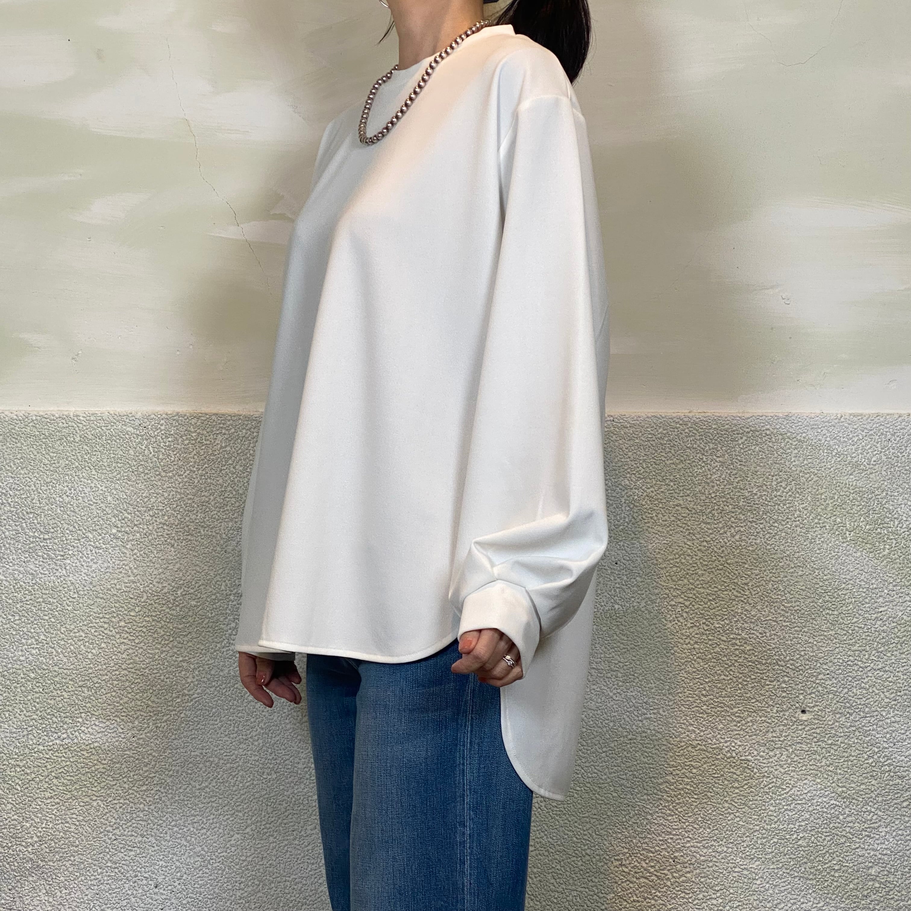 ◆ゆったりとした着心地と気になるヒップラインをカバーしてくれる着丈が着やすさのポイントのカットソー。