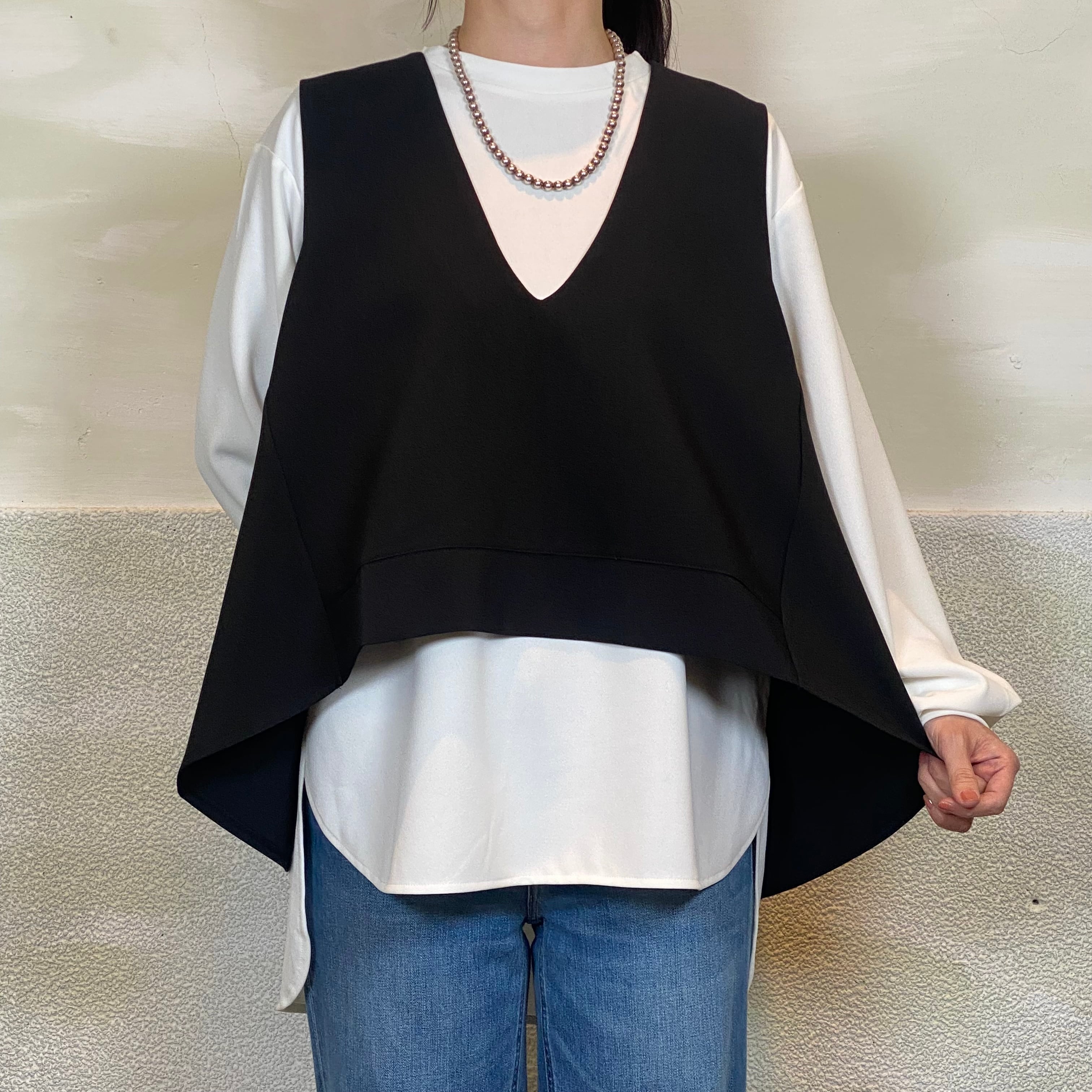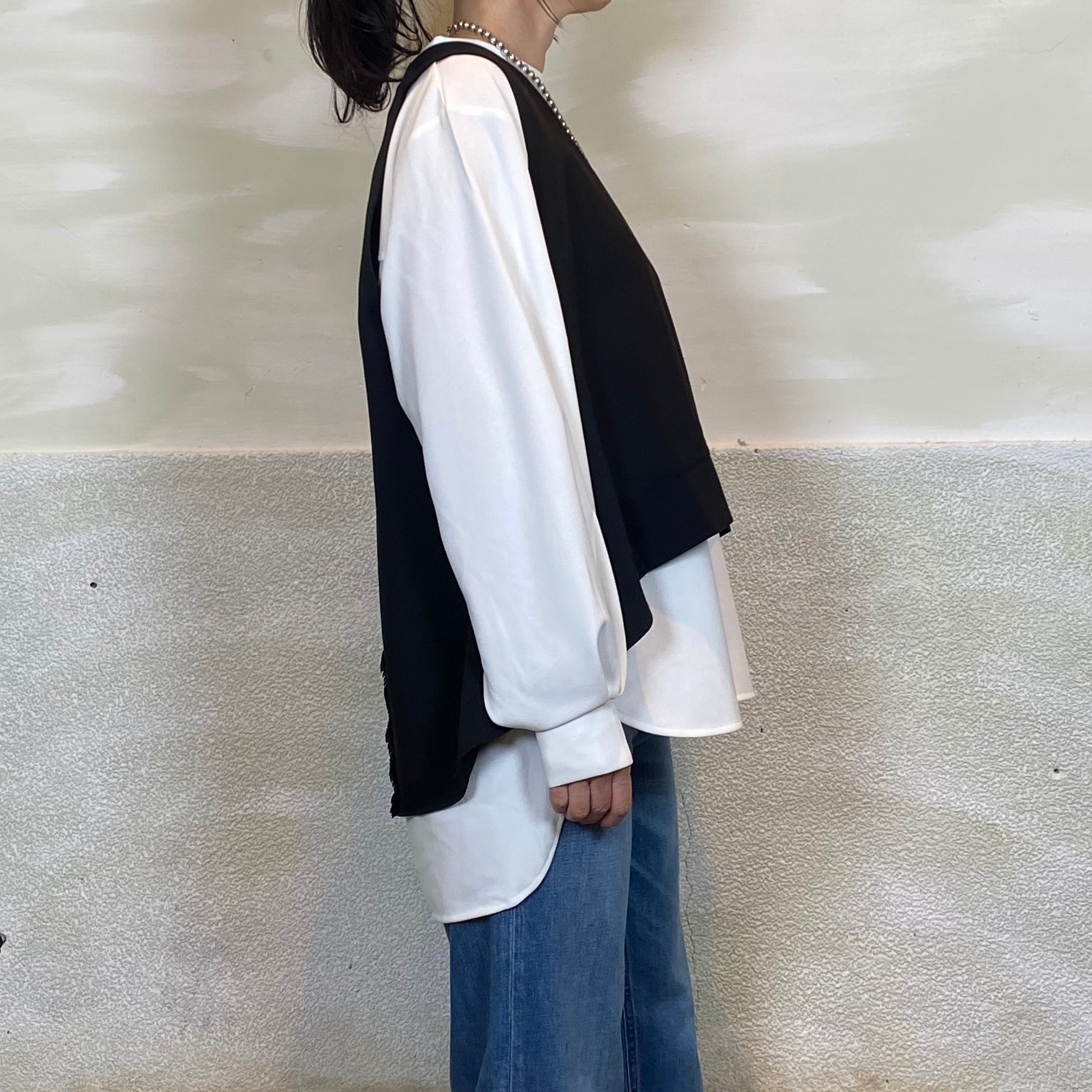 [実寸法](M〜L)身幅約58cm、着丈約67-77cm、肩幅約46.5cm、袖丈約57cm