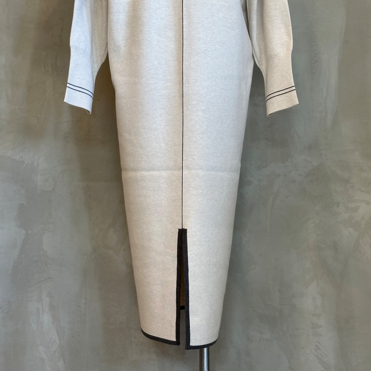すっきりとしたデザインの、やわもちヤーンニットワンピース。