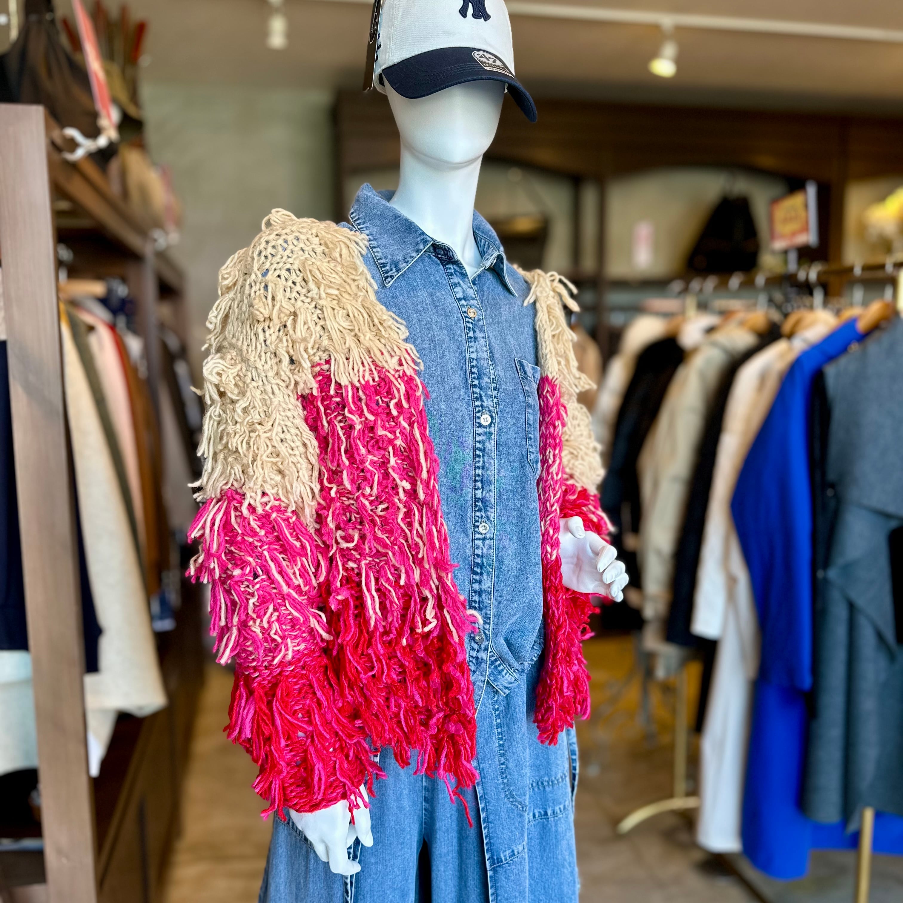 LILLY LINQUE/ハンドフリンジニットカーディガン