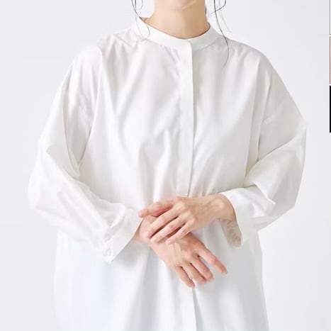 ボタン付きのジャケットと合わせてもシンプルに着こなせる1枚。