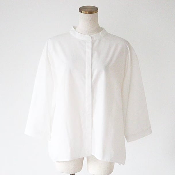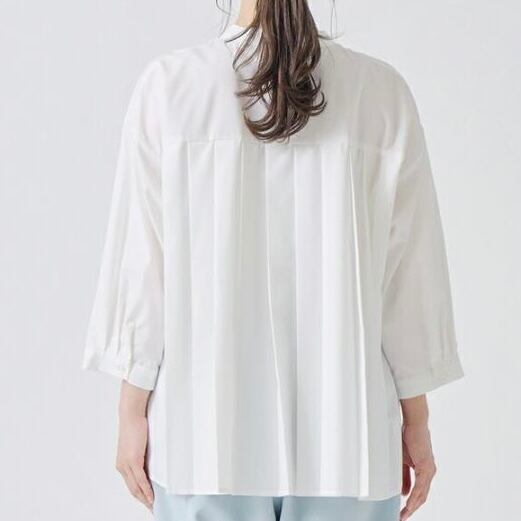 後ろ身頃にはプリーツが施されたボックスシルエットで