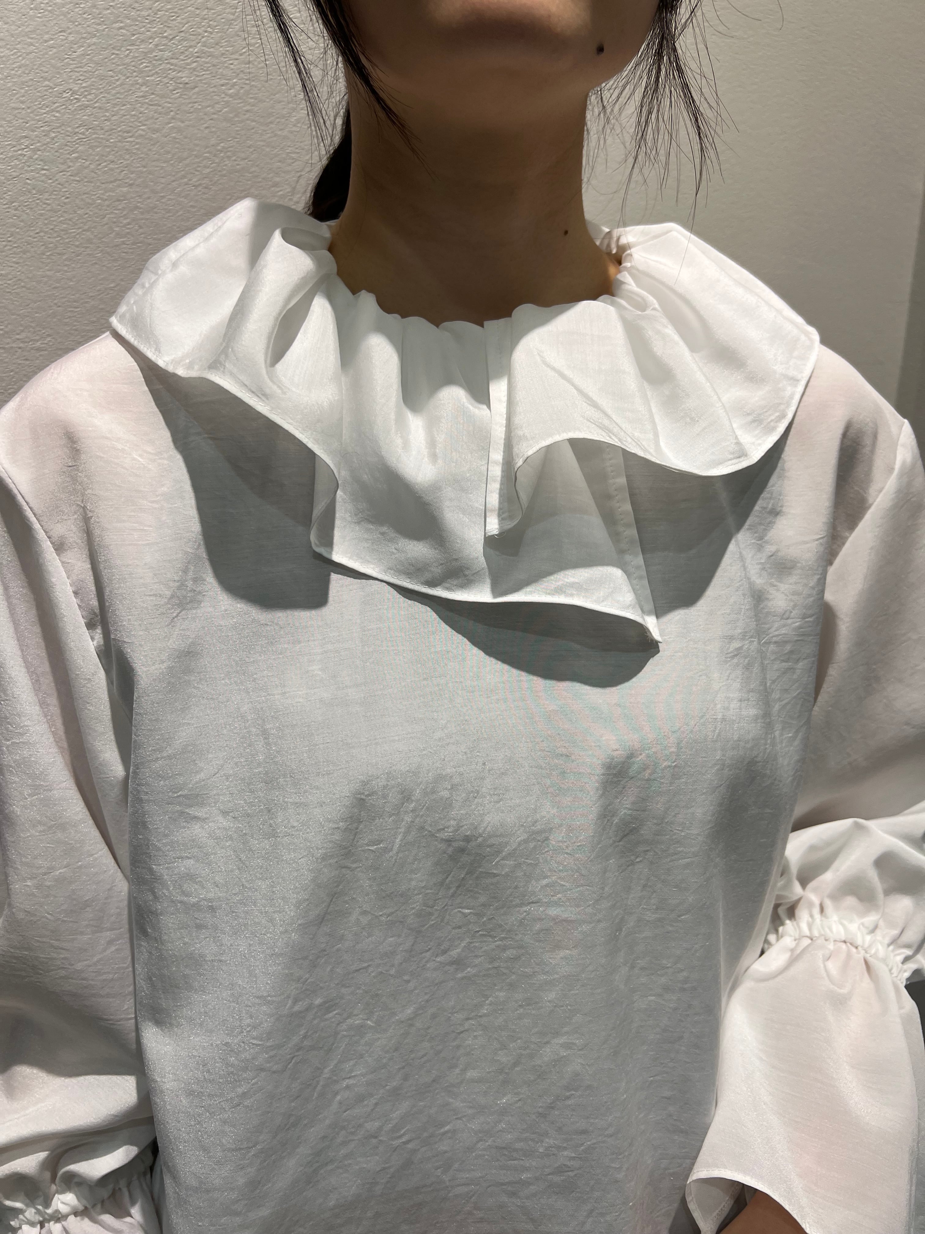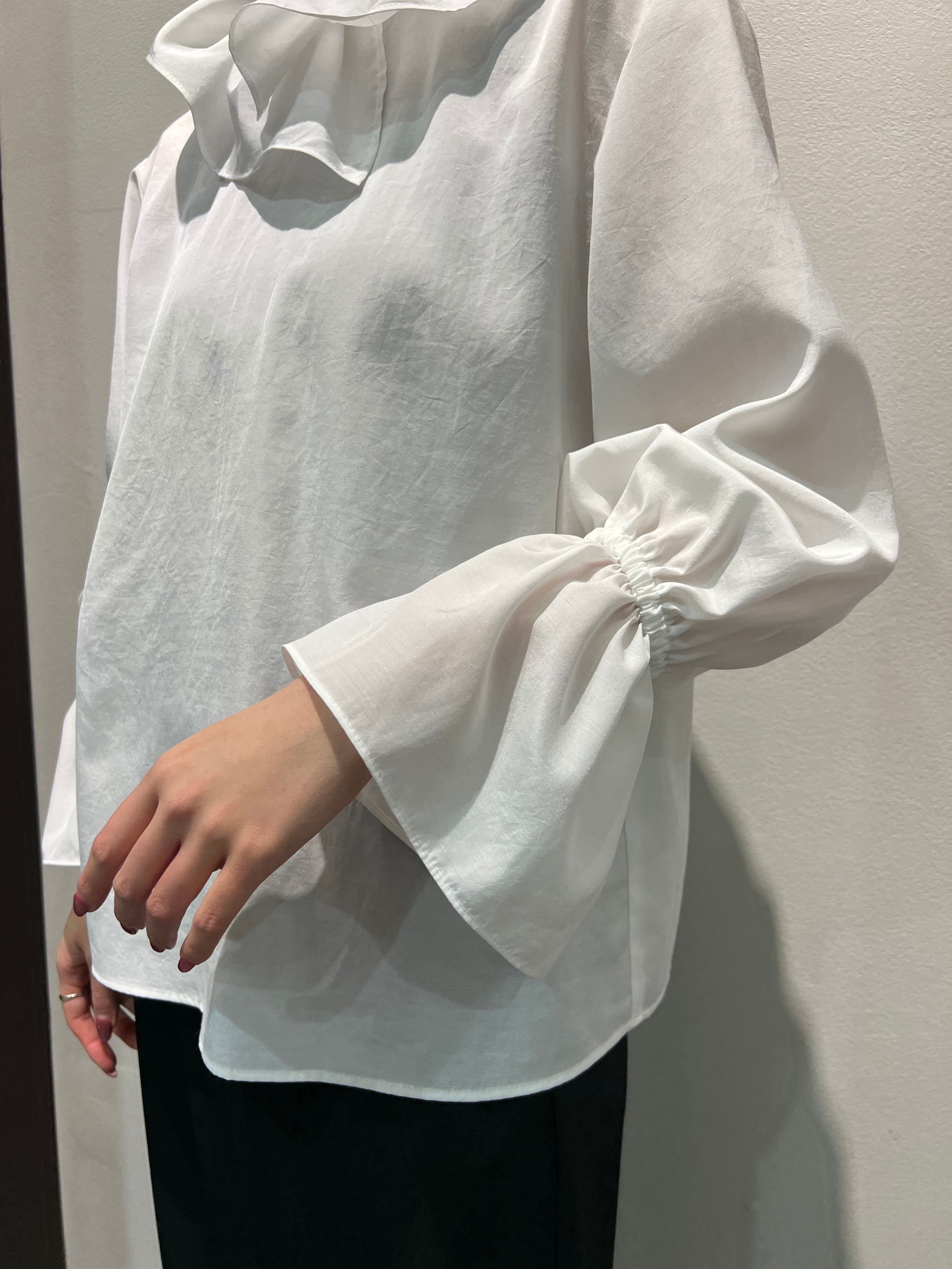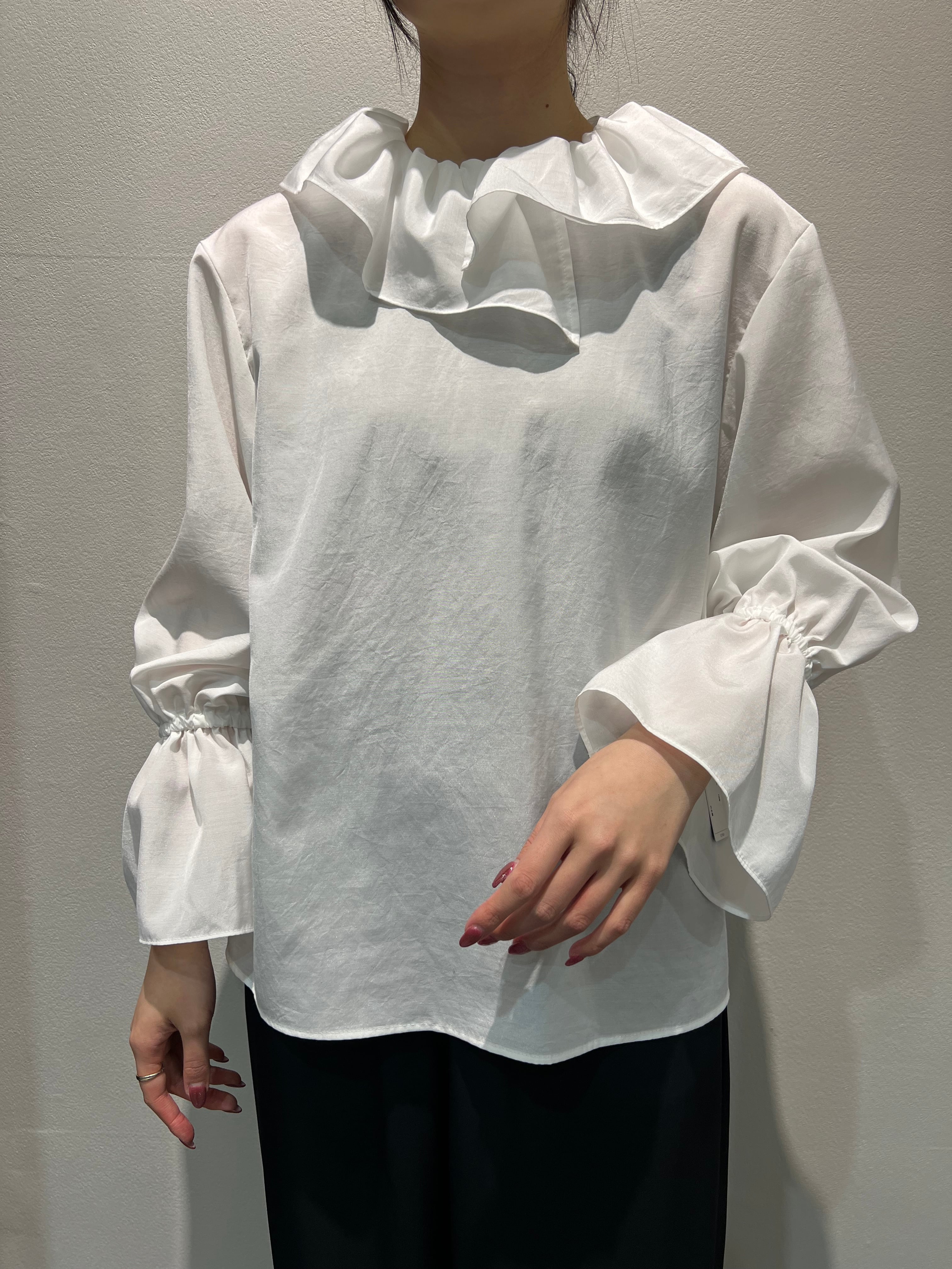 襟フリルブラウスは、シンプルながら華やかな襟フリルが特徴のアイテム。