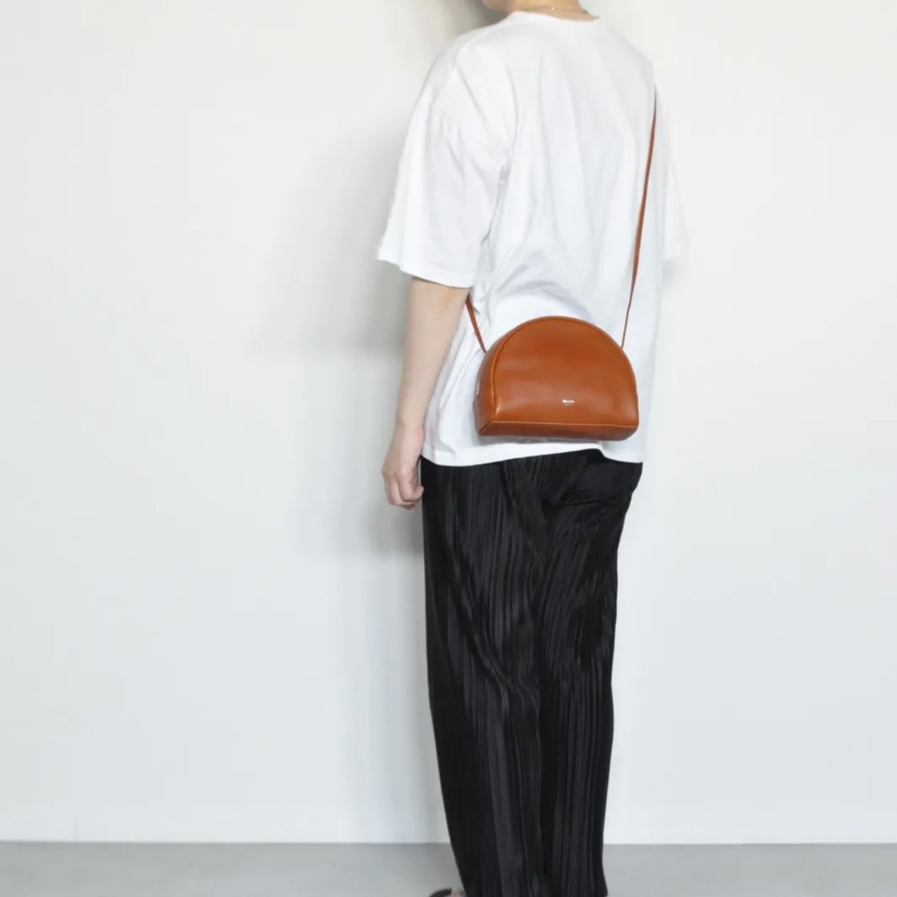 オイルドスムースレザーを使用した半円型ショルダーバッグ