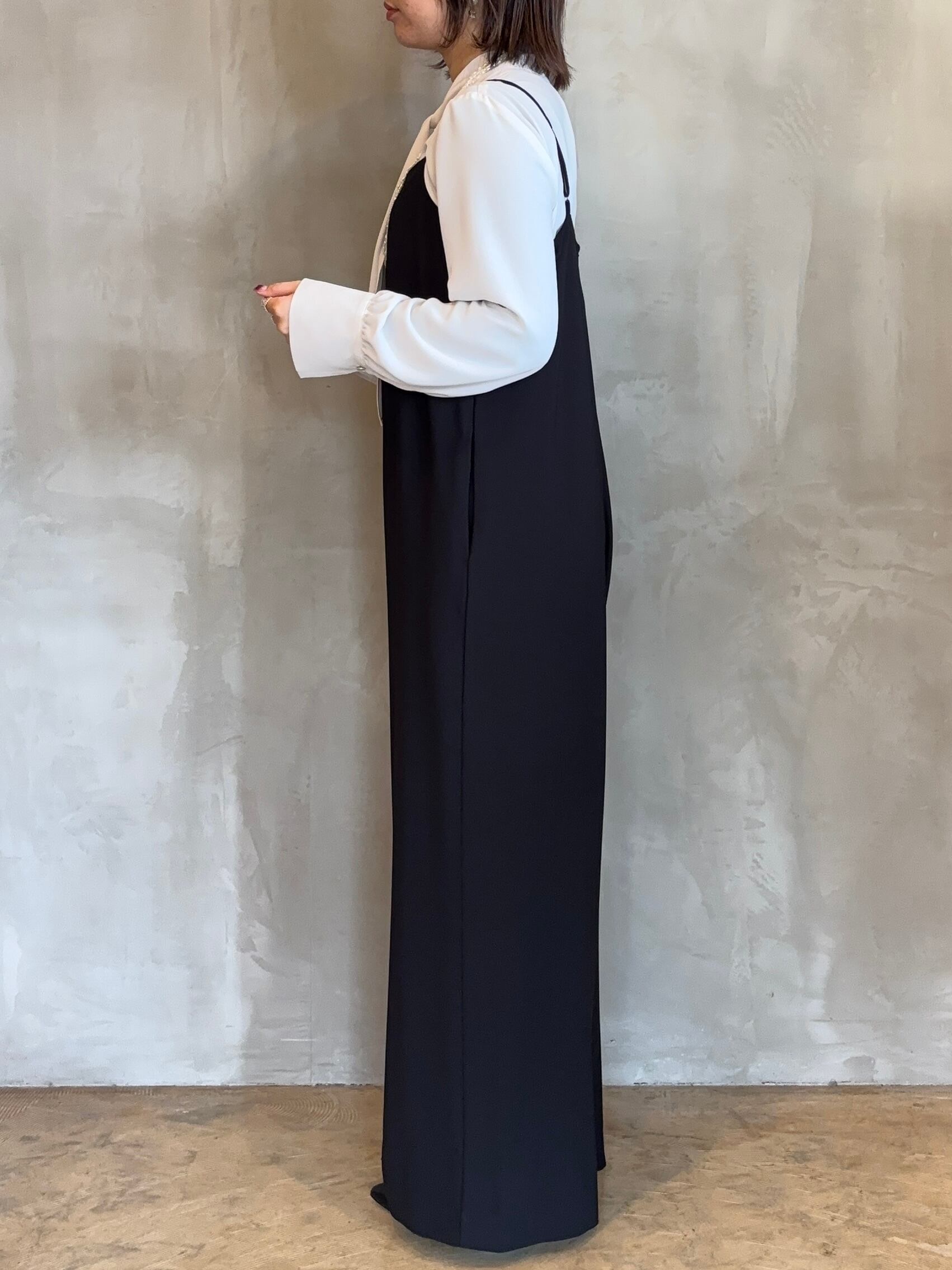 落ち感の美しい伸縮性のある素材を使用した、すっきりと大人な印象のキレイめサロペットです。