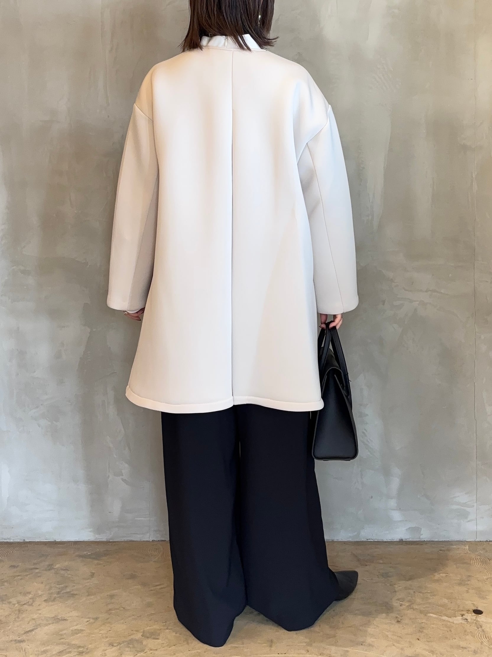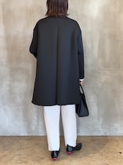 洗練されたシルエットとヒップまで隠れるミディ丈で上品な光沢感が魅力のエレガンスコート。