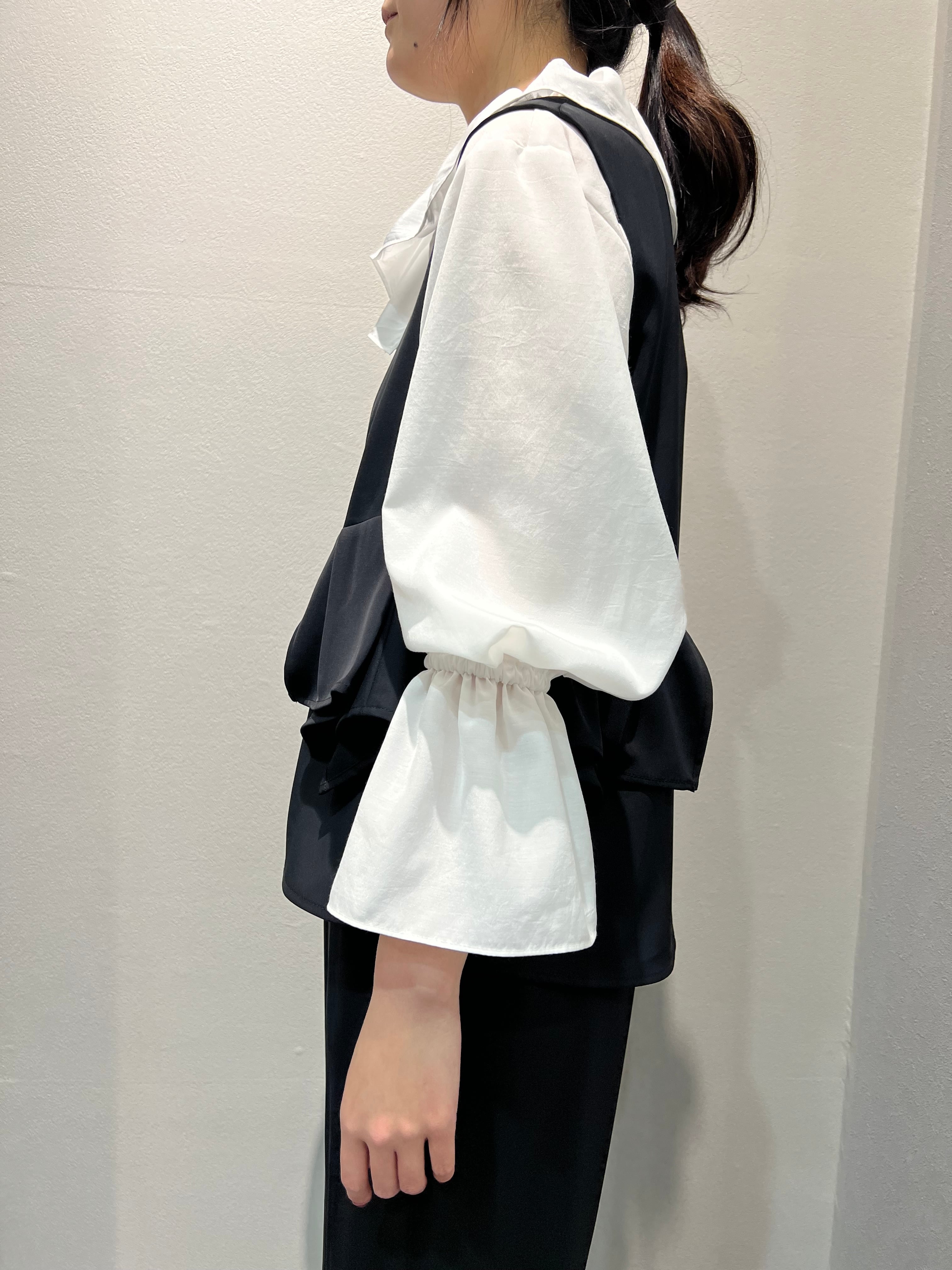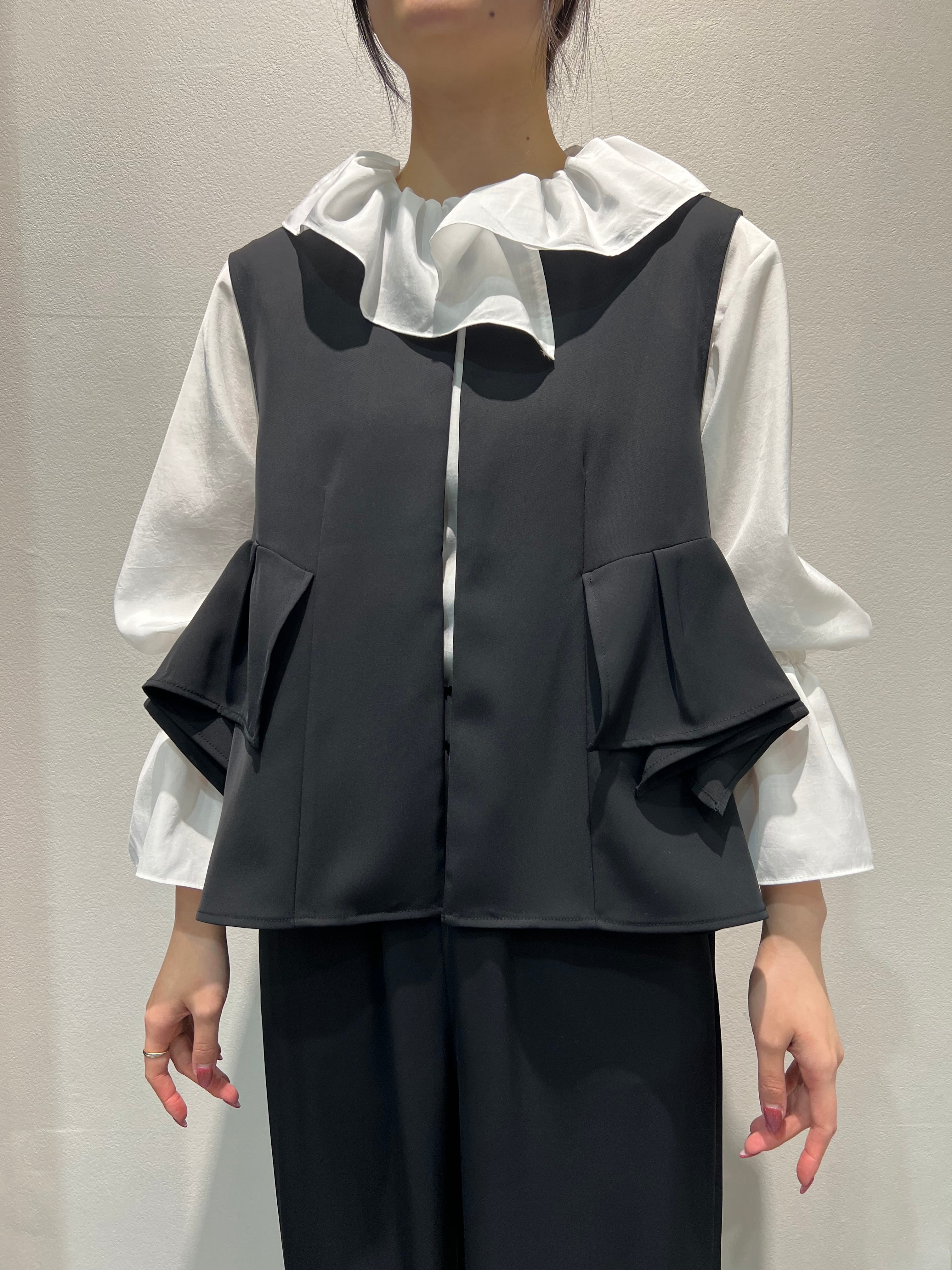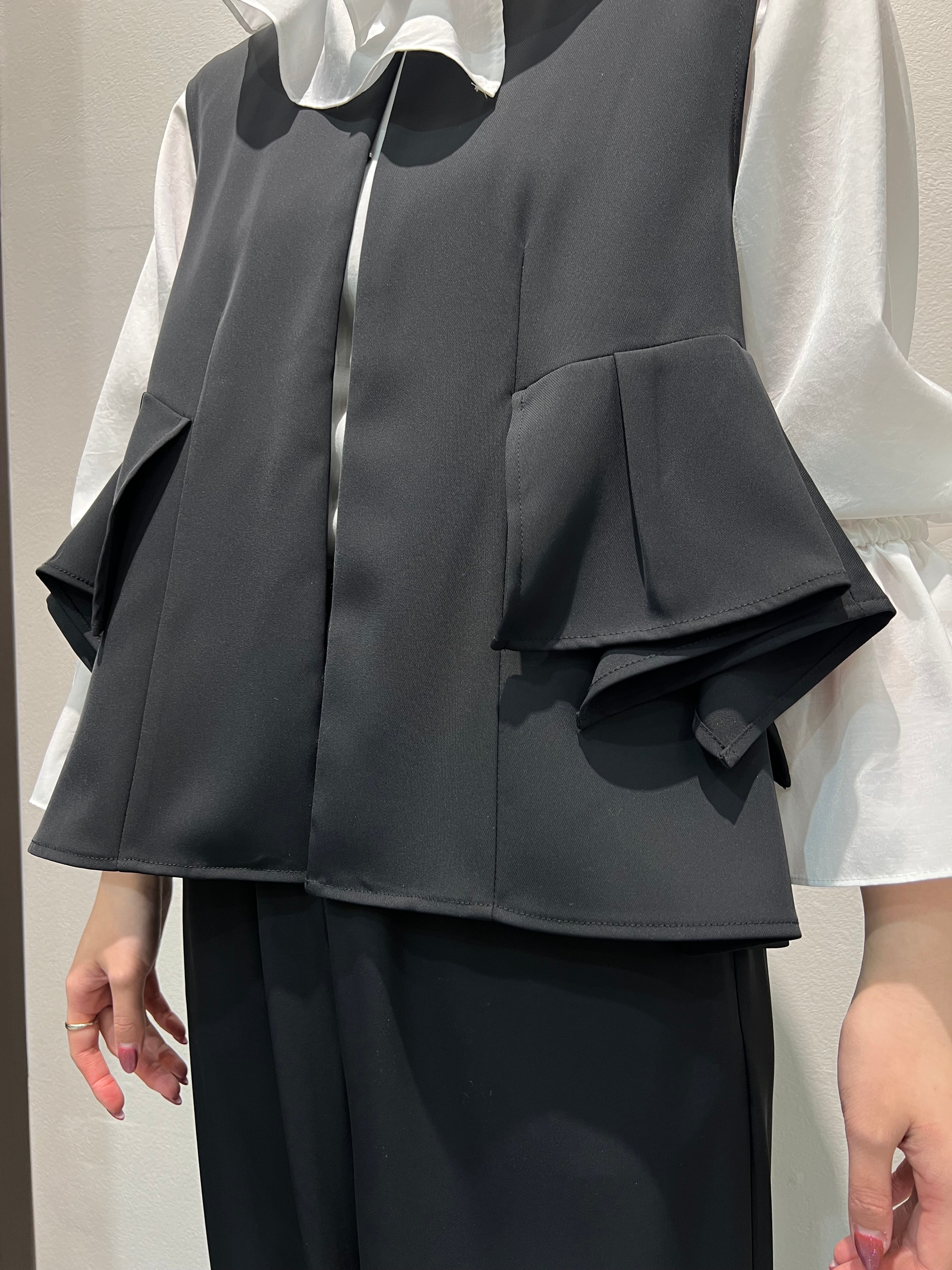 サイドフリルが折り紙のような構築的フォルムのジレ。