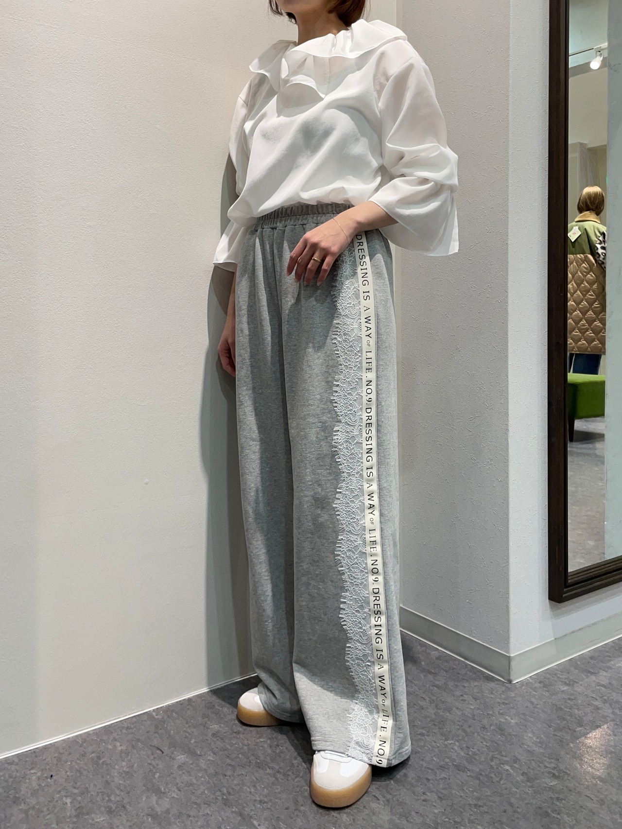 スウェットで春らしく、スポーティさと女性らしさを兼ね備えたアイテムにアップデートしています。