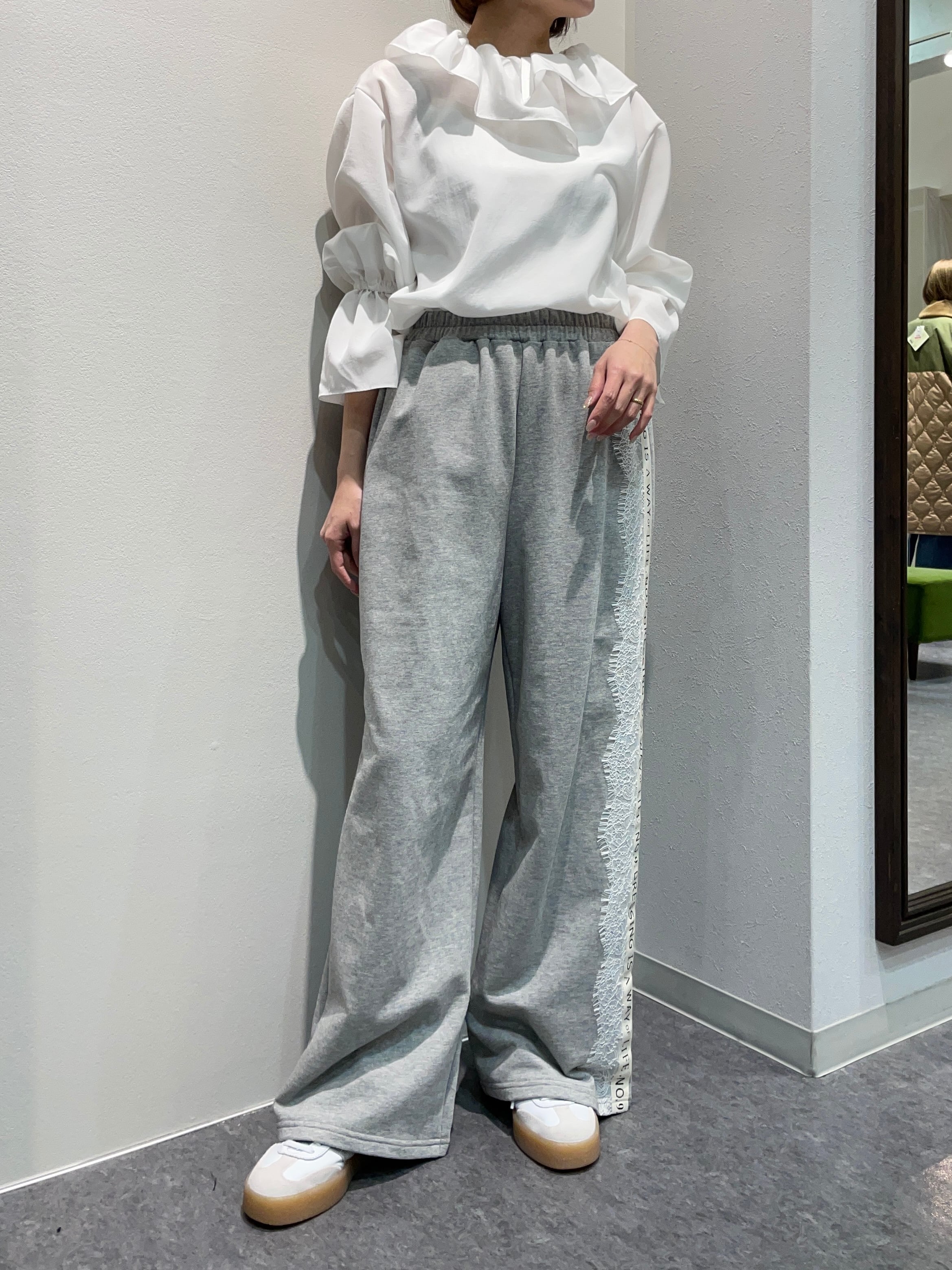 サイドラインにロゴテープとレースをあしらった人気アイテムの春バージョンが登場!