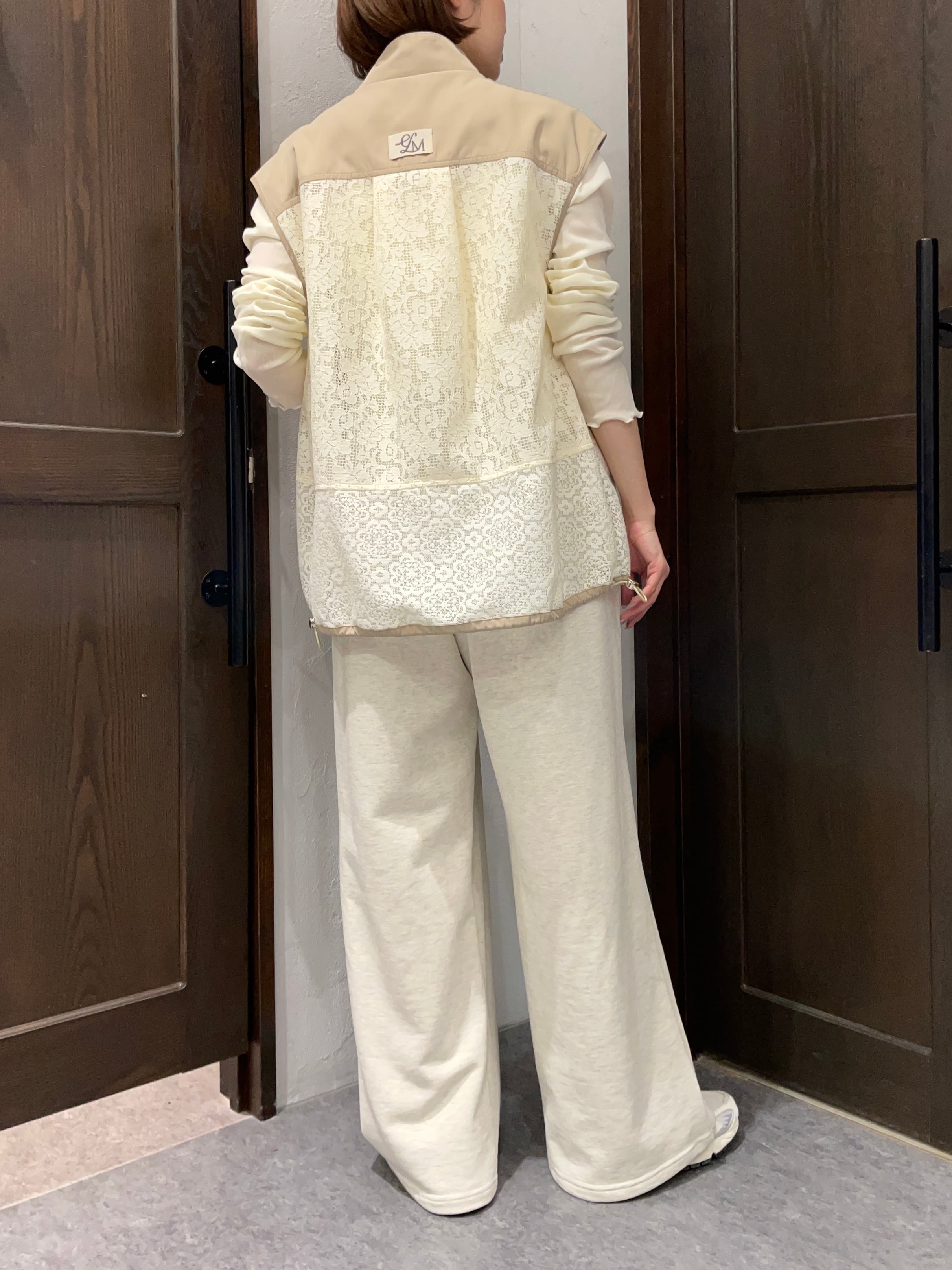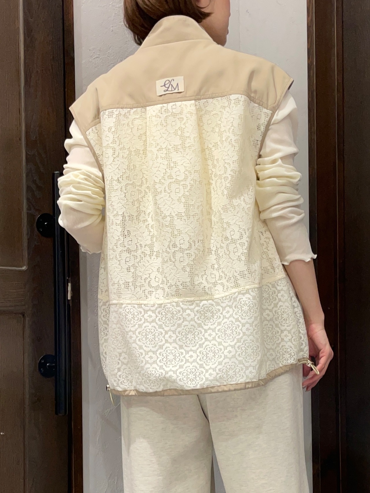 軽やかなメッシュレースを2種類使用したレースジレ。バックのポイント刺繍がアクセントになっています。