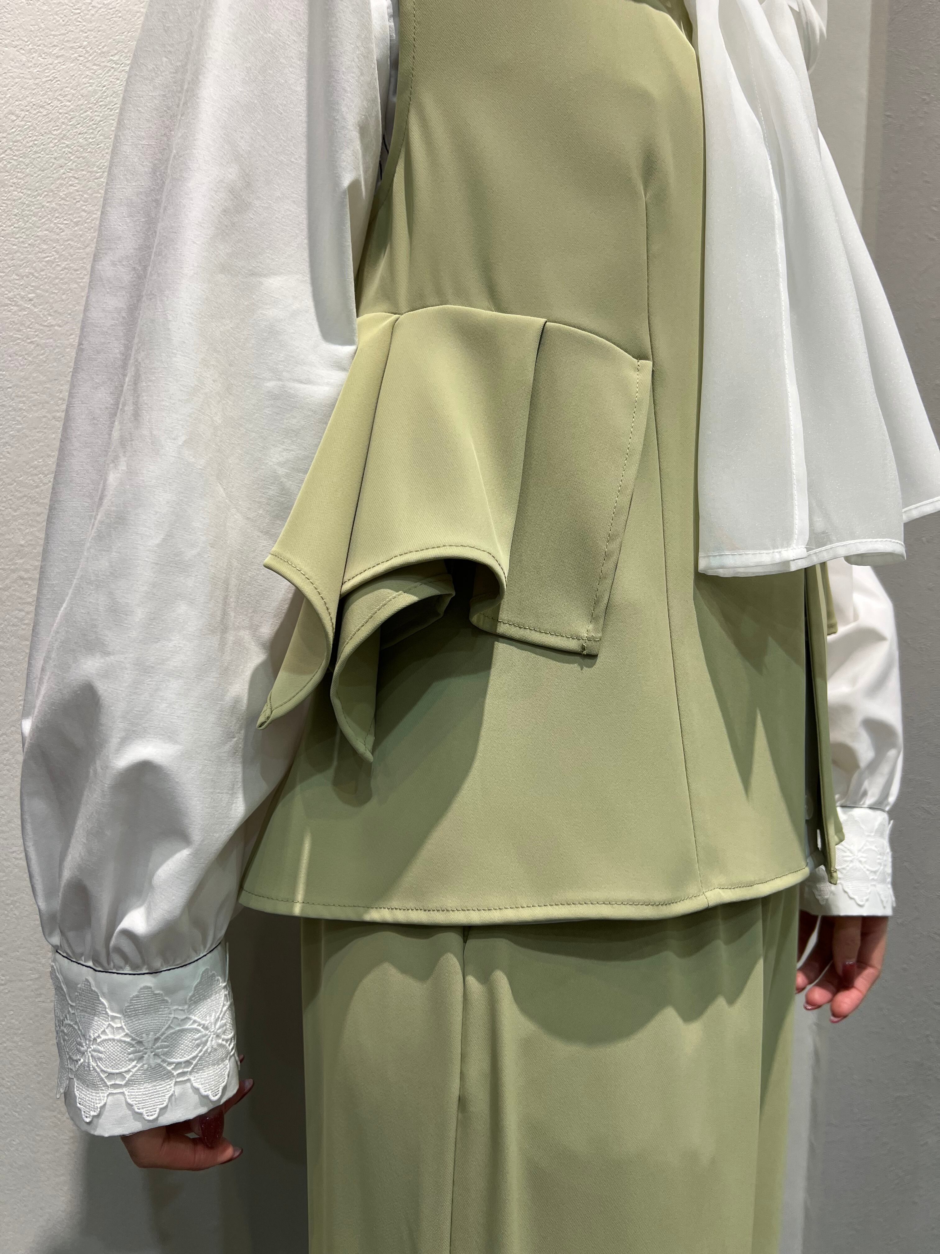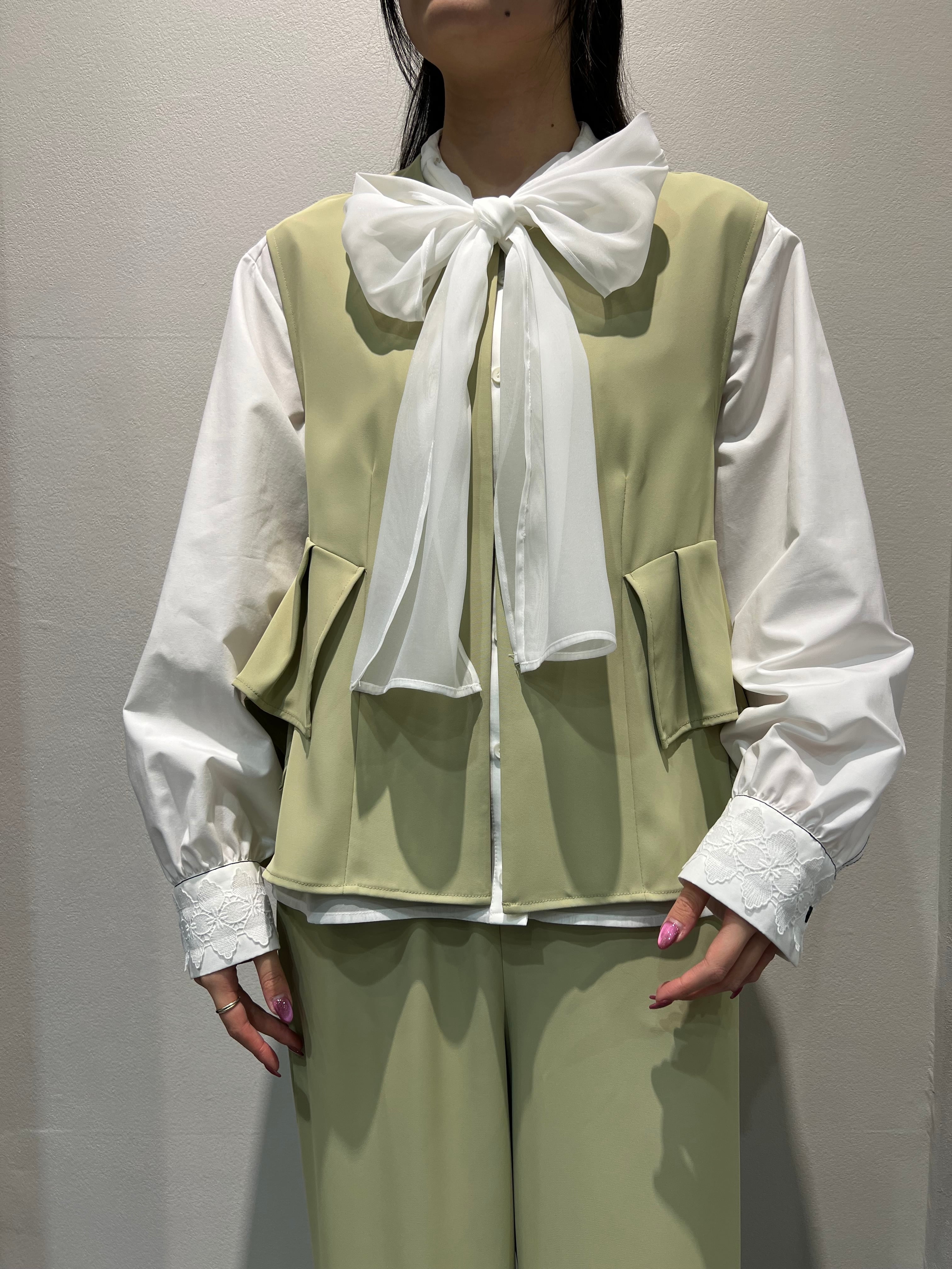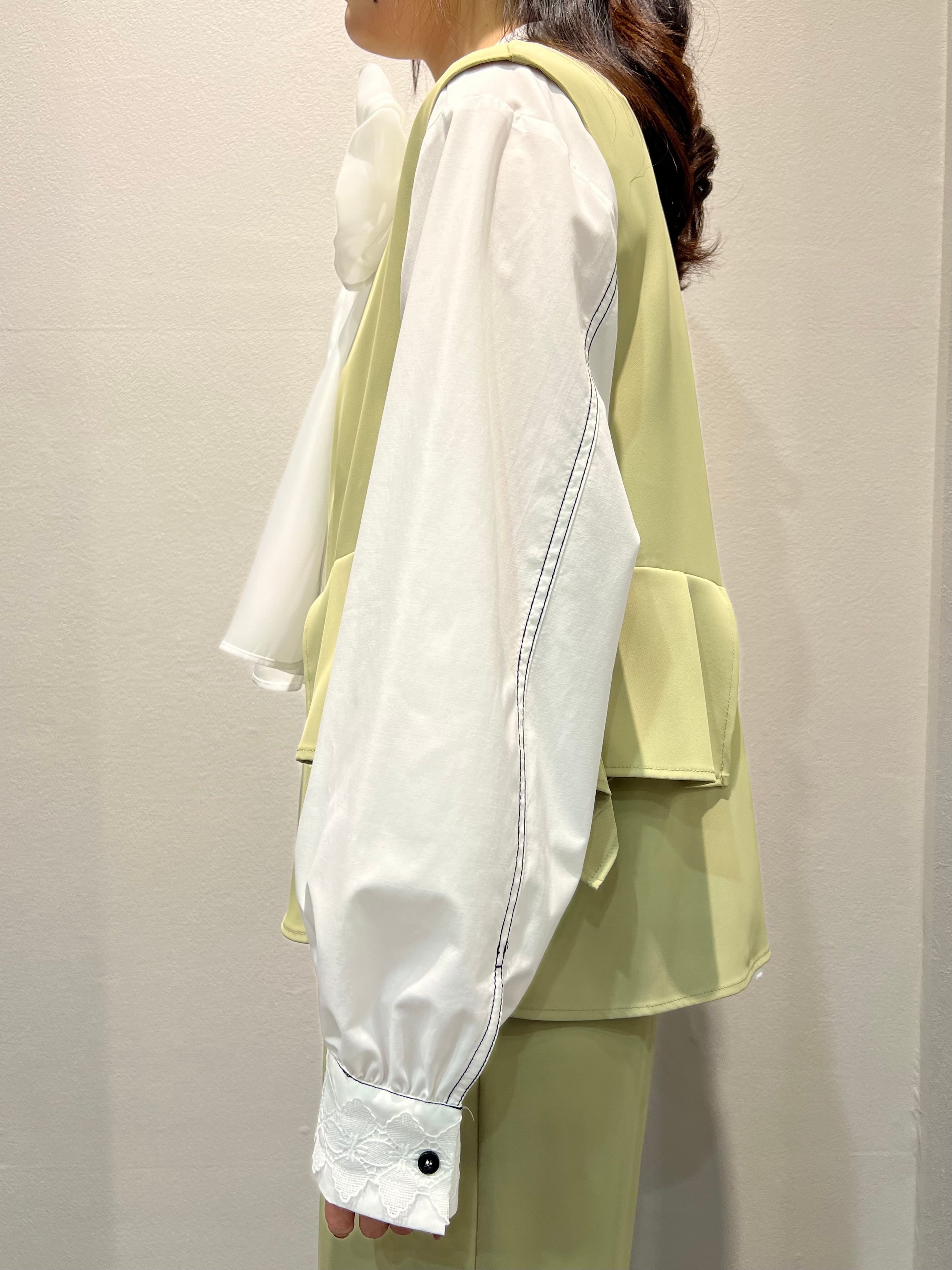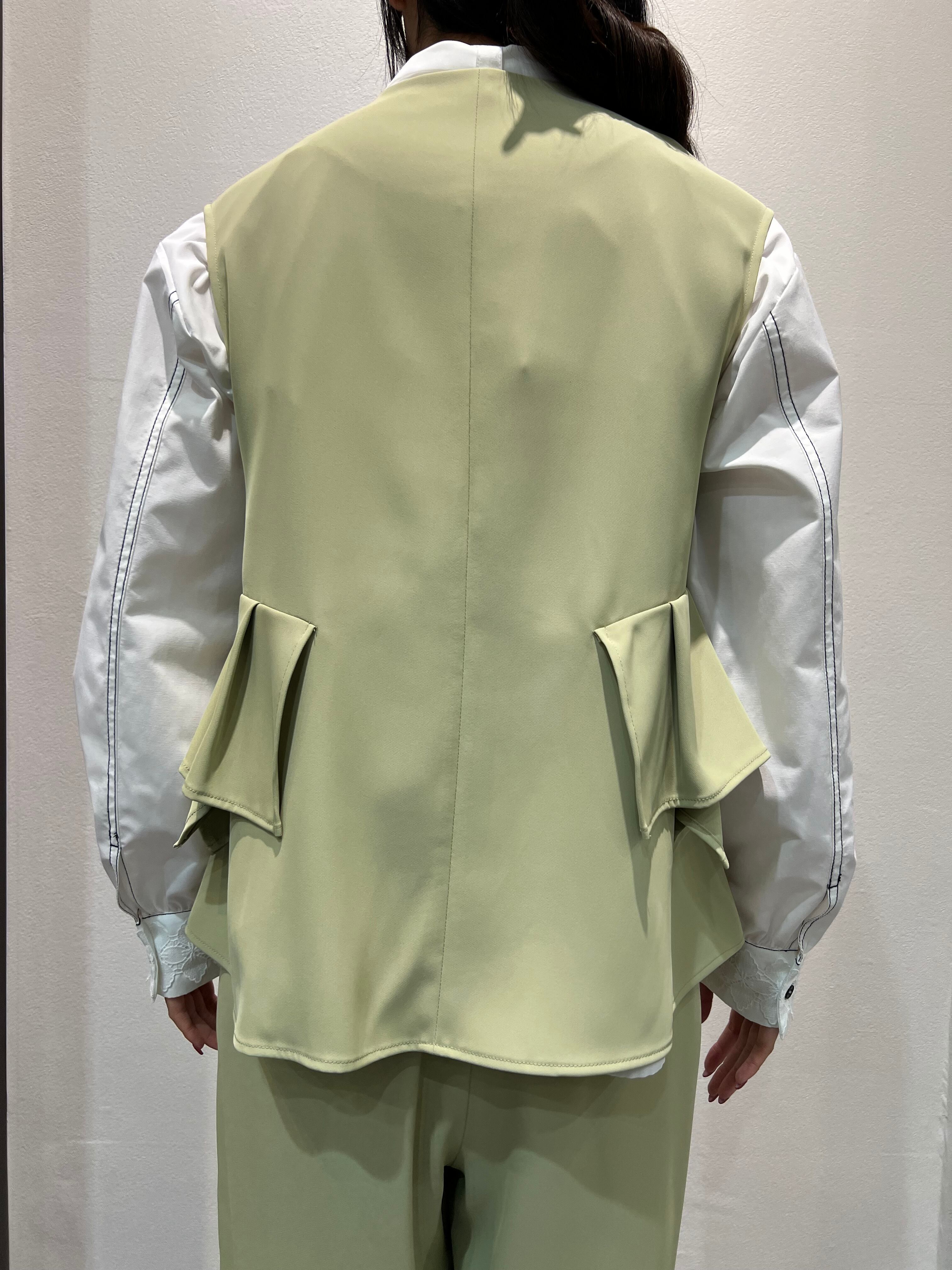 サイドフリルが折り紙のような構築的フォルムのジレ。