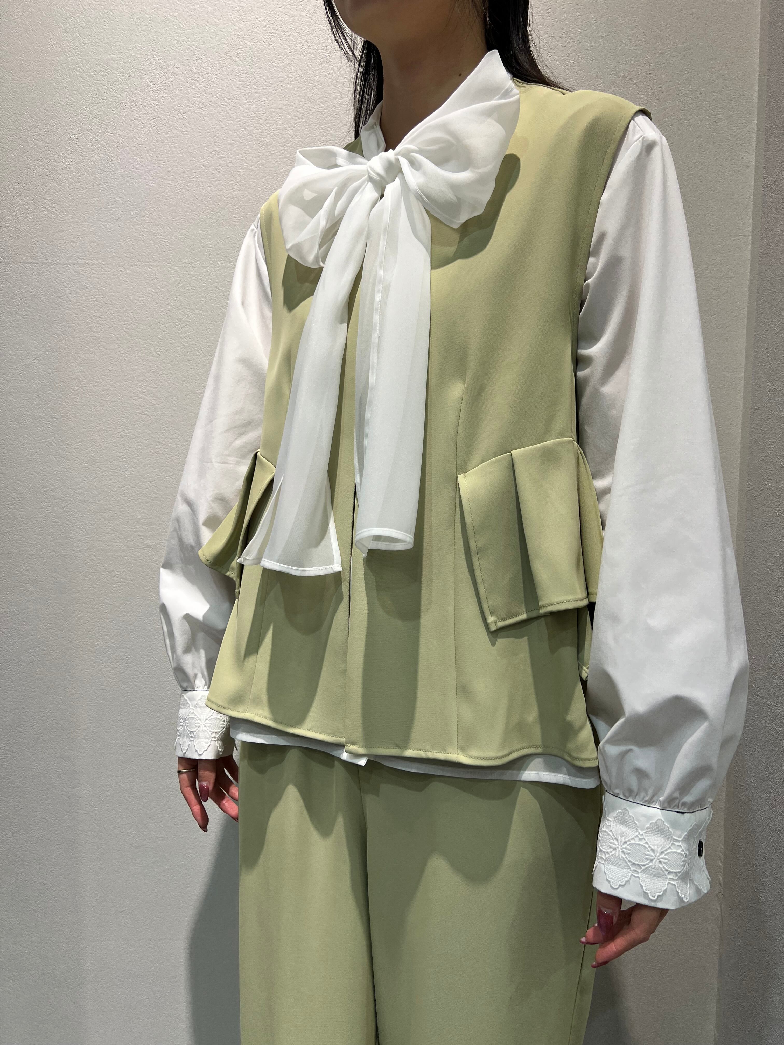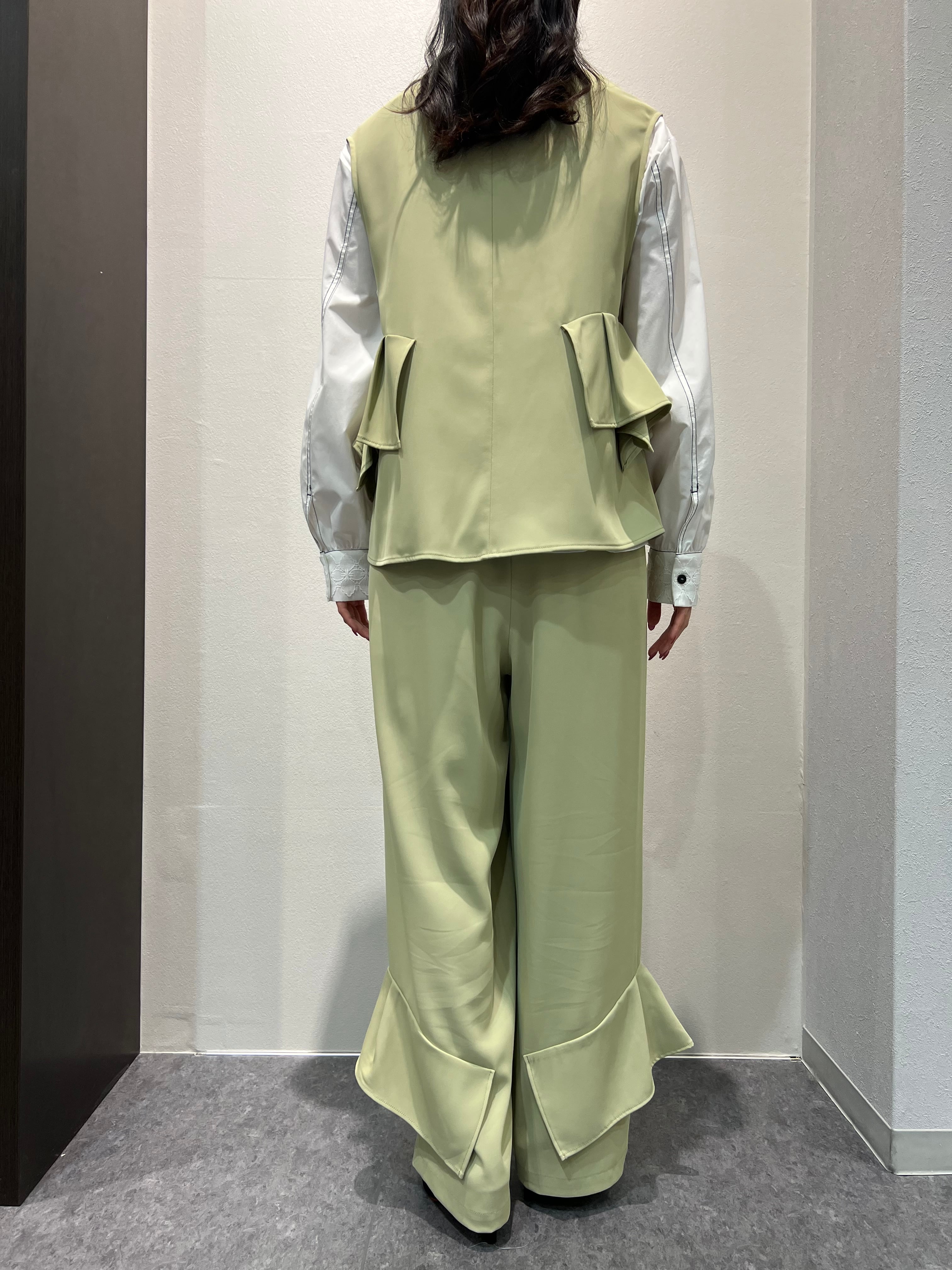 【着用ライブ】Eimee Law/折り紙フリルジレ×パンツ セットアップ【イエローベージュ】