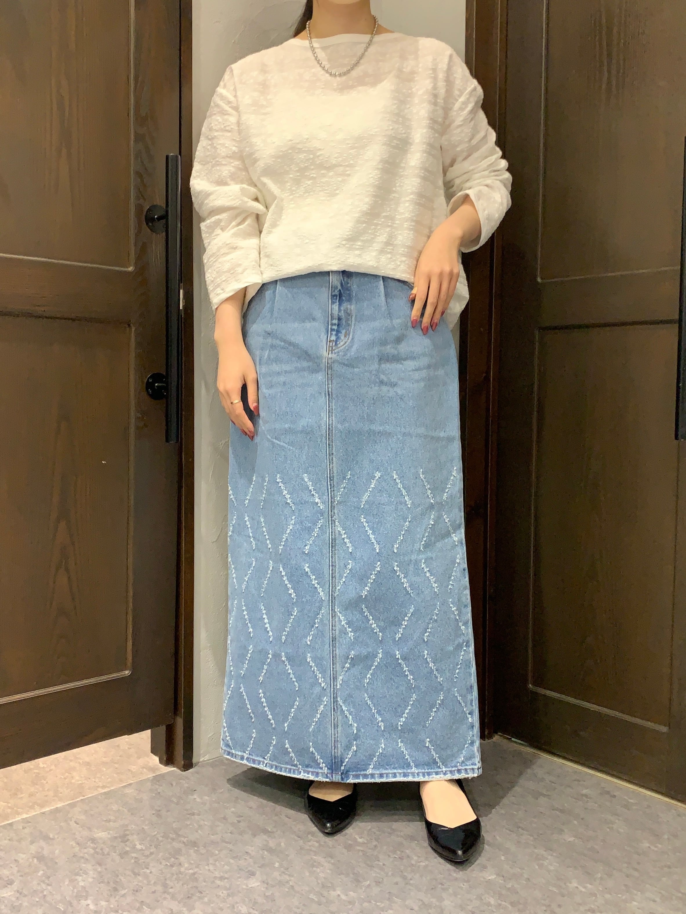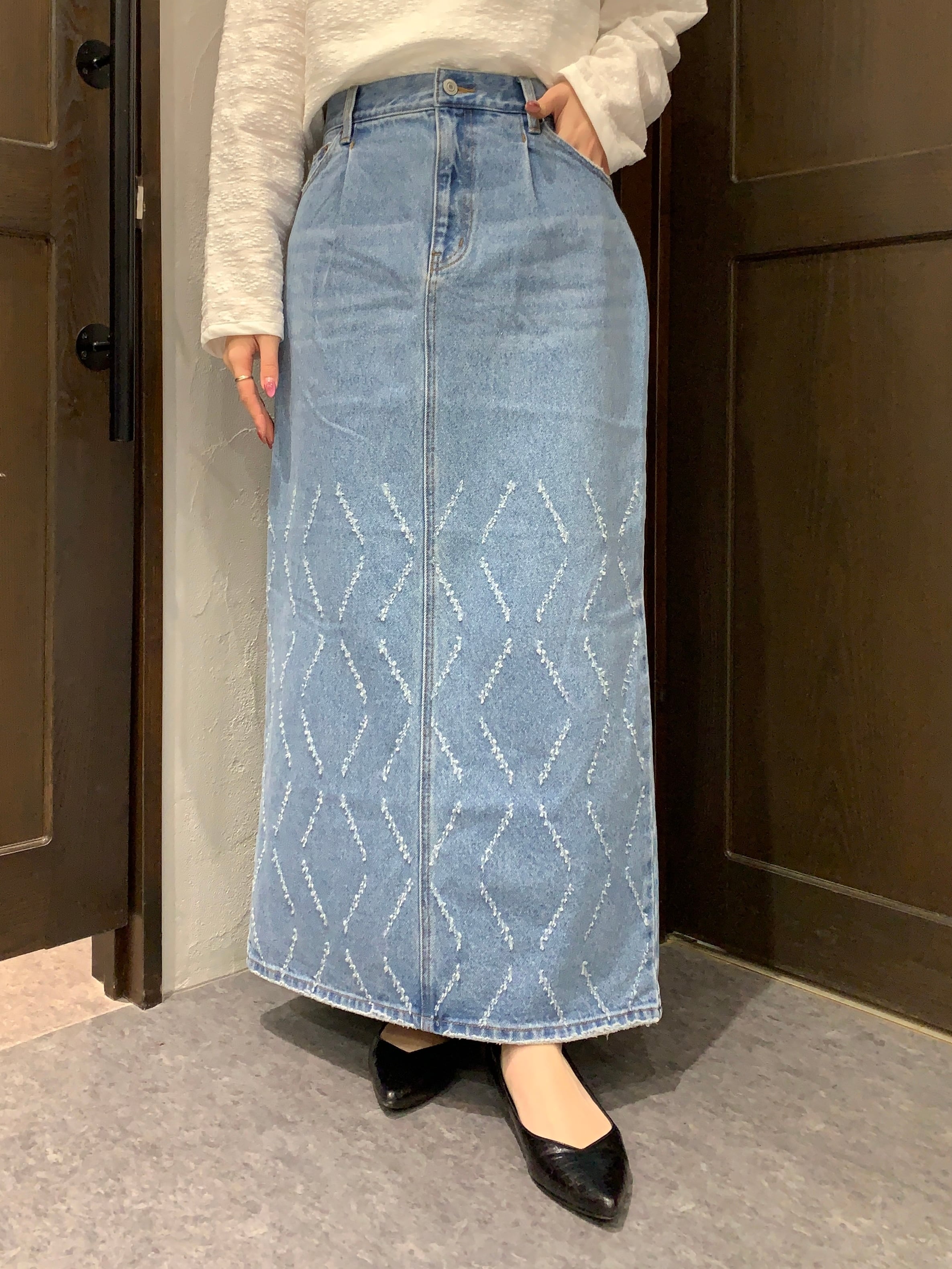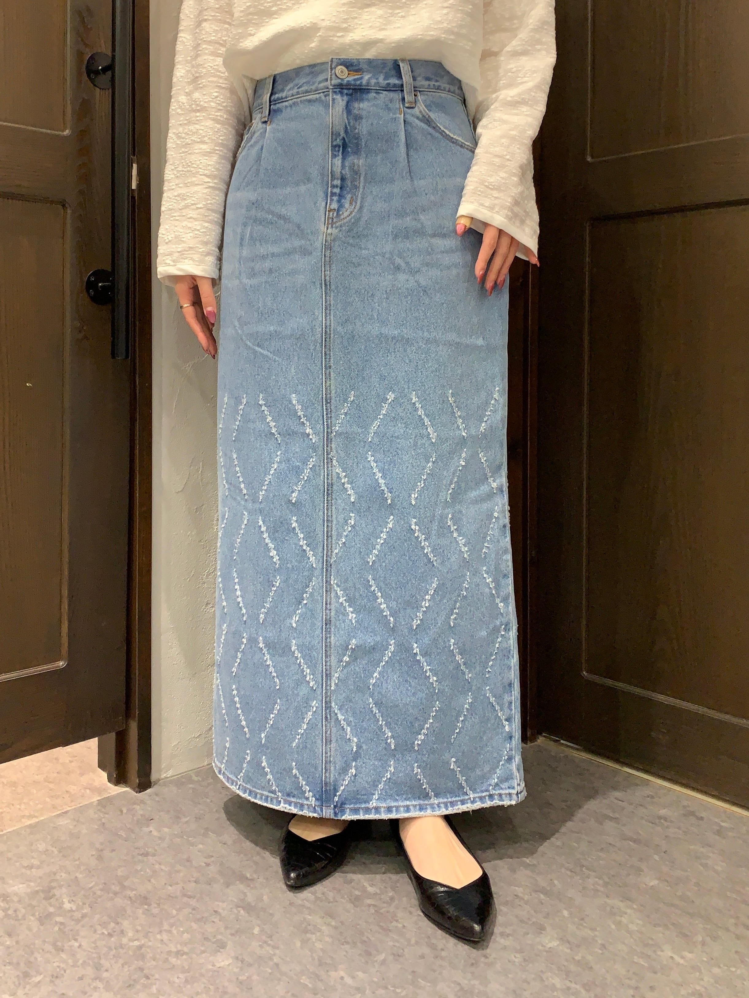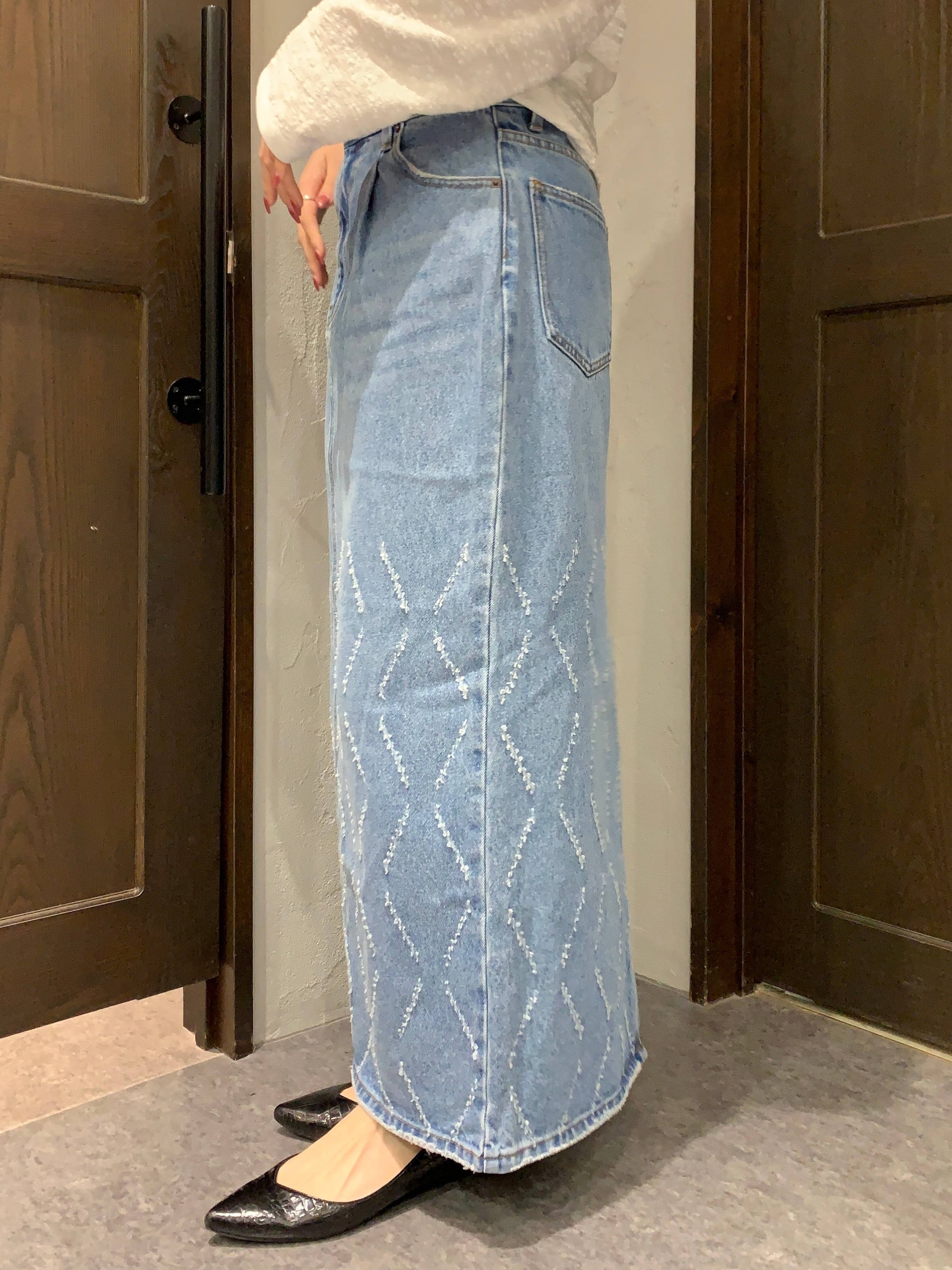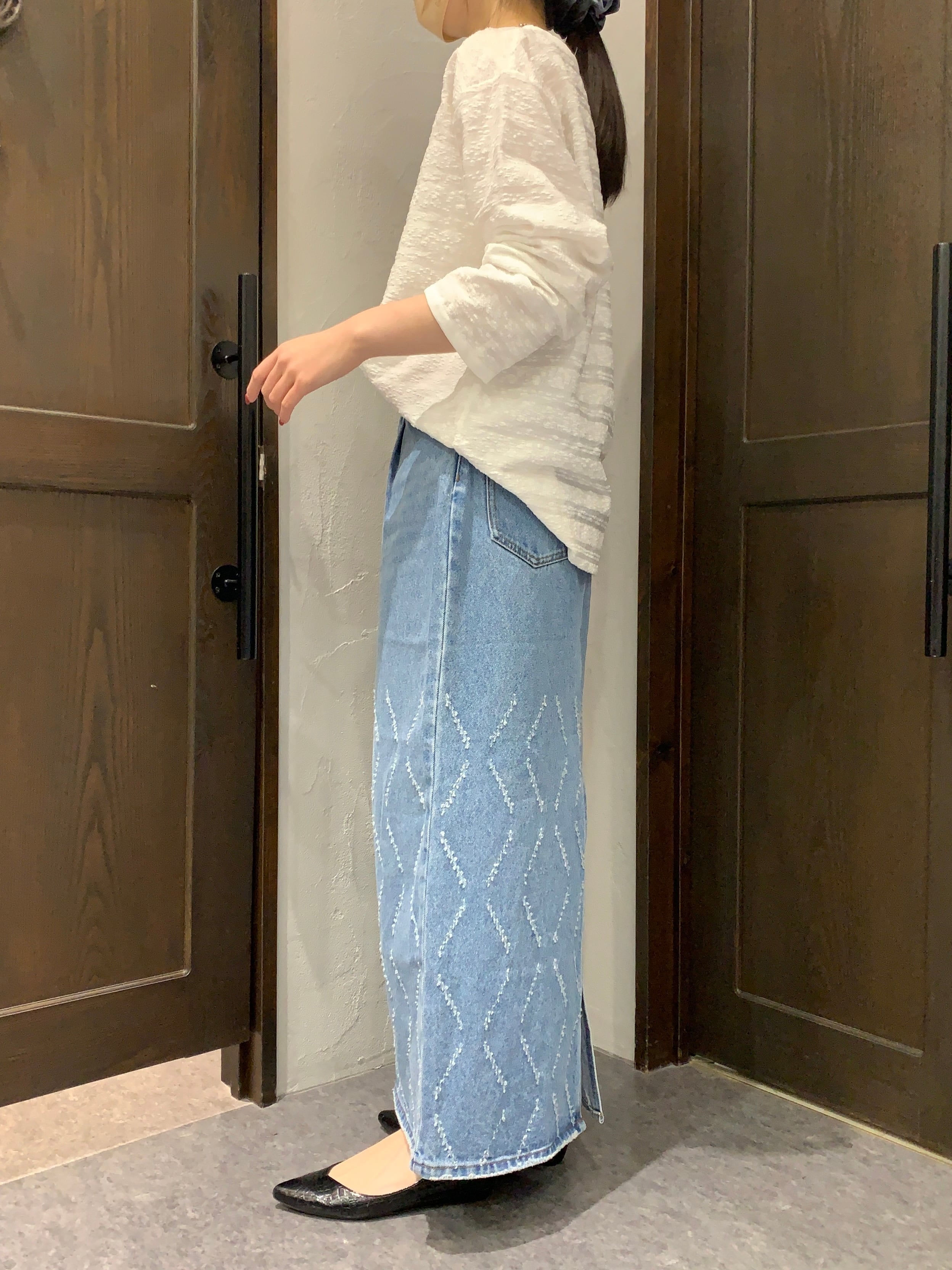 インパクトの強いデザインデニムはシンプルなトップスとの相性も良く、スタイリングの主役になる1枚です。