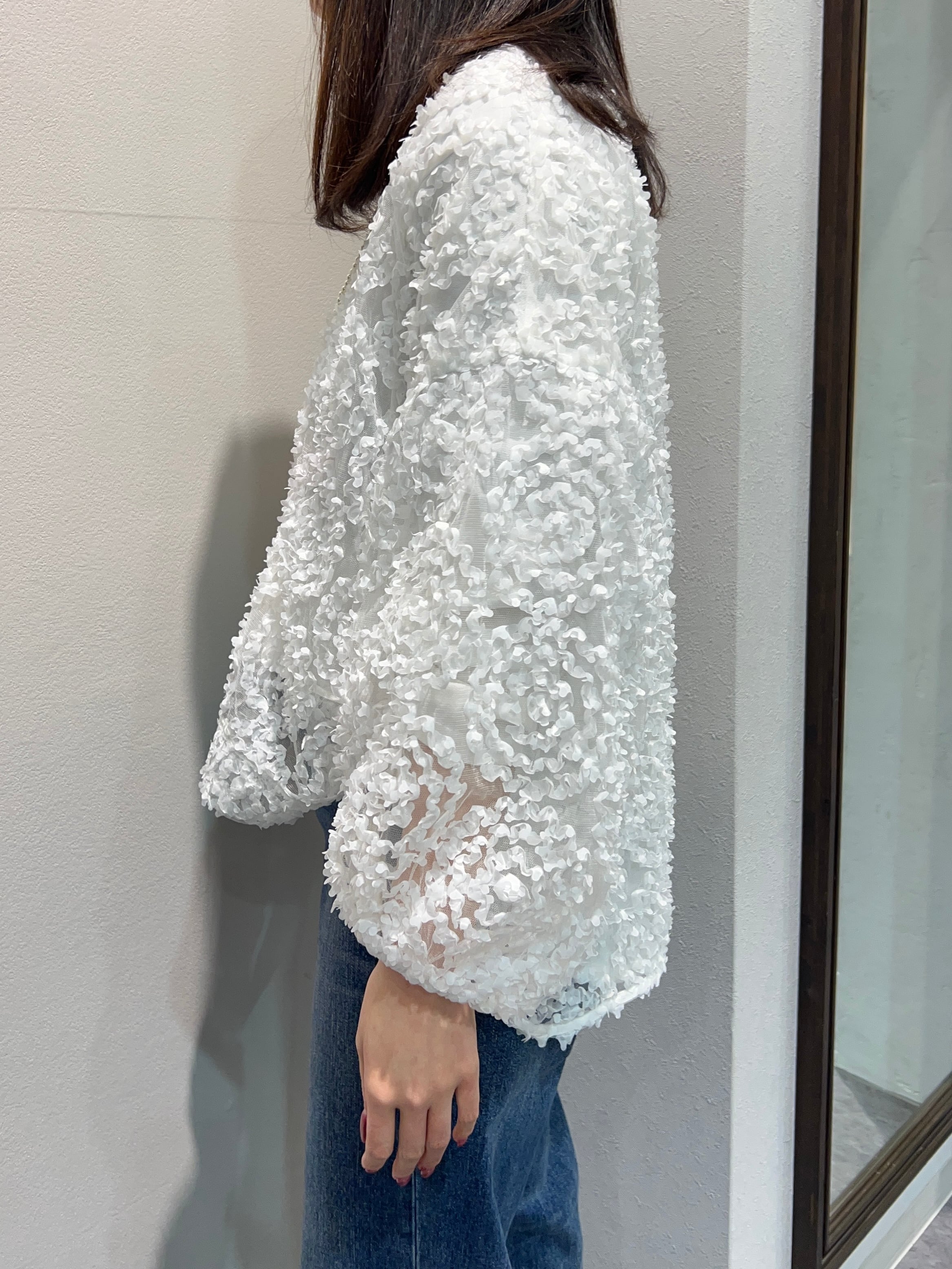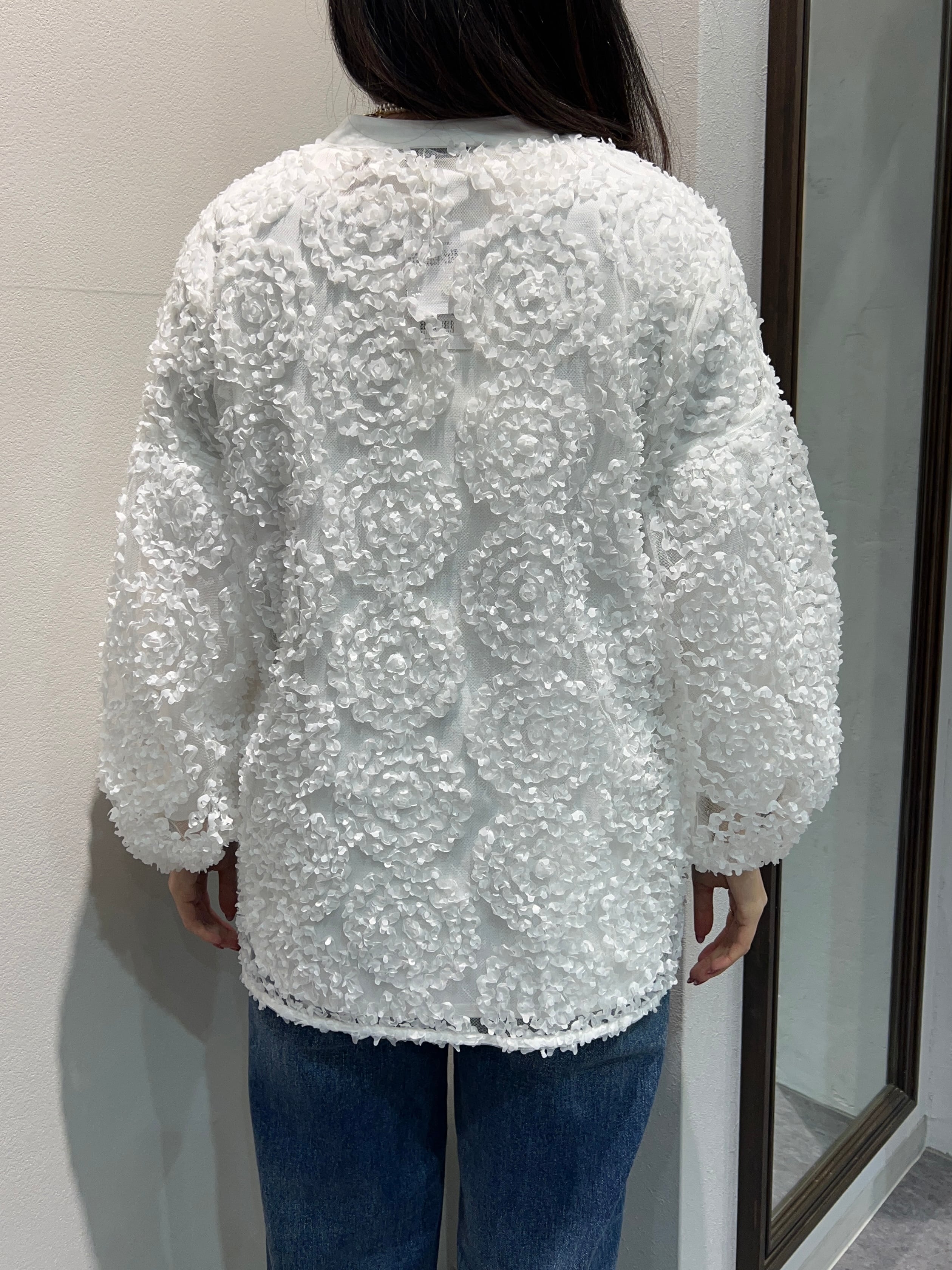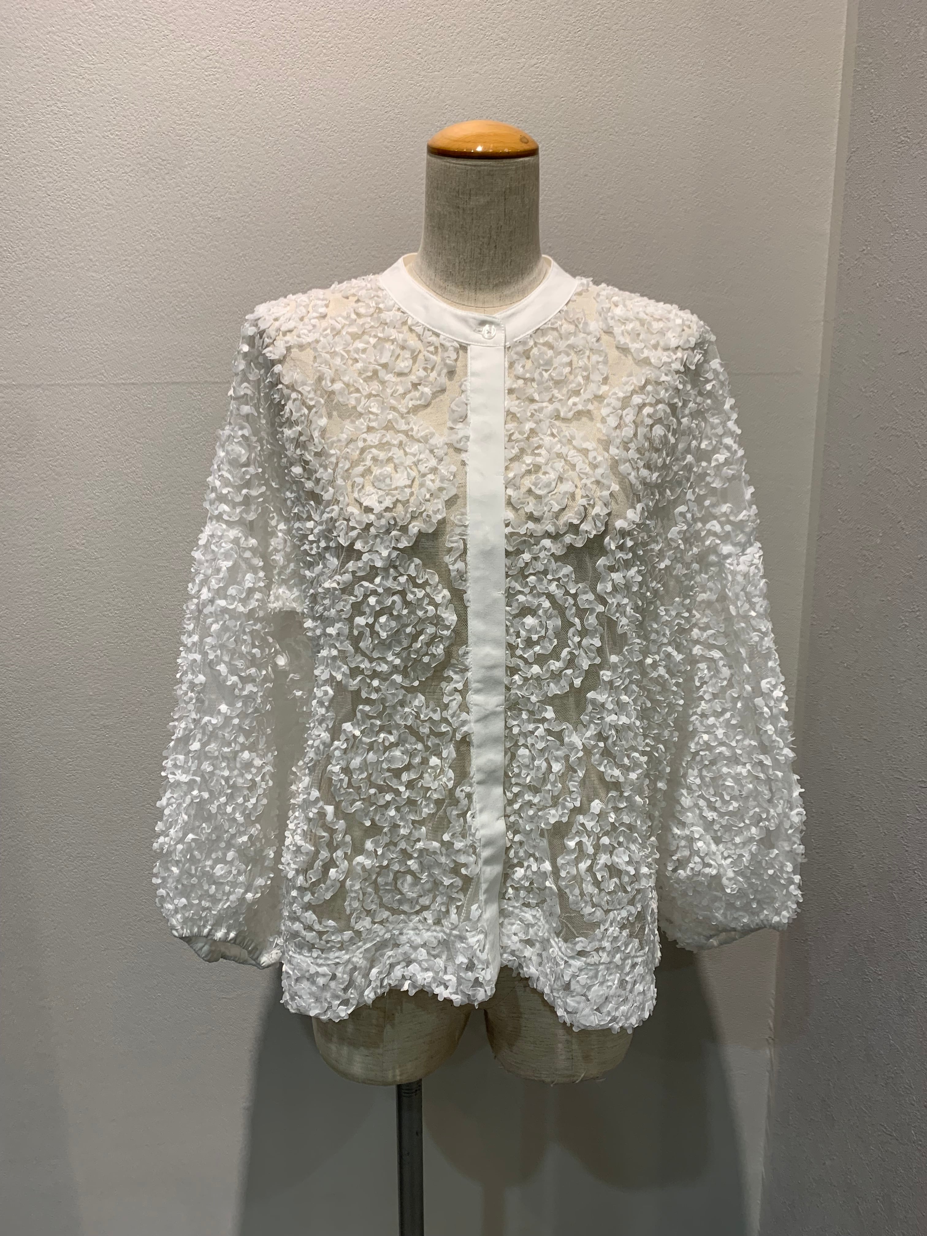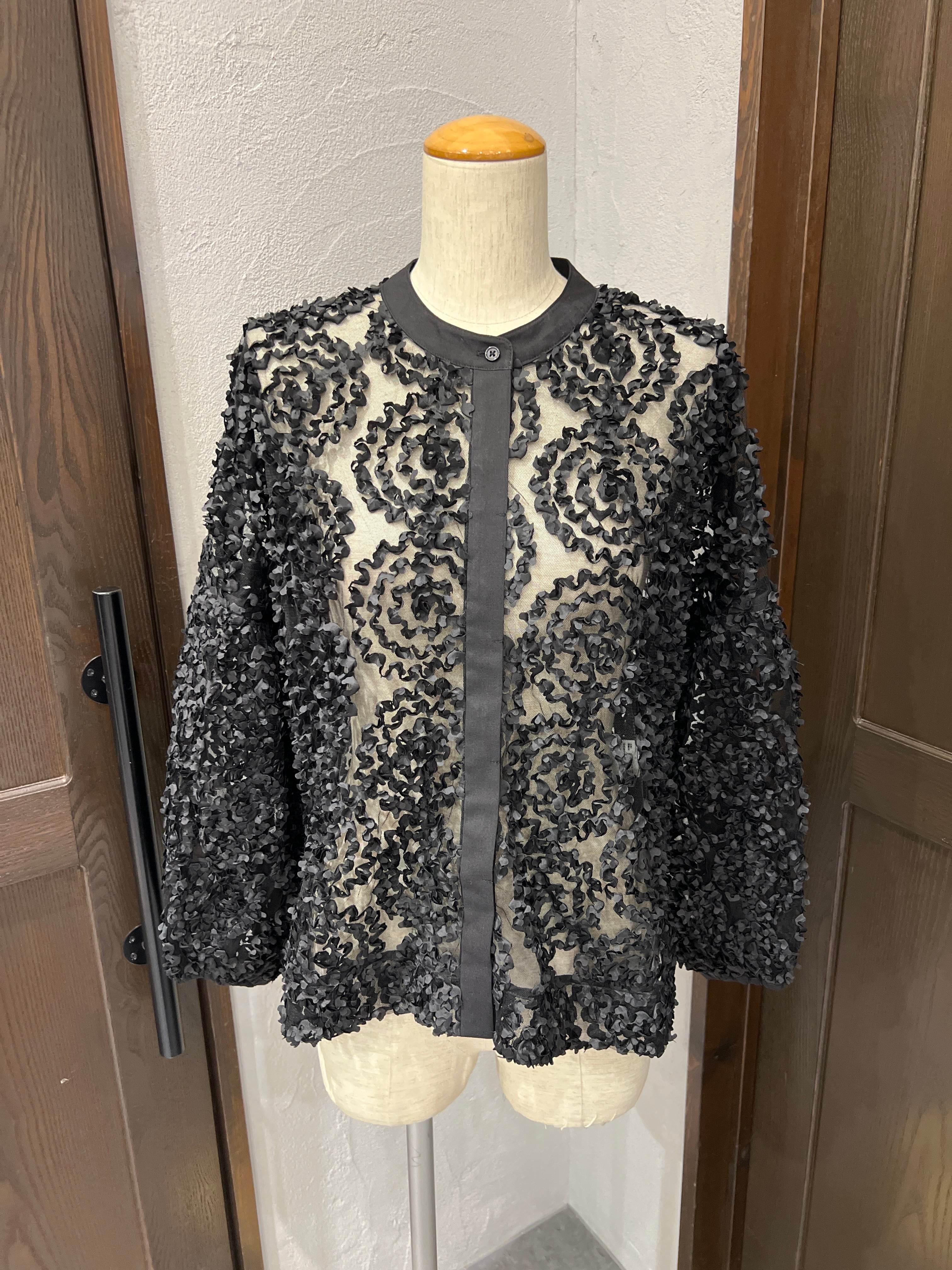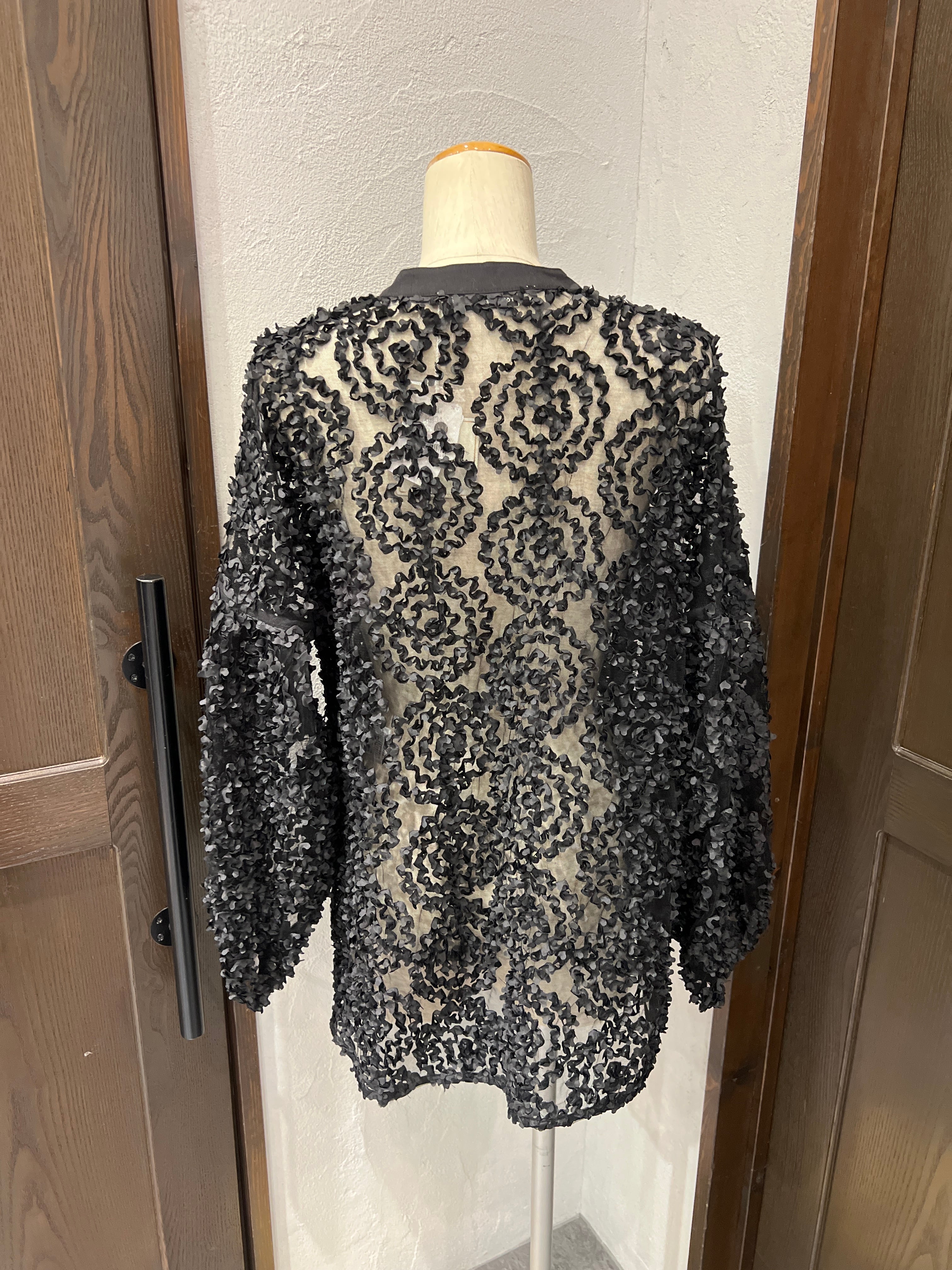 昨年即完売!メッシュ生地を水玉のように施したシースルーブラウス。