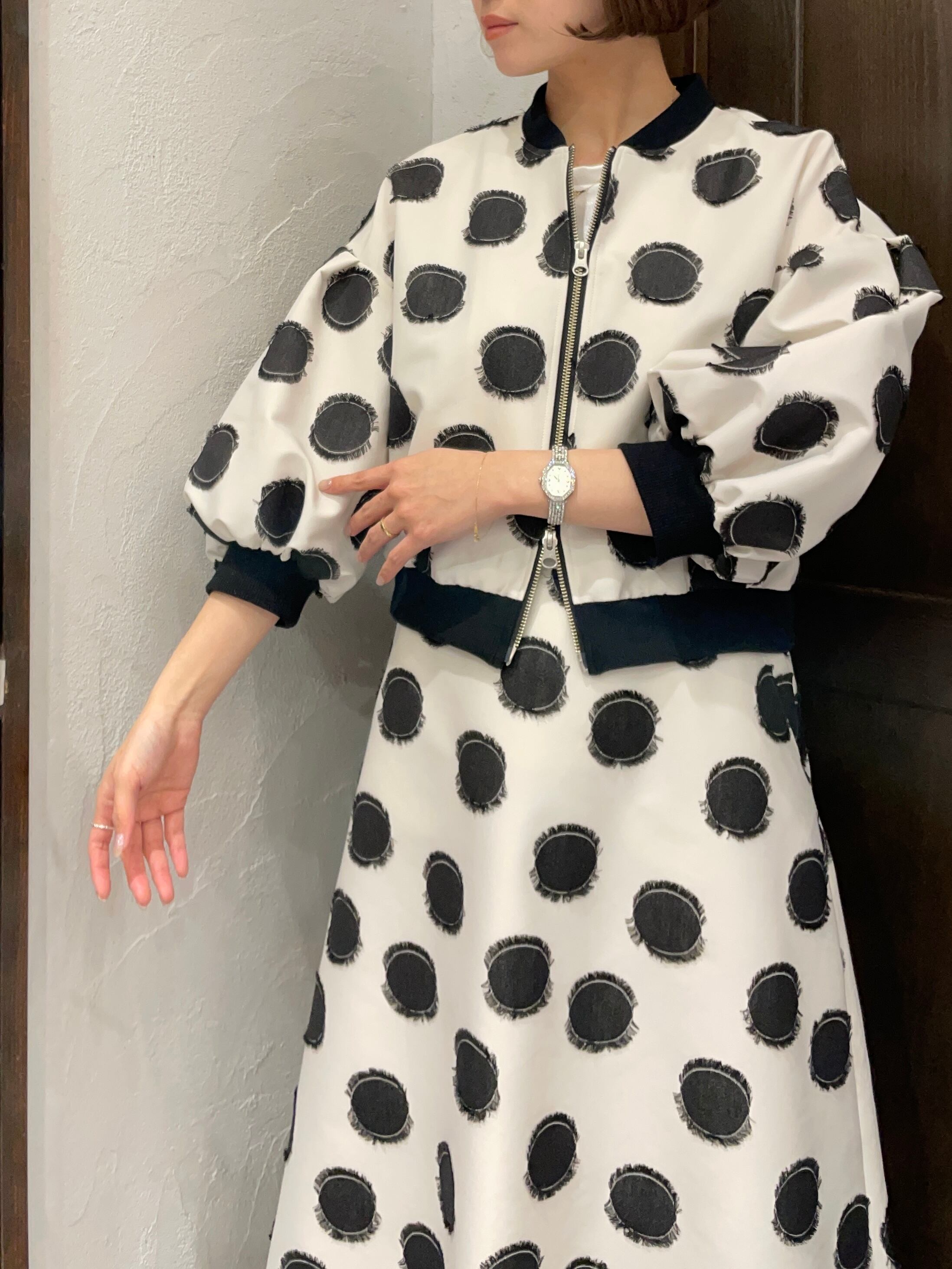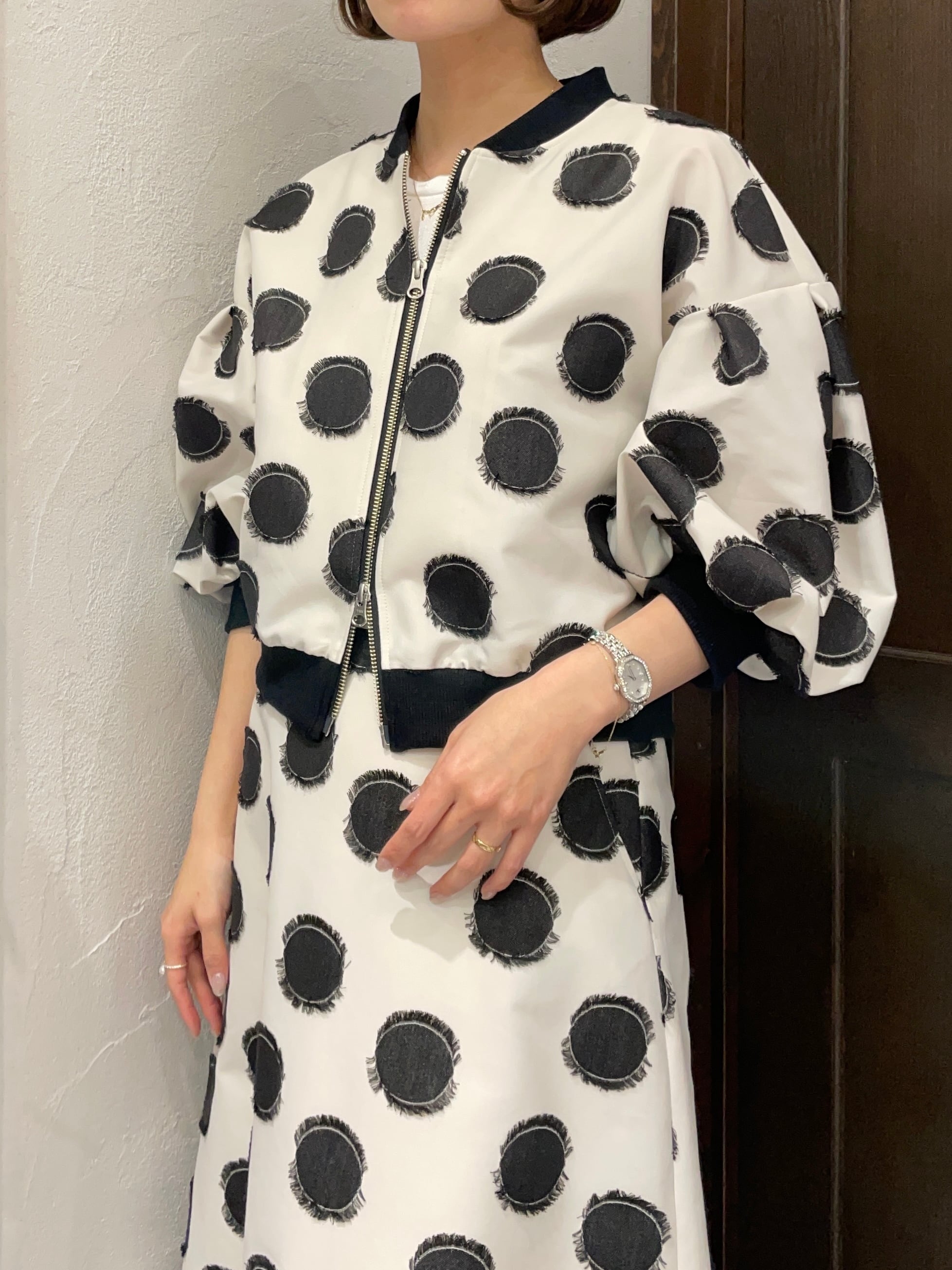 NOUQUE/フリンジドット8分袖ブルゾン
