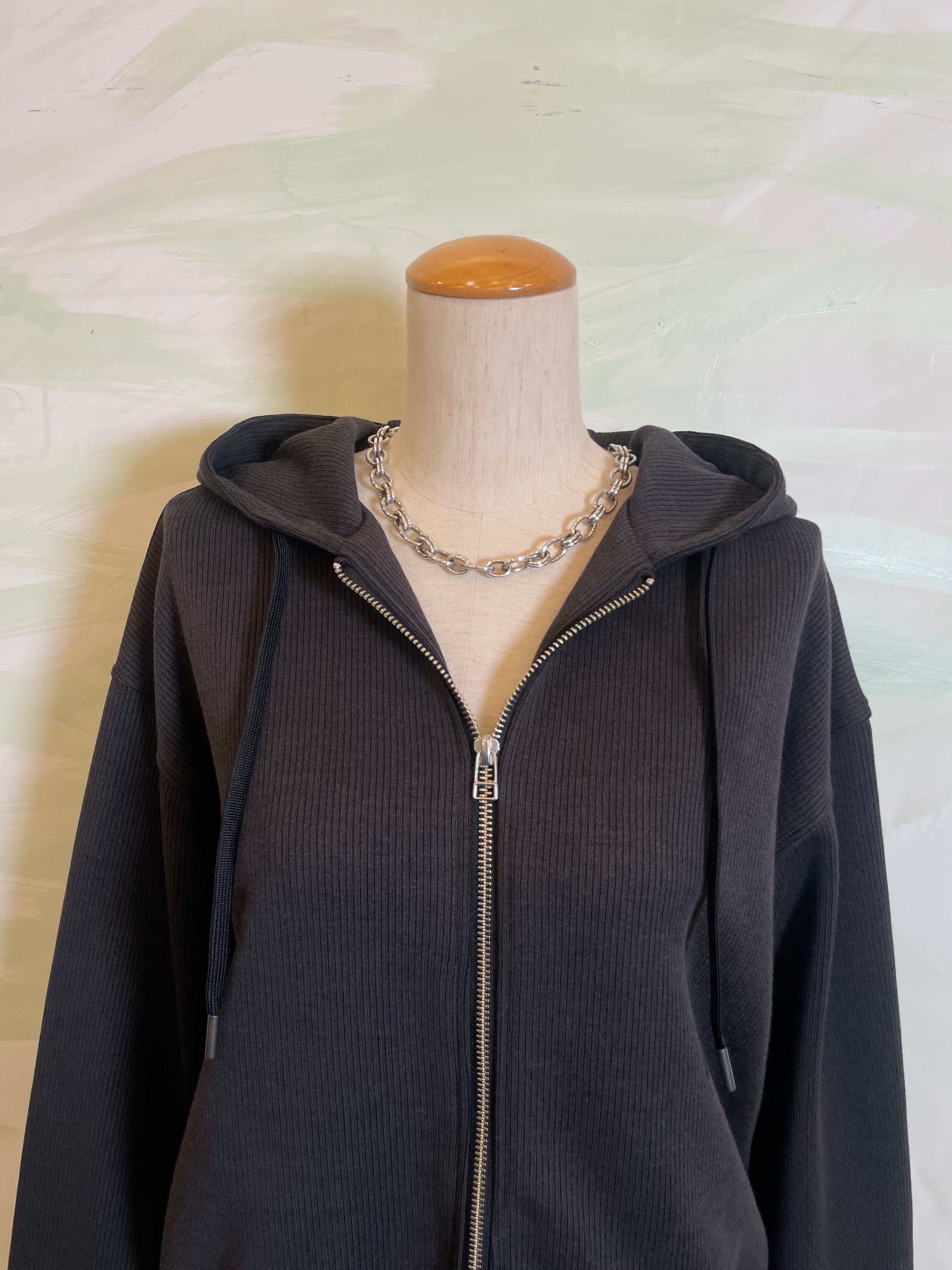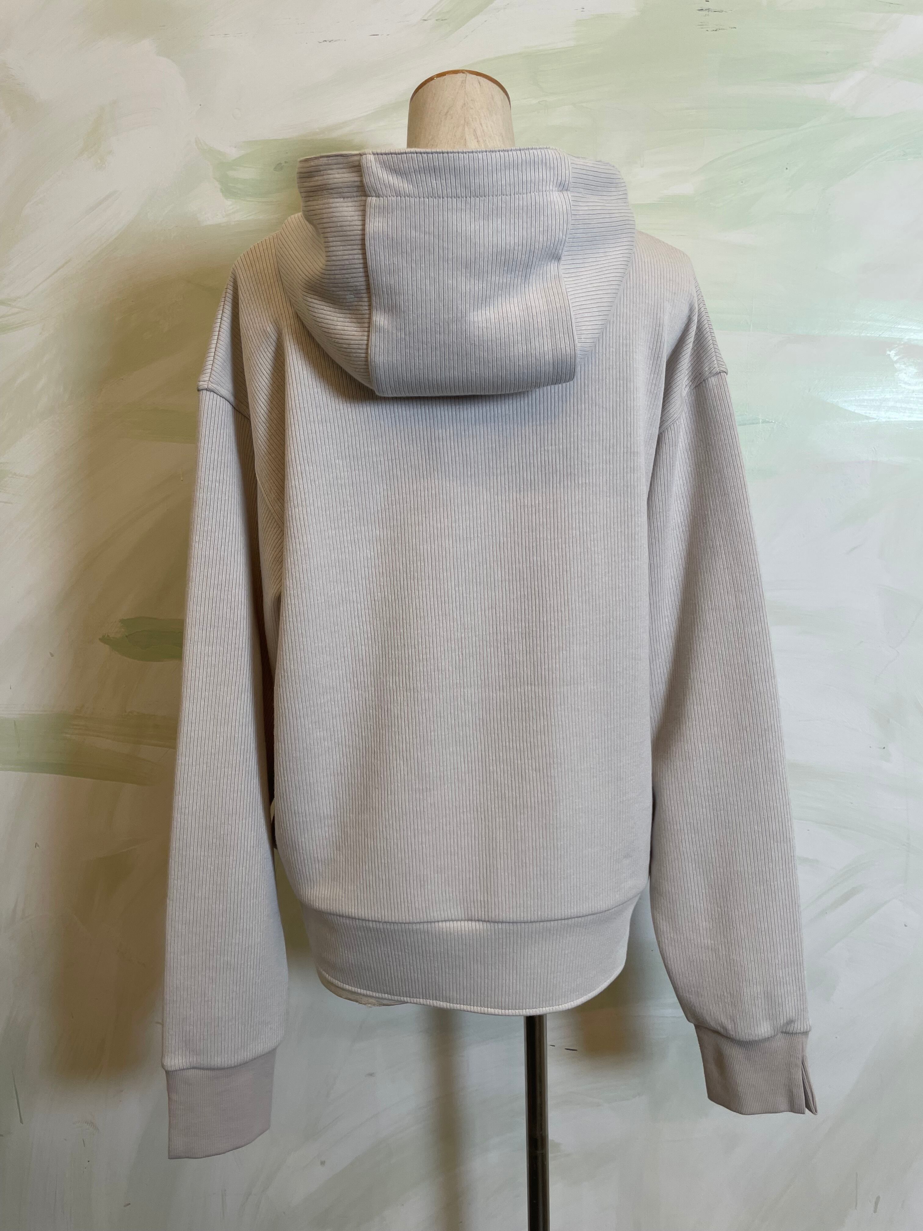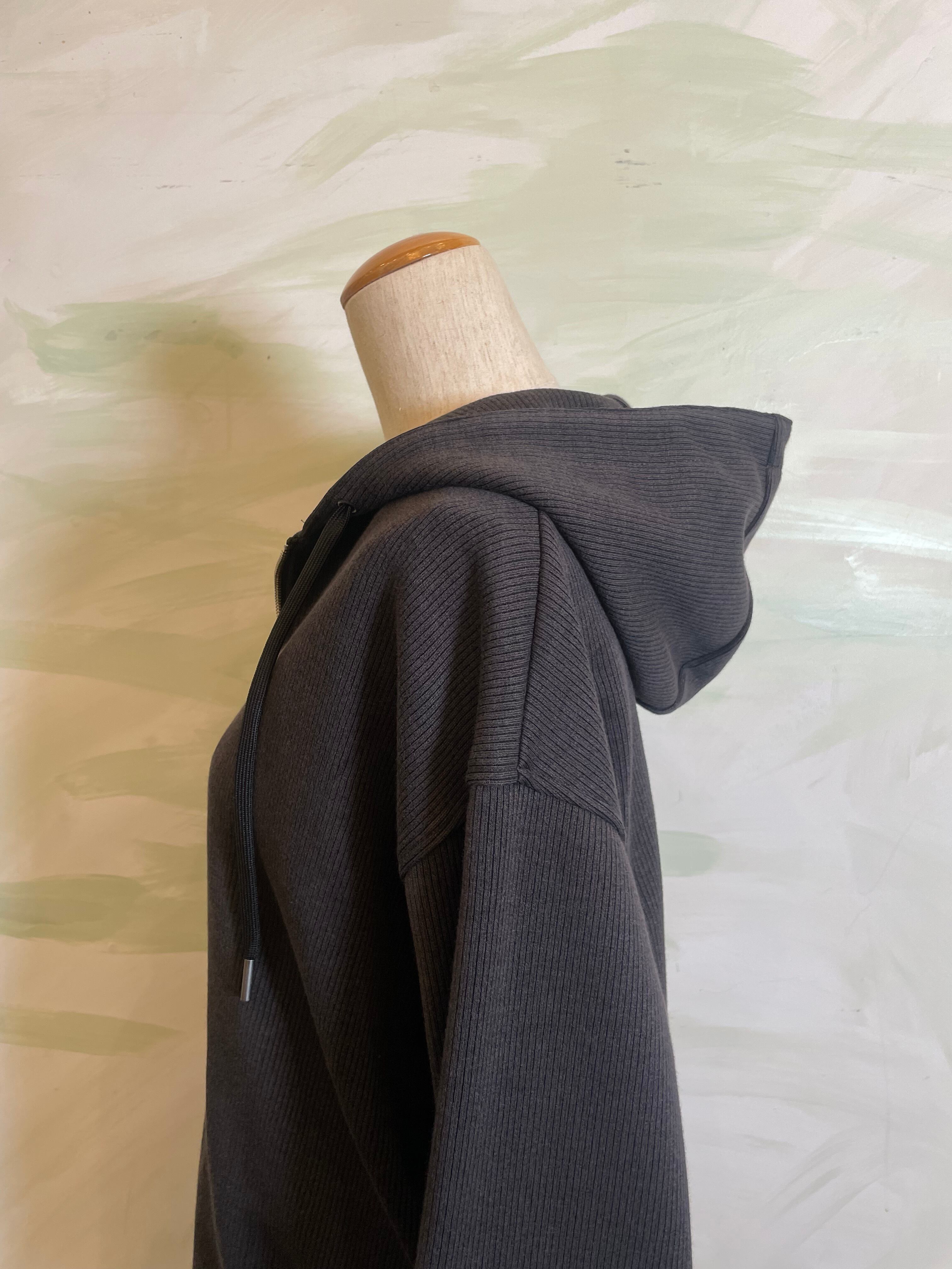 カジュアルになりがちなフーディーを、上品なシルエットで仕上げた一枚。