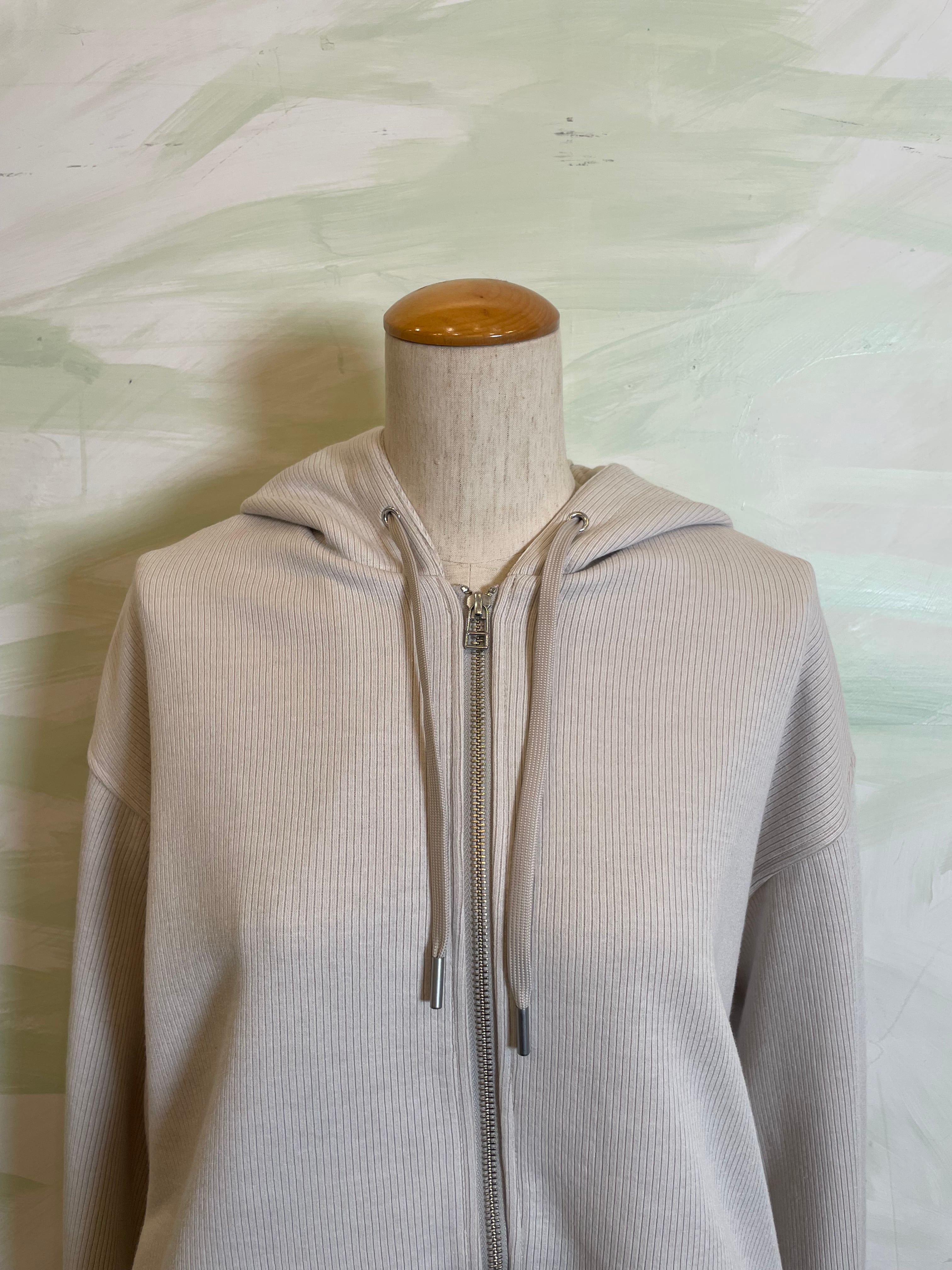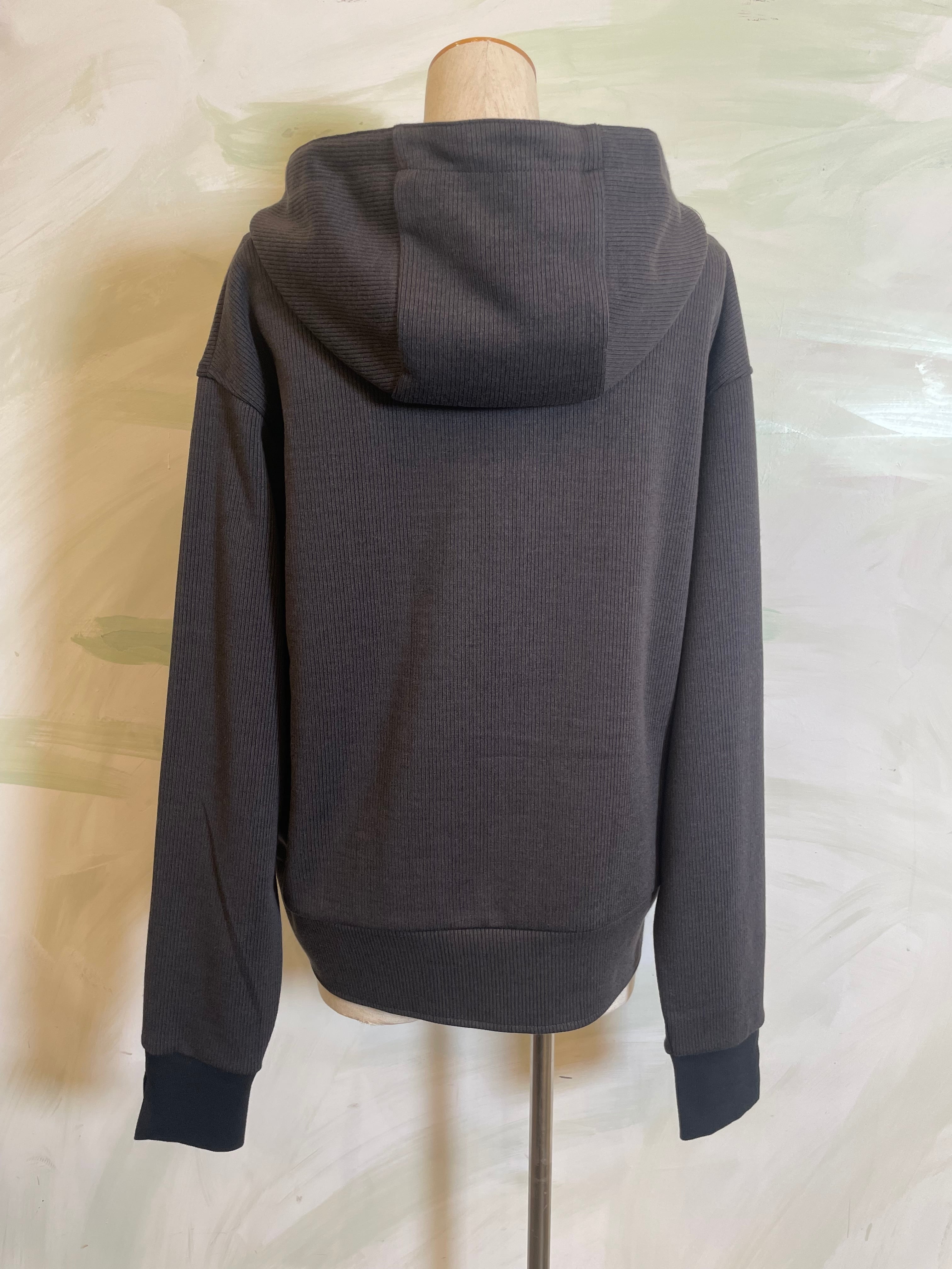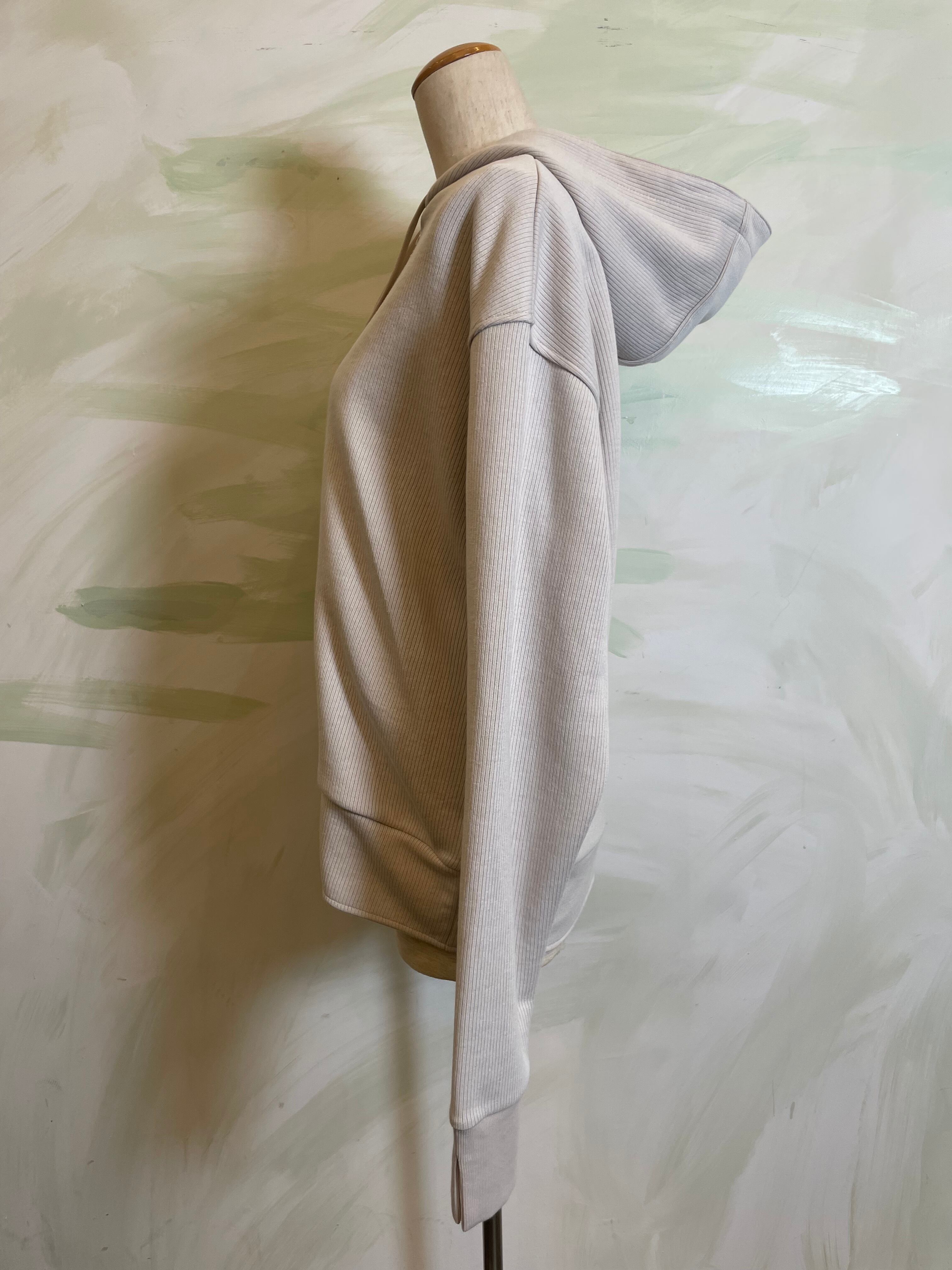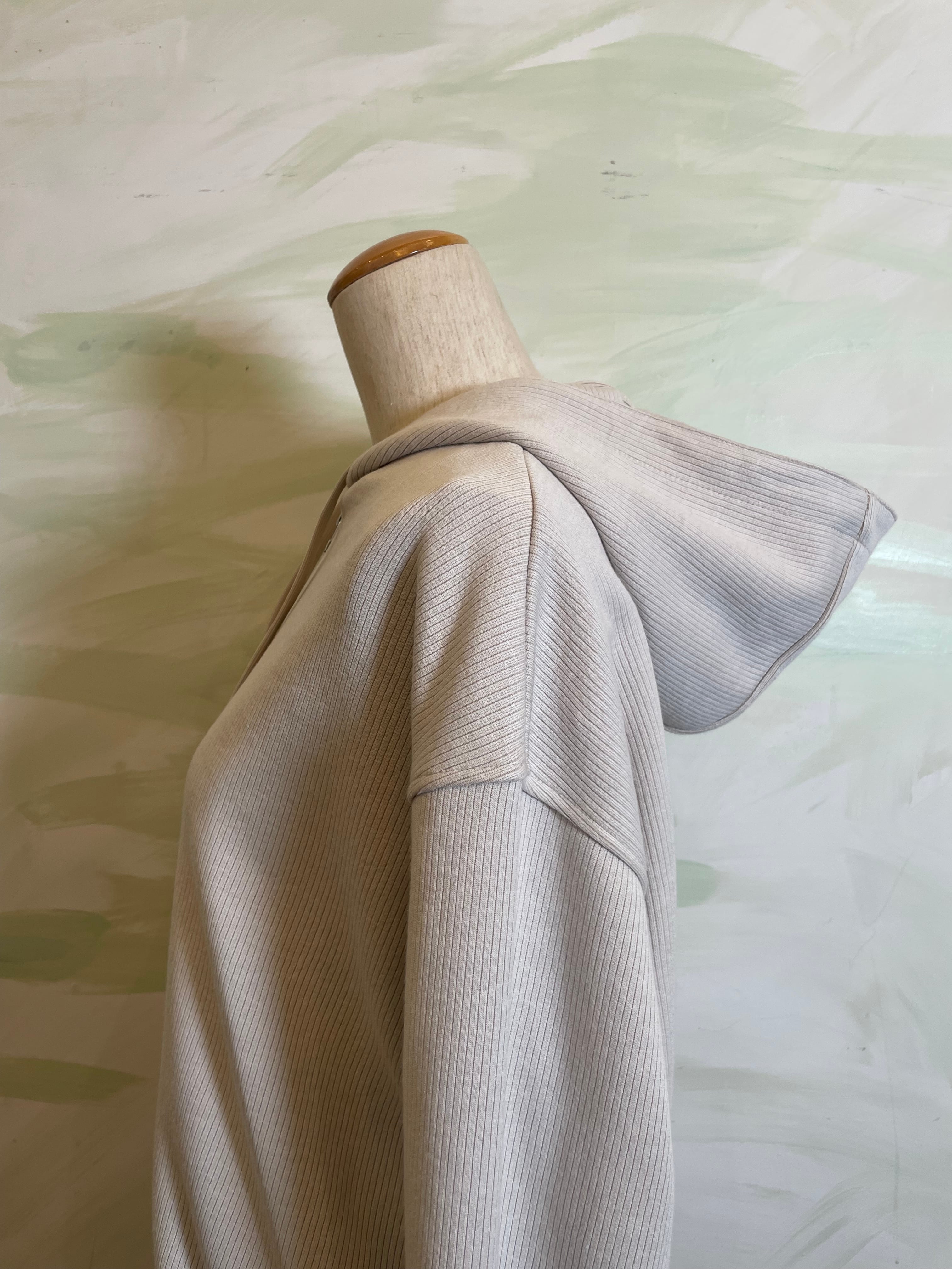 カジュアルになりがちなフーディーを、上品なシルエットで仕上げた一枚。