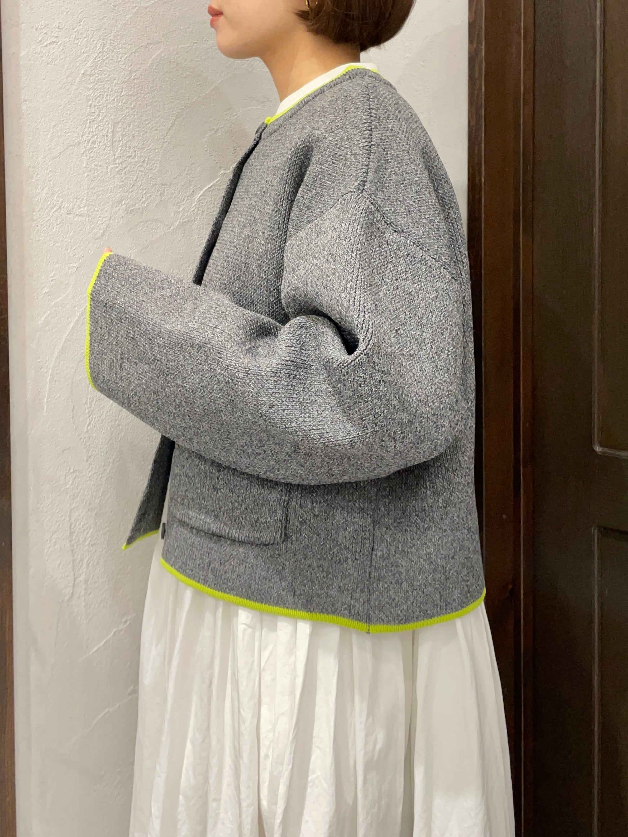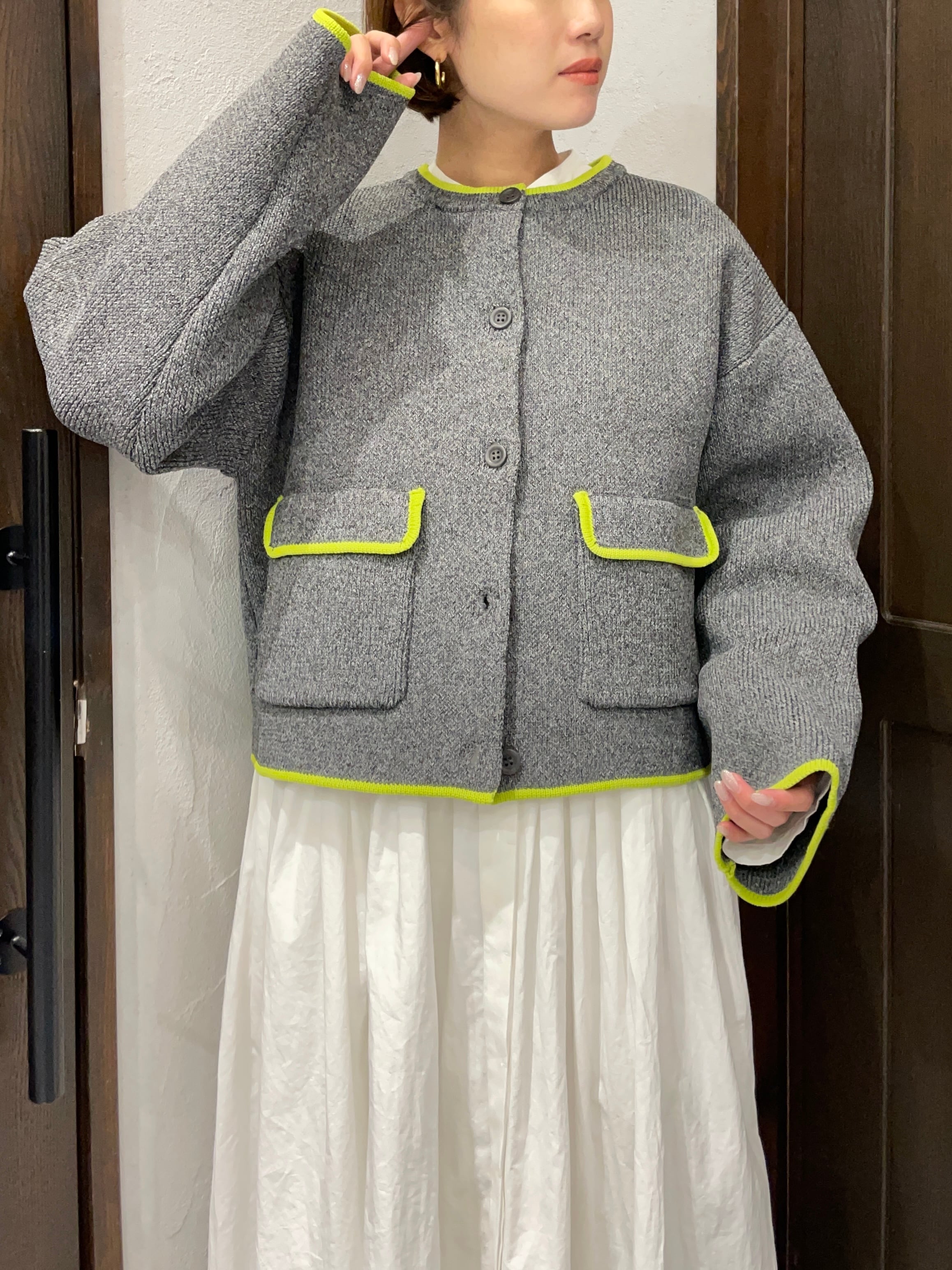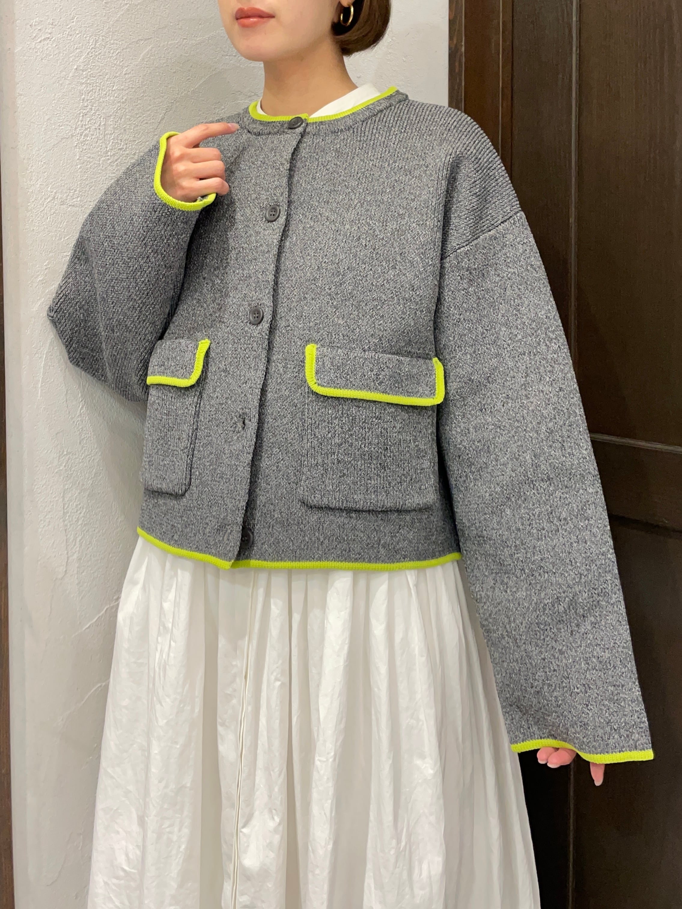 襟ぐり・袖口・ポケット部分に施した配色デザインが、シンプルな中に程よい存在感をプラス。羽織るだけでコーディネートのアクセントになります。