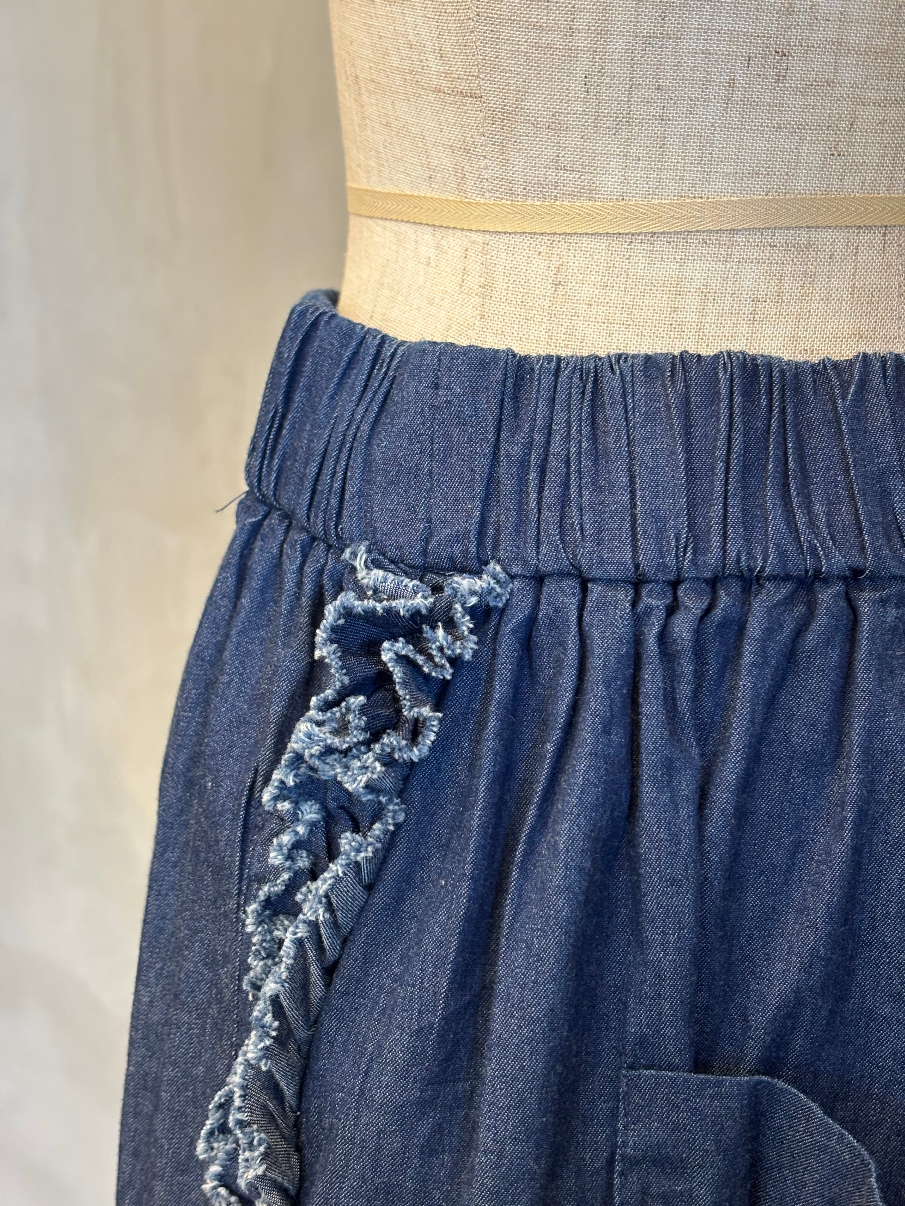 薄手のデニム生地を使用。