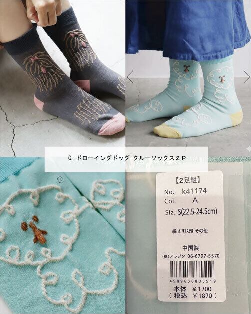C.ドローイングドッグ クルーソックス2P