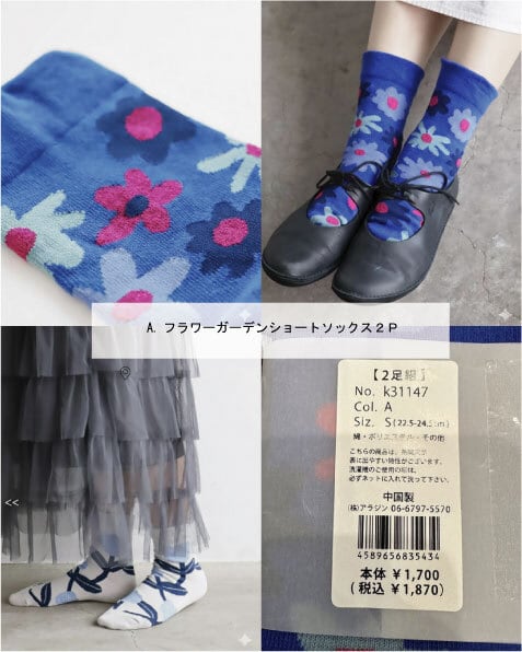 A.フラワーガーデンショートソックス2P