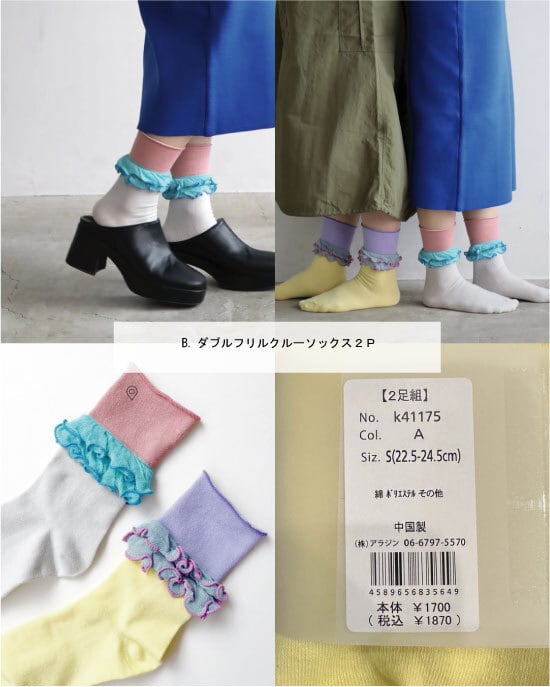 B.ダブルフリルクルーソックス2P