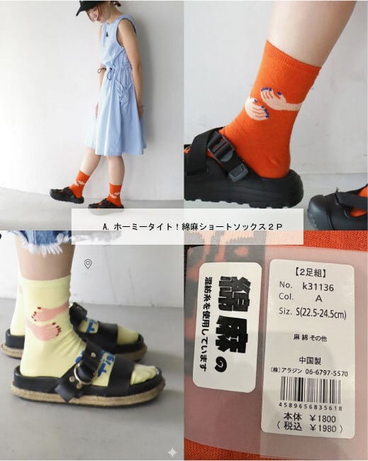 A.ホーミータイト!綿麻ショートソックス2P