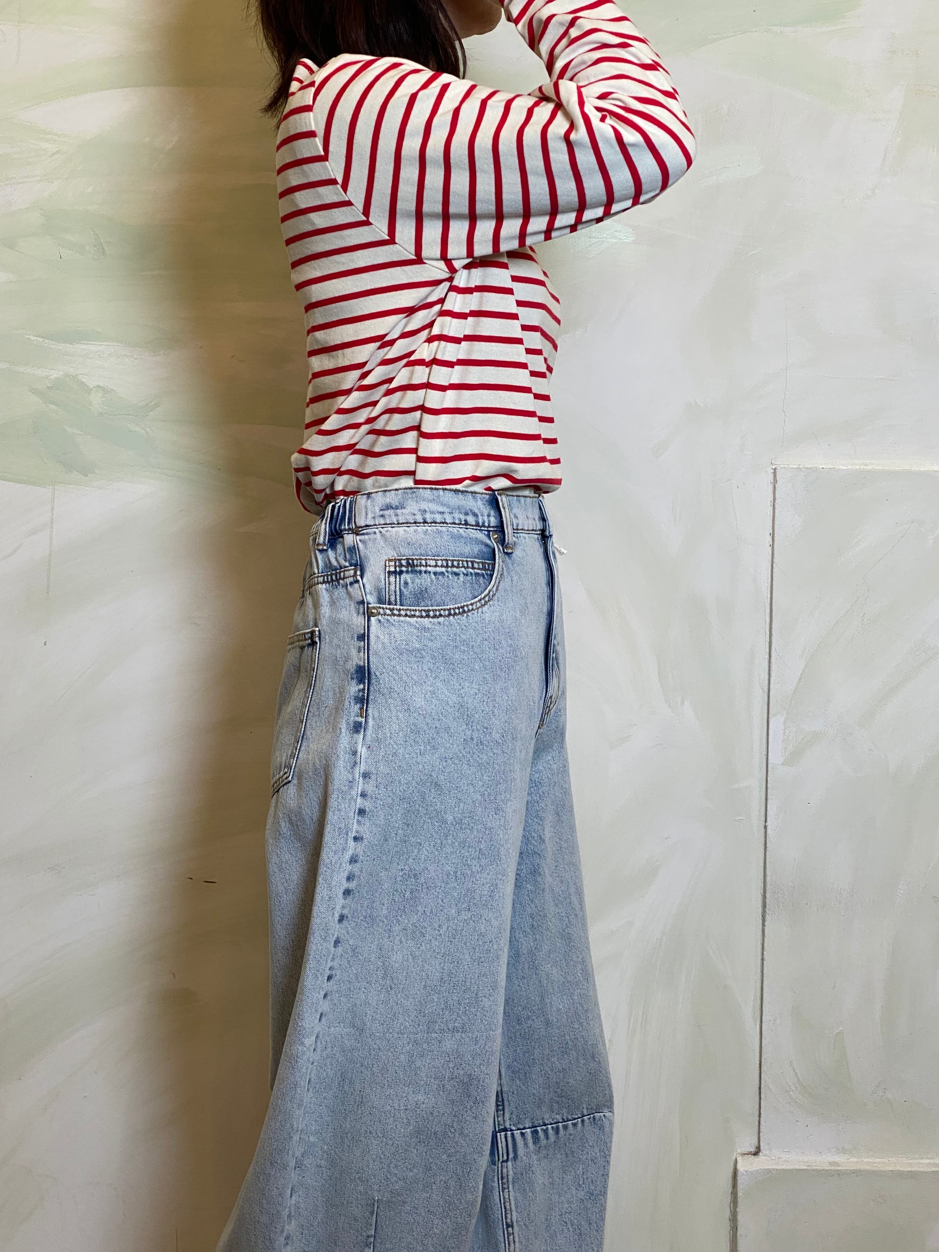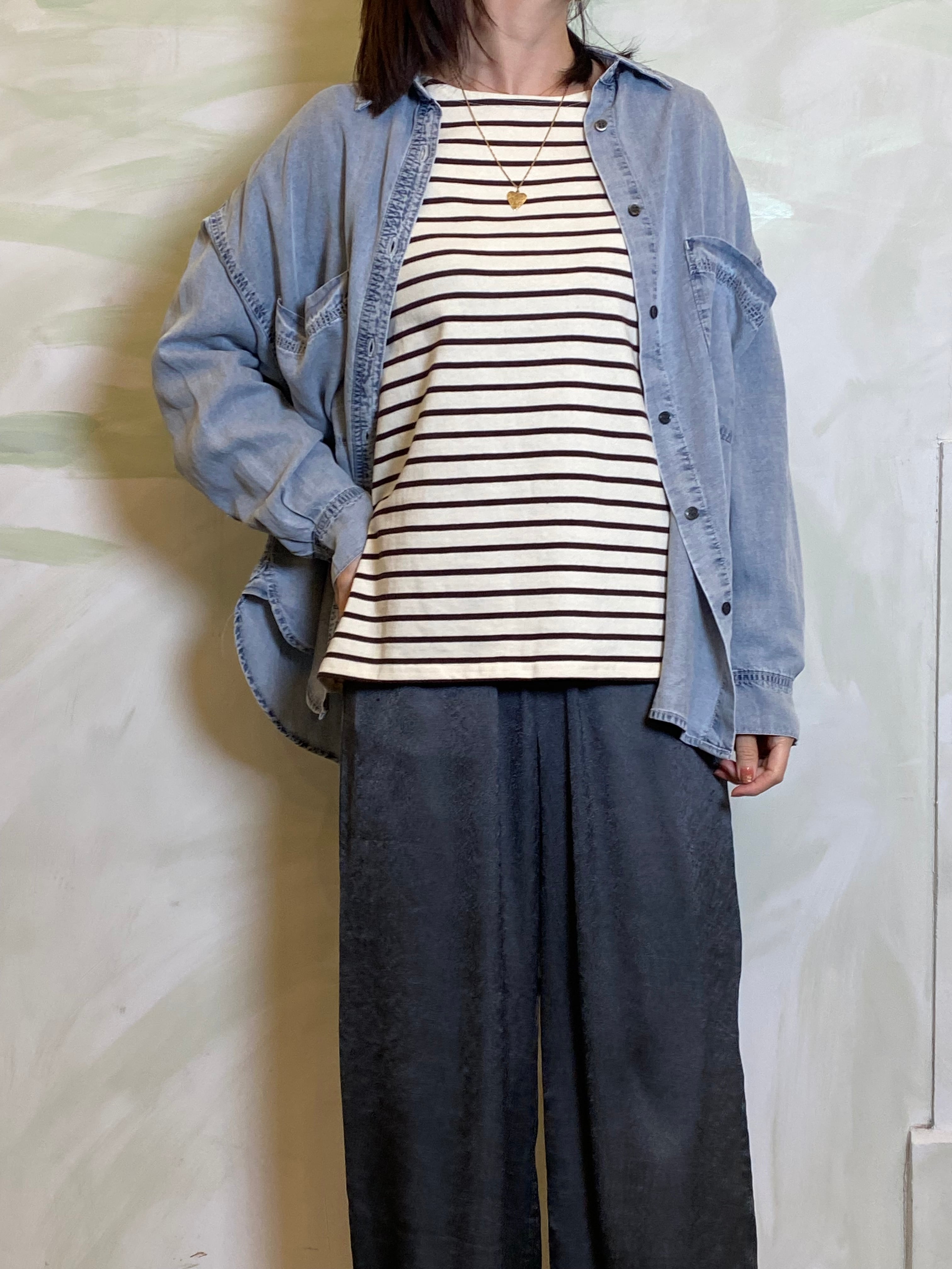 デニムはもちろん、スカートとも好相性の万能アイテムです。
